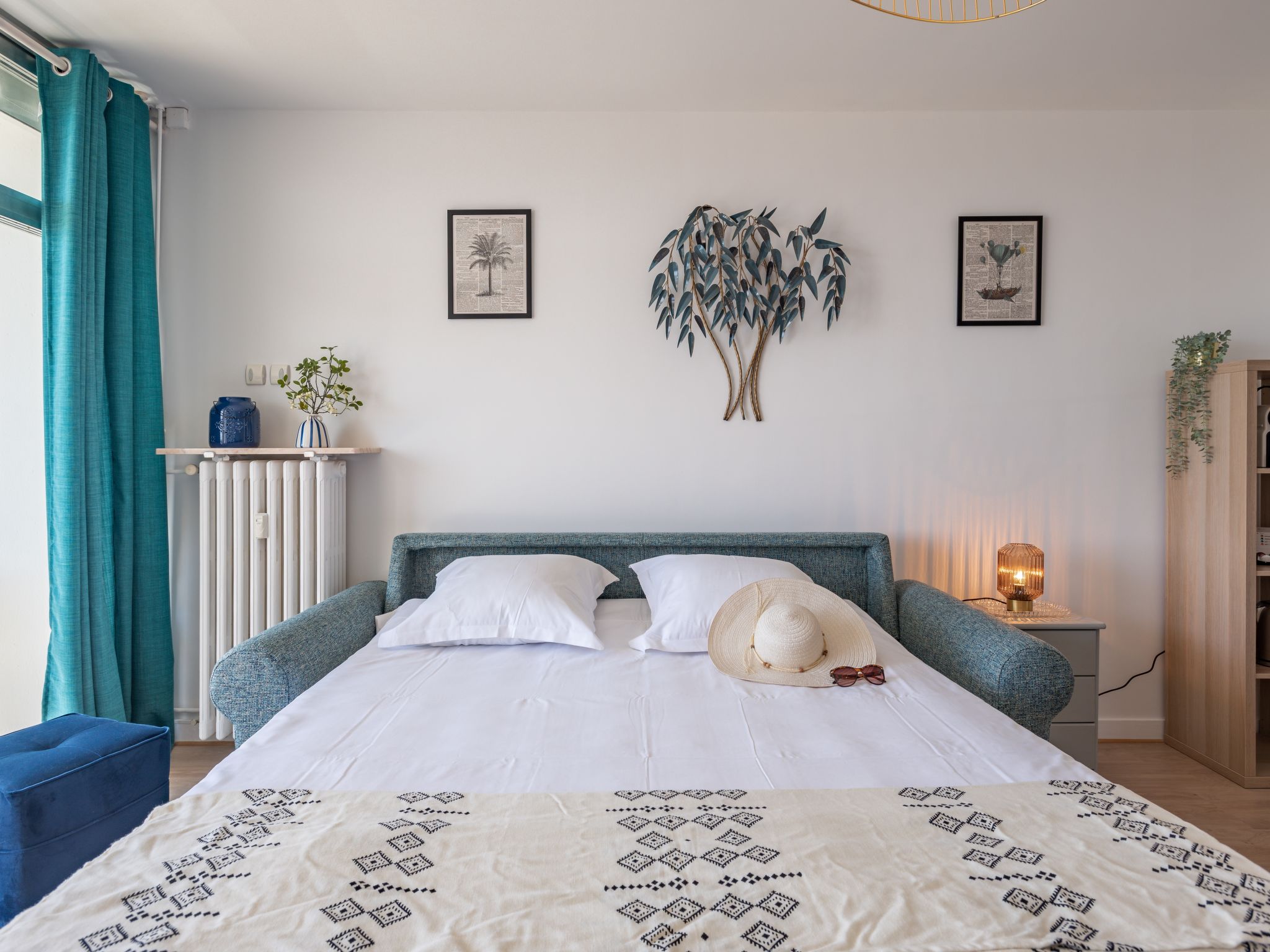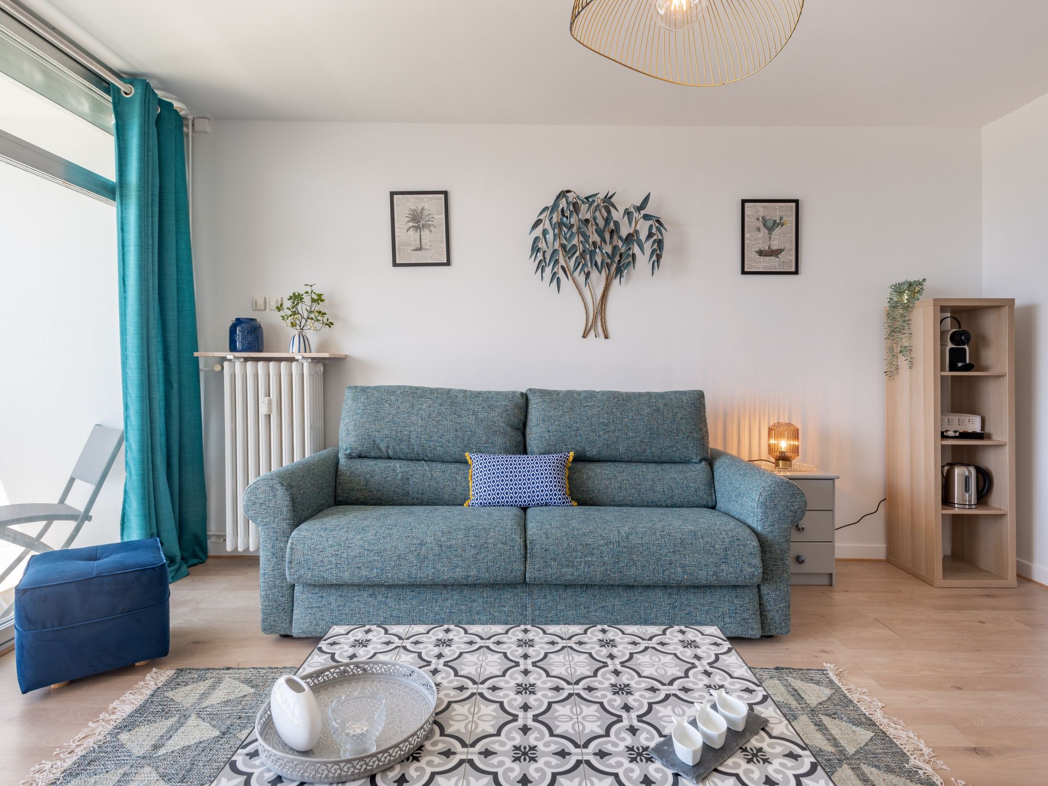 1-Zimmer-Studio 35 m2 im 1. Stock. Komfortabel eingerichtet: Wohn-/Esszimmer mit 1 Doppeldiwanbett (1 x 160 cm, Länge 190 cm), TV (Flachbildschirm). Ausgang zum Balkon. Küche (Geschirrspüler, 2 Glaskeramikplatten, Mikrowelle, Tiefkühler, elektrische Kaffeemaschine, Kapseln für die Kaffeemaschine (Nespresso) extra). Dusche/WC. G-Heizung. Kleine Terrasse 6 m2. Terrassenmöbel. Schöne Sicht auf das Meer. Zur Verfügung: Internet (WLAN, gratis). Bitte beachten: Maximal 1 kleines Haustier/Hund erlaubt. Rauchmelder. 56186 000529 L0