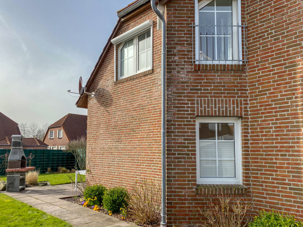 Schönes Doppelhaus "Sandmuschel". Im Ort, ruhige Lage, 1.4 km vom Meer, 1.4 km vom Strand, in einer Sackgasse. Zur Alleinbenutzung: Garten (eingezäunt). Im Hause: Zentralheizung. Parkplatz beim Haus. Supermarkt 850 m, Restaurant 600 m, Bäckerei, Café 850 m, Bushaltestelle 200 m, Bahnstation "Norddeich" 2 km, Fähre 2 km, Sandstrand 1.4 km, Freibad 14 km, Hallenbad 800 m. Golfplatz (9 Loch) 8 km, Surfschule 1.4 km, Minigolf 800 m.