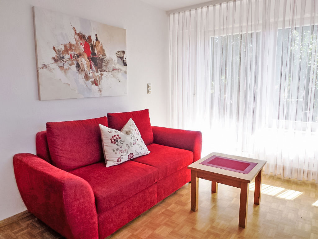 2-Zimmer-Wohnung 45 m2, im Erdgeschoss. Wohn-/Esszimmer mit 1 Diwanbett und Sat-TV (Flachbildschirm). Ausgang zum Garten, zur Terrasse. 1 Doppelzimmer. Offene Küche im Eingang (Backofen, Geschirrspüler, elektrische Kaffeemaschine). Dusche/WC. Terrasse 16 m2. Terrassenmöbel. Zur Verfügung: Internet (Wireless LAN, gratis). Bitte beachten: Nichtraucher-Unterkunft. Maximal 1 kleines Haustier/Hund erlaubt. Eigener Eingang.