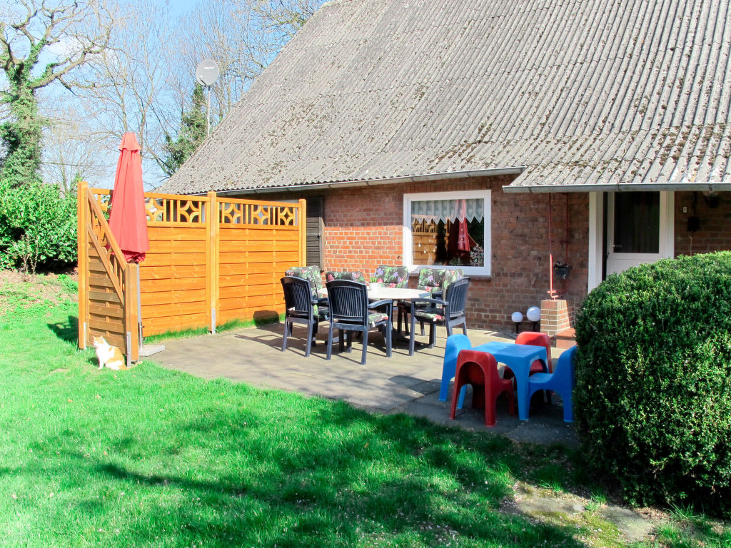 Landhaus "Reyeltshof". Im Ortsteil Süderbusch, 6 km vom Zentrum von Wingst, 11 km vom Zentrum von Hemmoor, 42 km vom Zentrum von Stade, alleinstehende Lage, 2 km vom See, im Grünen. Zur Alleinbenutzung: naturbelassenes Grundstück 1'500 m2, Garten (nicht eingezäunt) mit Rasen und Bäumen. Kinderspielplatz (Rutschbahn, Schaukel, Sandkasten). Brötchenservice. Parkplatz beim Haus. Supermarkt 6 km, Sandstrand "Cuxhaven" 35 km, Grasstrand "Otterndorf" 20 km, Freibad 6 km, Hallenbad 6 km. Reitstall 1 km, Angelmöglichkeit 2 km. Nahe gelegene Sehenswürdigkeiten: Wingster Zoo 6 km. Auf dem Grundstück Tierhaltung. Ab Hof Verkauf von bäuerlichen Produkten.