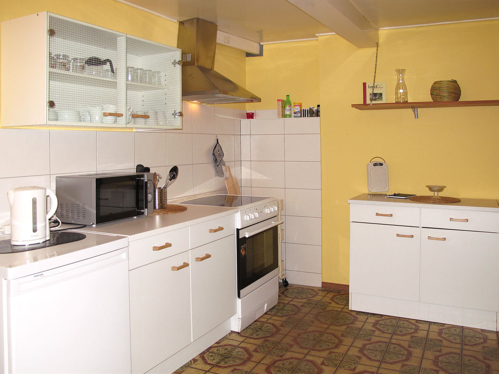 "Reyeltshof", 4-Zimmer-Haus 115 m2. Geräumig, gemütlich und mit viel Holz eingerichtet: Wohn-/Schlafzimmer mit 1 Doppeldiwanbett (160 cm, Länge 200 cm), Sat-TV, Radio, CD und DVD. 1 Zimmer mit 1 Doppelbett. 2 Zimmer, jedes Zimmer mit 2 Betten. Küche (Backofen, Geschirrspüler, 4 Glaskeramikherd Platten, Toaster, Wasserkocher, Mikrowelle, elektrische Kaffeemaschine) mit Esstisch. Sep. WC, Bad/Dusche/WC. G-Heizung. Terrasse. Terrassenmöbel, Gartengrill, Liegestühle (4). Zur Verfügung: Waschmaschine, Bügeleisen, Kinderhochstuhl, Babybett. Internet (Wireless LAN, gratis). Bitte beachten: Nichtraucher-Unterkunft. Maximal 1 Haustier/Hund erlaubt. Maximale Belegung: 6 Personen.