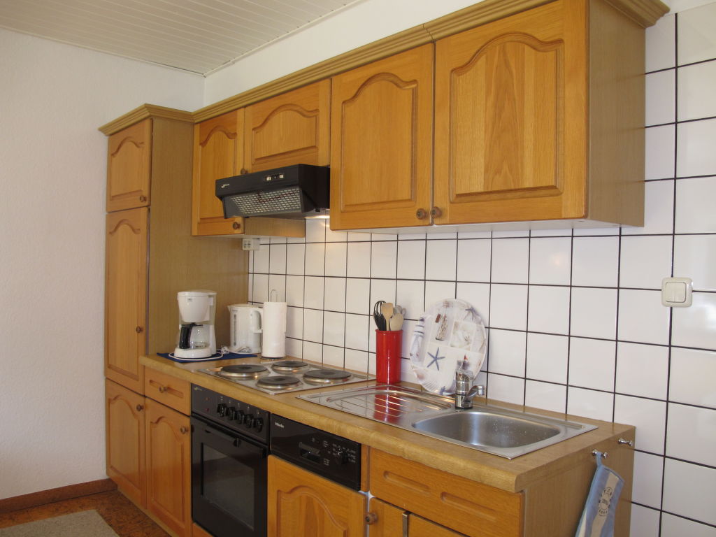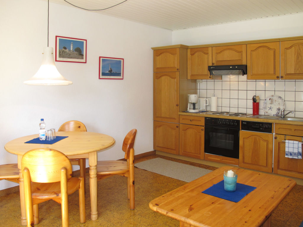 3-Zimmer-Wohnung 52 m2, im erhöhten Erdgeschoss. Gemütlich eingerichtet: Wohn-/Esszimmer mit Sat-TV. 1 Zimmer mit 1 Doppelbett. 1 Zimmer mit 2 Betten (80 cm, Länge 190 cm). Offene Küche (4 Kochplatten, Backofen, Geschirrspüler, Toaster, Wasserkocher, Mikrowelle, elektrische Kaffeemaschine). Dusche/WC. Gartensitzplatz. Zur Verfügung: Internet (Wireless LAN, gratis). Bitte beachten: Nichtraucher-Unterkunft. 1 Haustier/Hund erlaubt.