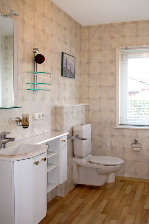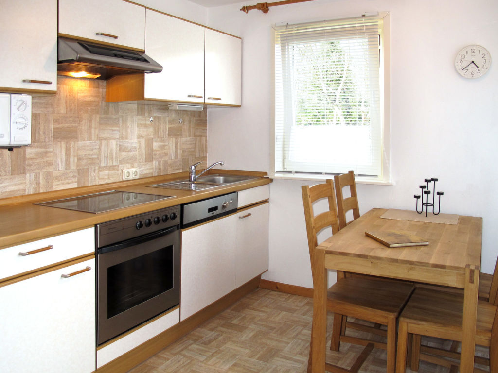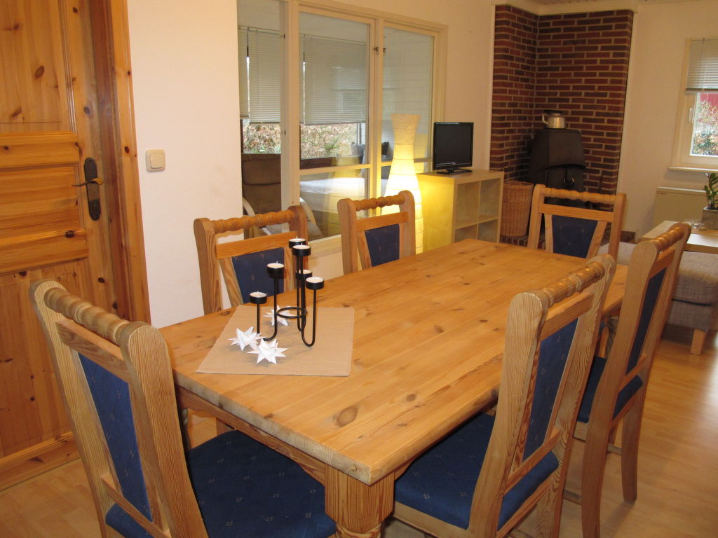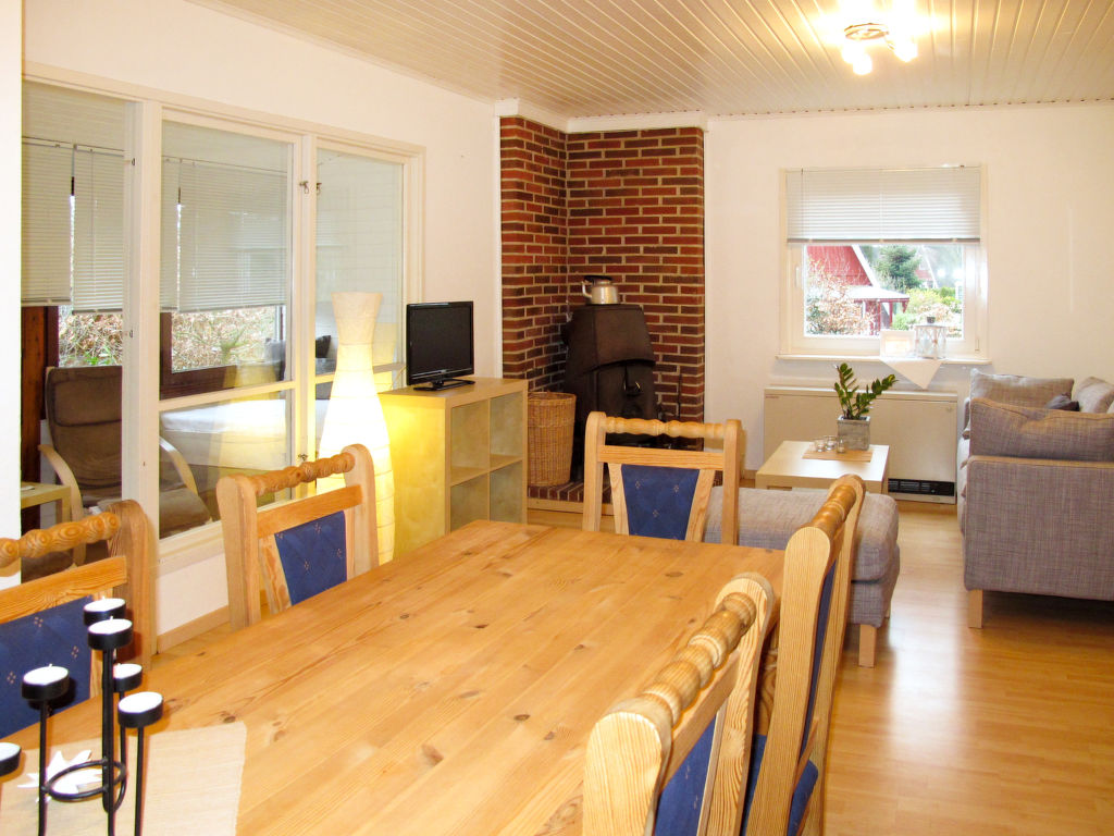 "Amselweg", 3-Zimmer-Haus 65 m2, im Erdgeschoss. Objekt geeignet für 4 Erwachsene + 2 Kinder. Hell, gemütlich und mit viel Holz eingerichtet: Wohn-/Esszimmer mit Wintergarten mit 1 franz. Bett, Sat-TV, Radio, CD und DVD. Ausgang zur Terrasse. 1 Zimmer mit 1 Doppelbett. 1 Zimmer mit 1 x 2 Etagenbetten (80 cm, Länge 180 cm). Küche (Backofen, Geschirrspüler, 4 Glaskeramikherd Platten, Toaster, Wasserkocher, Mikrowelle, elektrische Kaffeemaschine). Ausgang zur Terrasse. Dusche/WC. E-Heizung. 2 Terrassen, Südlage und Ostlage. Terrassenmöbel, Gartengrill, Liegestühle (2). Zur Verfügung: Kinderhochstuhl, Babybett. Internet (Wireless LAN, gratis). Bitte beachten: Nichtraucher-Unterkunft.