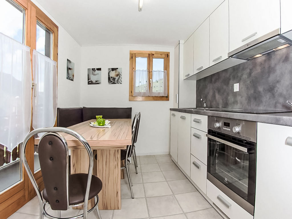 "Bergfink Obergeschoss", 3-Zimmer-Wohnung 51 m2 im 2. Stock. Renoviert im Jahre 2013, schön und gemütlich eingerichtet: Wohn-/Esszimmer mit Sat-TV (Flachbildschirm), Stereoanlage. Ausgang zum Balkon, Richtung Westen. 1 Doppelzimmer mit 2 Betten. Ausgang zum Balkon, Richtung Süden. 1 kleines Zimmer mit 2 Betten. Küche (Backofen, Geschirrspüler, 4 Glaskeramikherd Platten, elektrische Kaffeemaschine) mit Esstisch. Bad/WC. Balkon. Balkonmöbel, Liegestühle (2). Schöne Sicht auf die Berge und die Landschaft. Zur Verfügung: Internet (Wireless LAN, gratis). Parkplatz beim Haus. Bitte beachten: Nichtraucher-Unterkunft. 1 Haustier/Hund erlaubt.