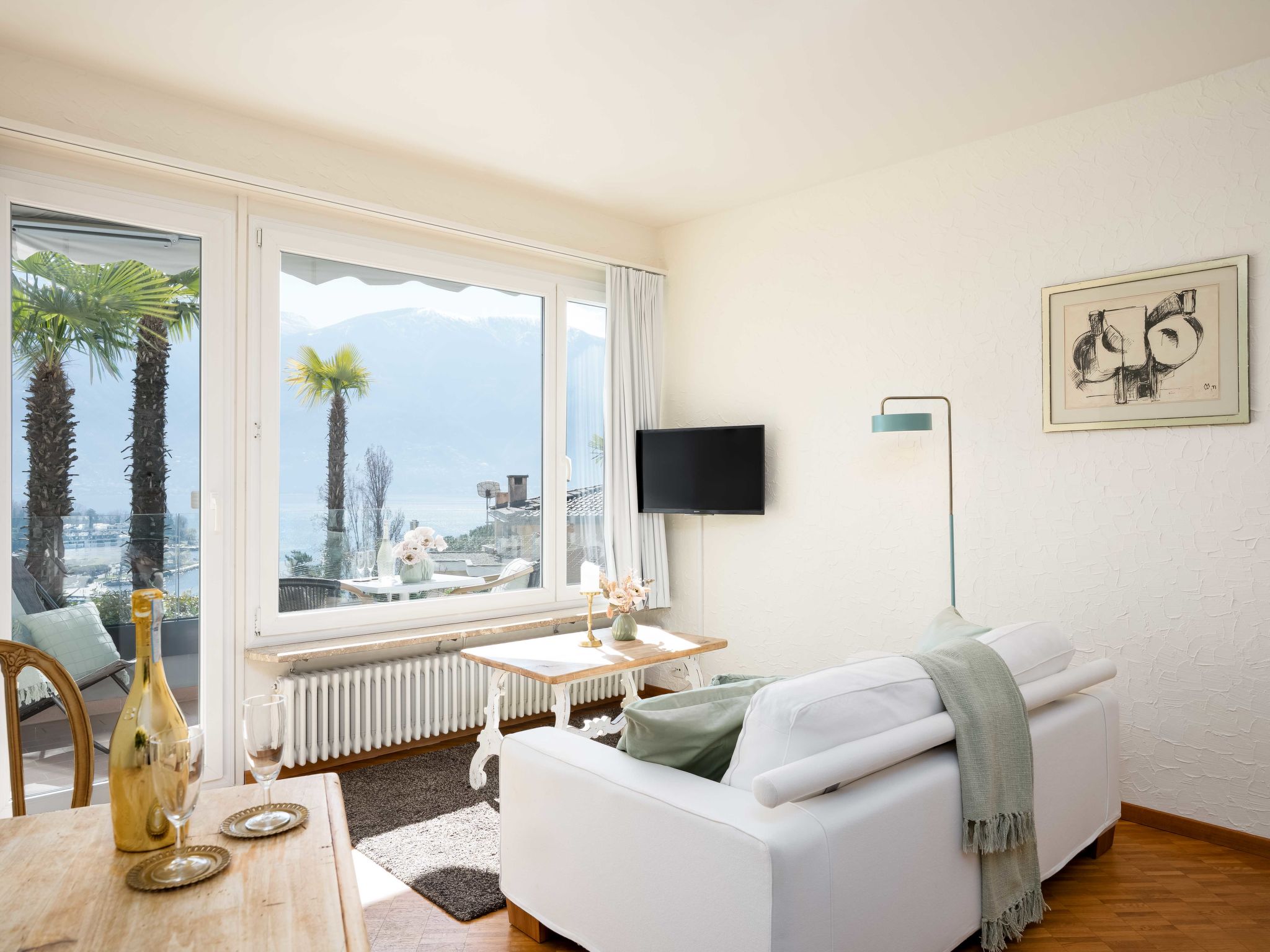 "Double Room Classic", 1-Zimmer-Wohnung 35 m2 im 1. Stock, Südlage. Wohn-/Esszimmer mit 2 Klappbetten, Sat-TV und Radio. Kochnische (Backofen, elektrische Kaffeemaschine, Kapseln für die Kaffeemaschine (Nespresso) extra). Bad/WC. Balkon, Südlage. Schöne Sicht auf den See und die Berge. Zur Verfügung: Internet (Wireless LAN, gratis). Bitte beachten: Nichtraucher-Unterkunft, Nichtraucher-Haus. Maximal 1 Haustier/Hund erlaubt.