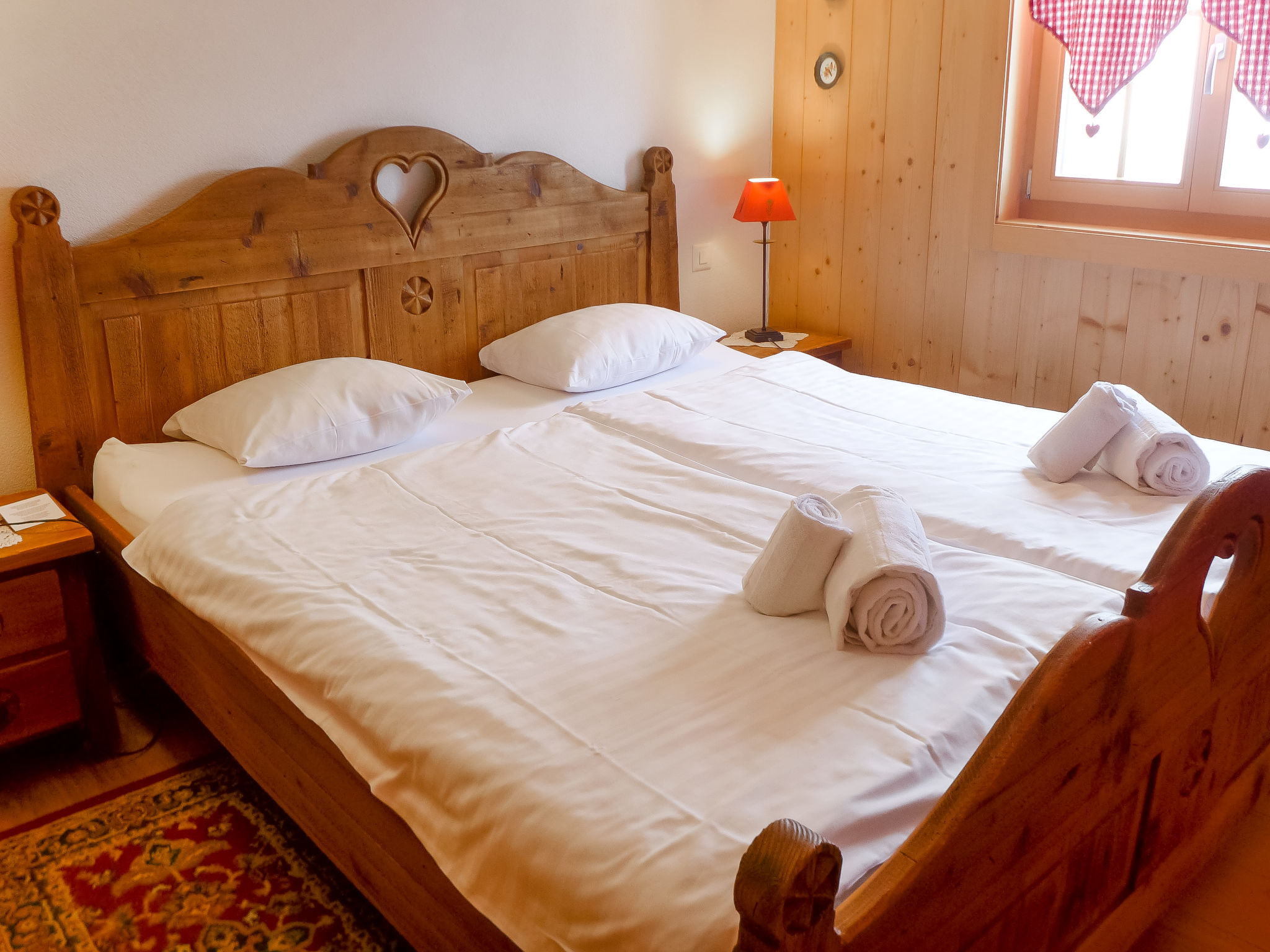 "Chalet La Poya", 4-Zimmer-Chalet 110 m2. Komfortabel und geschmackvoll eingerichtet: Wohn-/Esszimmer mit offenem Kamin, Esstisch, TV, Flachbildschirm, Stereoanlage und DVD. Ausgang zur Terrasse. Offene Küche (Backofen, Geschirrspüler, 4 Glaskeramikherd Platten, Wasserkocher, Mikrowelle, Tiefkühler, elektrische Kaffeemaschine, Kapseln für die Kaffeemaschine (Nespresso) extra, Racletteofen, Fondue Set (Käse)). Sep. WC. Unteres Geschoss: 1 Zimmer mit 1 Doppelbett und Sat-TV. Ausgang zur Terrasse. Offene kleine Schlafnische mit Vorhang mit 1 x 2 Etagenbetten. Ausgang zur Terrasse. 1 Zimmer mit 1 franz. Bett. Bad/Dusche/WC. Terrassenmöbel, Elektrogrill. Herrliche Panoramasicht auf die Berge und die Landschaft. Zur Verfügung: Waschmaschine, Wäschetrockner, Haartrockner. Internet (Wireless LAN, gratis). Bitte beachten: Nichtraucher-Unterkunft. Maximal 2 Haustiere/Hunde erlaubt.
