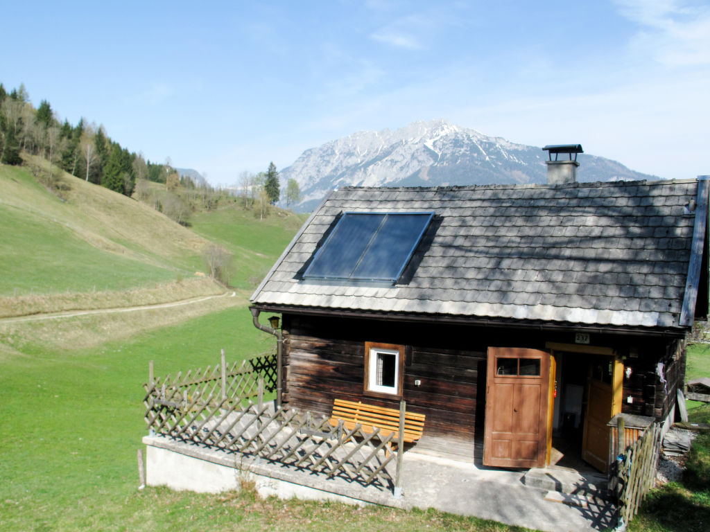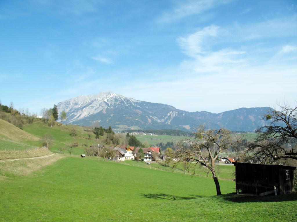 Die HARMERHÜTTE steht am Waldrand, umgeben von Wiesen und Weiden, im Ortsteil Dörfl. Schöner Blick auf die Berge des zentralen Ennstals. Ortsmitte Stein an der Enns mit Einkaufsmöglichkeit 2,5 km. Tauern Seilbahn 16 km. Parkmöglichkeit auf dem Grundstück. Auf dem ca. 10 ha großen Anwesen befindet sich auch das Bauernhaus der Besitzer, die hier Kühe, Hühner, einen Hund und eine Katze halten. Milch und Eier können bei den Besitzern gekauft werden. Offenes Wiesengrundstück zur gemeinsamen Nutzung. Dort auch Fischteich mit Freisitz (Tisch, Bänke), möblierter Hütte (Tisch, Eckbank, Sitzcouch) und transportablem Grill zur Mitbenutzung. Am Haus private Terrasse mit Gartenmobiliar, Sonnenschirm und transportablem Grill. Die urige Almhütte, innen überwiegend holzverkleidet, ist rustikal eingerichtet. Holzdielenboden. Sat-TV. Waschtrockner. Solar- und Hackschnitzelheizung. Hinweis: Rauchen ist in der Hütte nicht gestattet. Winter-Infos: Einstieg ins Skigebiet Galsterberg 11 km, Skigebiet Hauser Kaibling 15 km. Skibushaltestelle 1,5 km, Loipe 2,5 km.