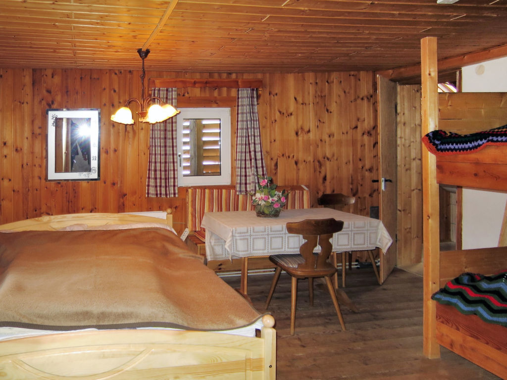 "Harmerhütte (STS250)", 1-Zimmer-Haus 25 m2. Objekt geeignet für 2 Erwachsene + 2 Kinder. Rustikal und mit viel Holz eingerichtet: Wohn-/Schlafzimmer mit 1 x 2 Etagenbetten, 1 Doppelbett, Esstisch, Sat-TV und Kachelofen. Offene Küche (Backofen, 4 Glaskeramikherd Platten, Toaster, Wasserkocher, Tiefkühler, elektrische Kaffeemaschine). Dusche/WC. Heizung, Solarheizung. Holzböden. Terrasse. Terrassenmöbel, Gartengrill (mobil). Sehr schöne Panoramasicht auf die Berge und die Landschaft. Zur Verfügung: Waschmaschine, Wäschetrockner, Kinderhochstuhl, Babybett. Bitte beachten: Nichtraucher-Haus. Maximal 1 Haustier/Hund erlaubt.