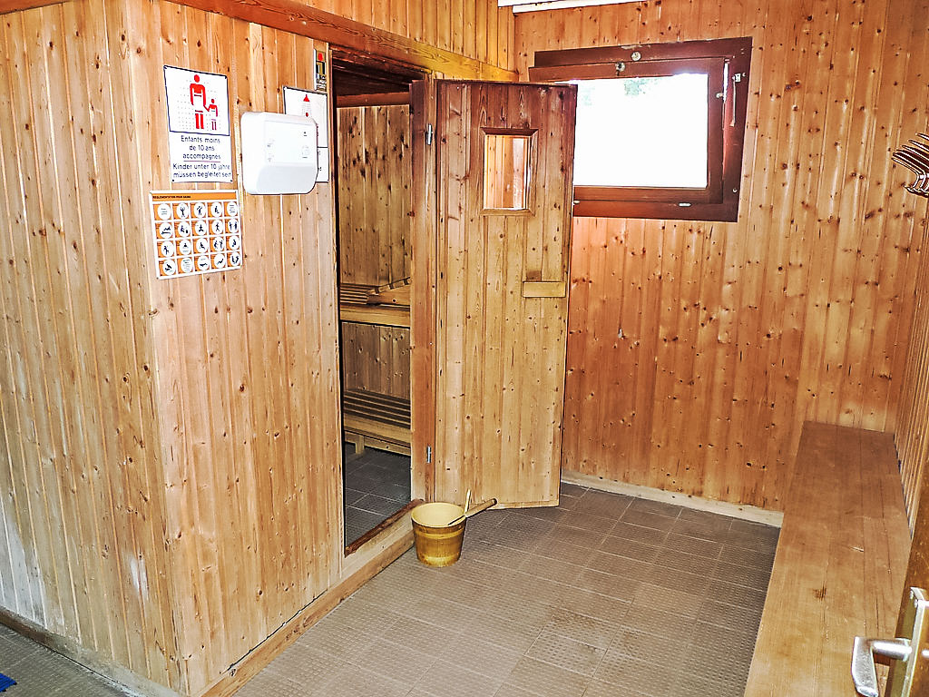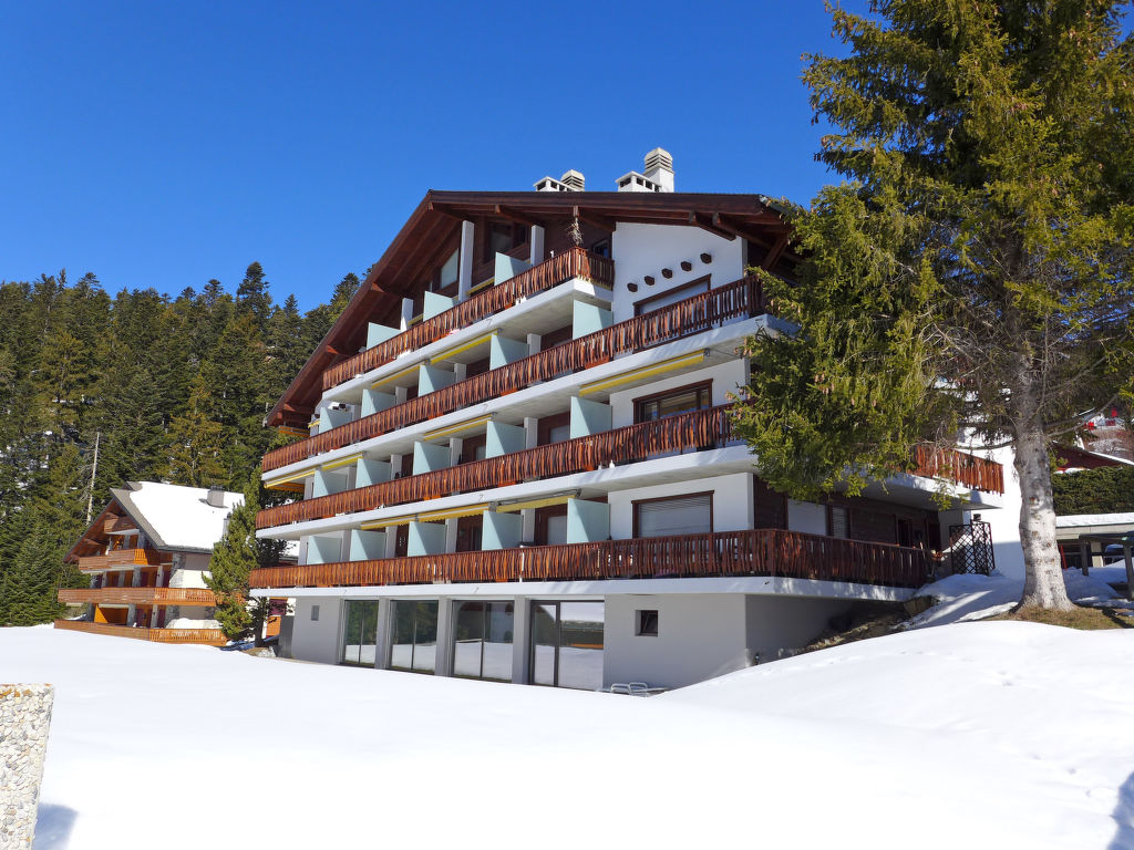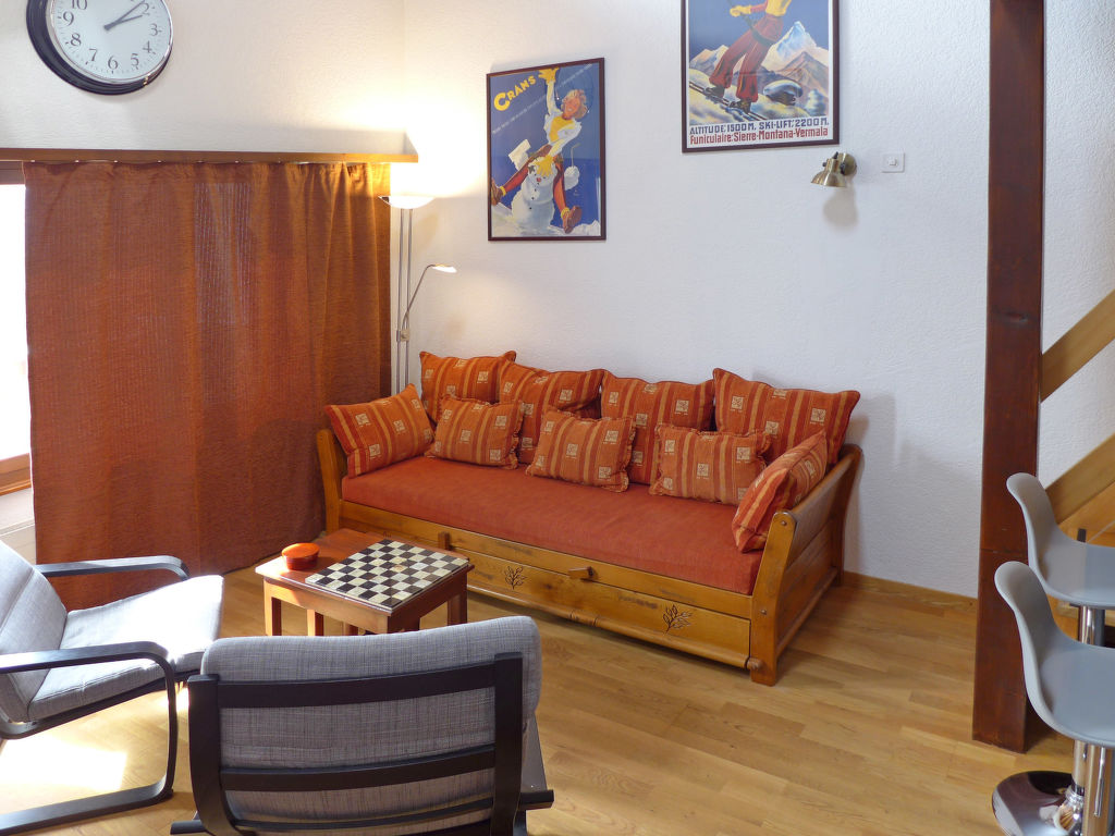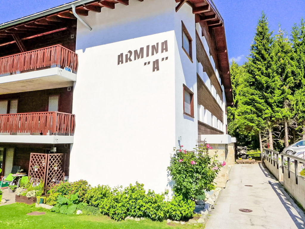 Residenz "Armina A". Unterhalb von Crans, am Ortsrand, 1.5 km vom Zentrum von Crans, ruhige, sonnige Lage. Rasen. Zur Mitbenutzung: Hallenbad beheizt (Öffnungszeiten Schwimmbad: 08:00-21:00). Im Hause: Sauna (alles inkl.), Waschmaschine, Wäschetrockner (zur Mitbenutzung, extra). Bushaltestelle "Essampilles" 130 m. Skisportanlagen 1.5 km. Bitte beachten: Fahrzeug empfohlen. COVID-Messungen: Zugang zum Pool mit 2G+. Obligatorische Bademütze. An diesem Ort verkehrt der Pendelbus nur im Winter und von Ende Juni bis Mitte September.