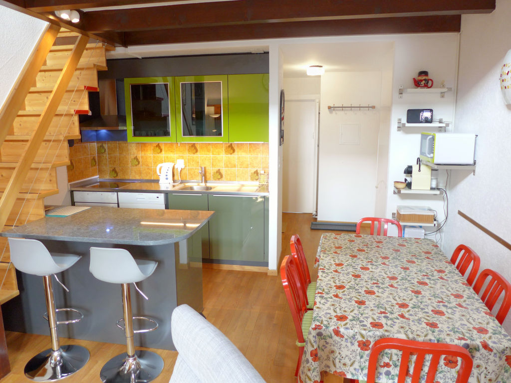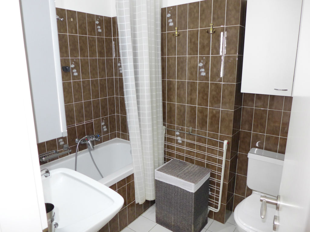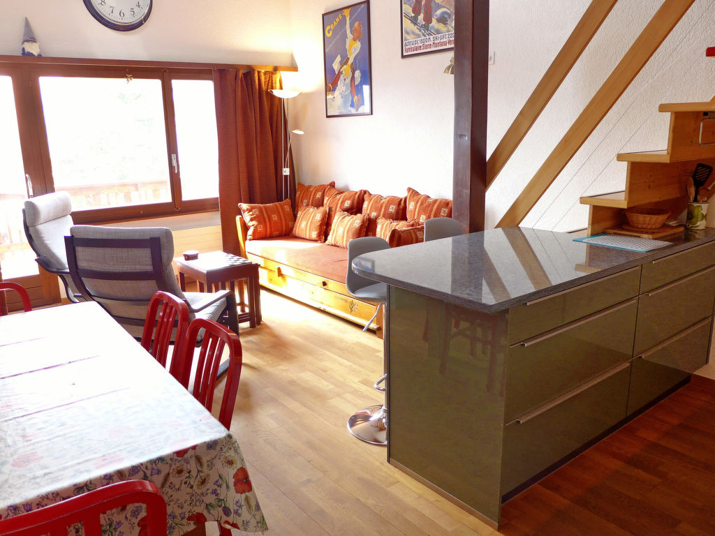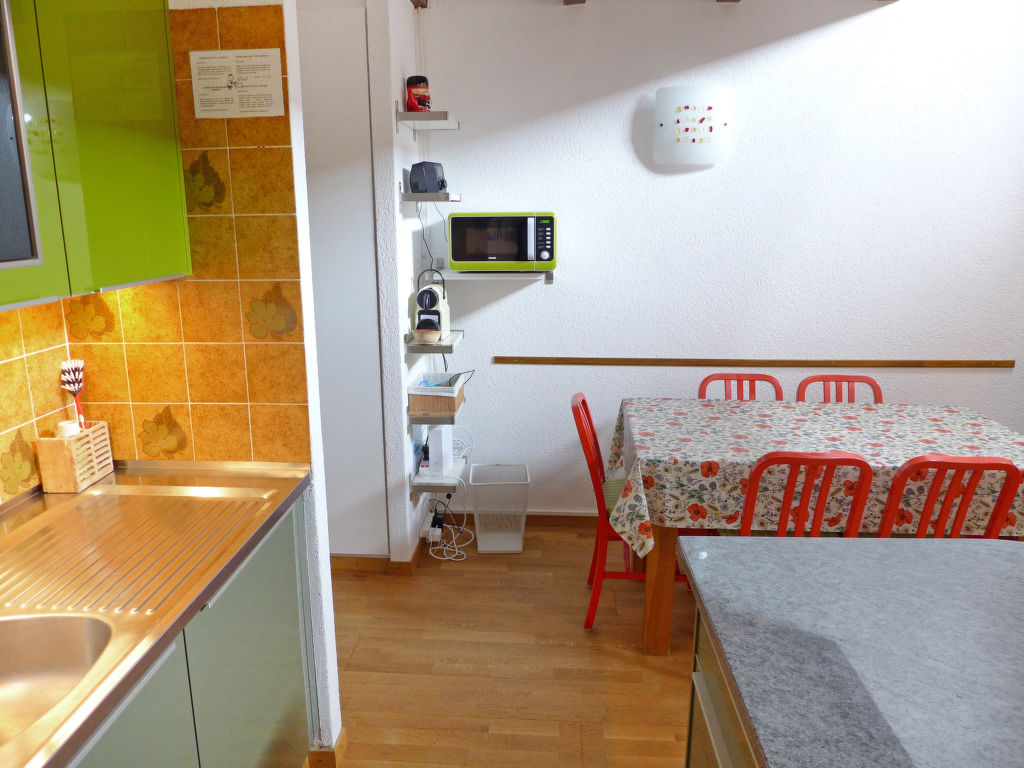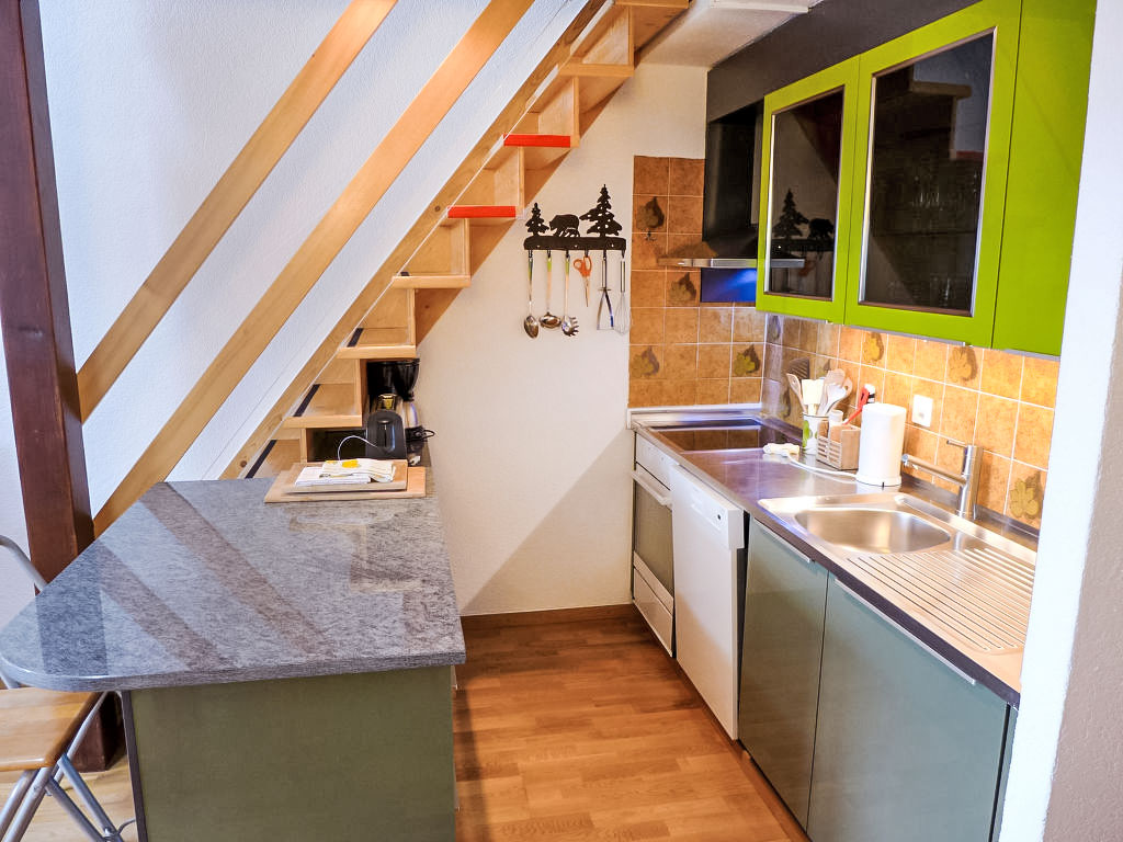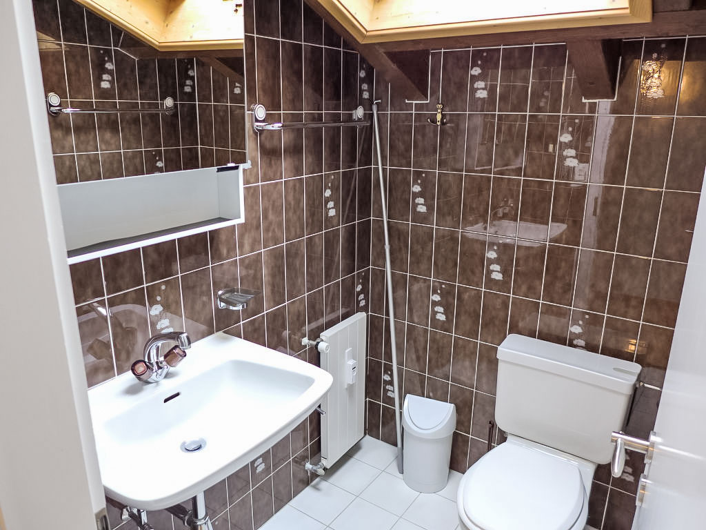 3-Zimmer-Wohnung 78 m2 auf 2 Stockwerken im 3. Stock. Teilweise abgeschrägt, schön eingerichtet: Wohn-/Esszimmer mit Radio und CD. 1 Zimmer mit 1 franz. Bett (160 cm). Offene Küche (Backofen, Geschirrspüler, 4 Glaskeramikherd Platten, Toaster, Wasserkocher, Mikrowelle, elektrische Kaffeemaschine, Kapseln für die Kaffeemaschine (DELONGHI) extra, Fondue Set (Käse)). Bad/WC. Obergeschoss: (steile Treppe) kleiner Salon mit Kabel-TV (Flachbildschirm), DVD. 1 Zimmer mit 2 Betten. Sep. WC. Balkon 8 m2, Westlage. Balkonmöbel. Schöne Sicht auf die Berge und das Tal. Zur Verfügung: Kinderhochstuhl, Babybett bis 2 Jahre, Haartrockner. Internet (Wireless LAN, gratis). Garage Nr. 20, Höhe 190 cm, Breite 230 cm. Bitte beachten: Nichtraucher-Unterkunft. Faltbares Babybett ohne Bettwäsche und ohne Decke.