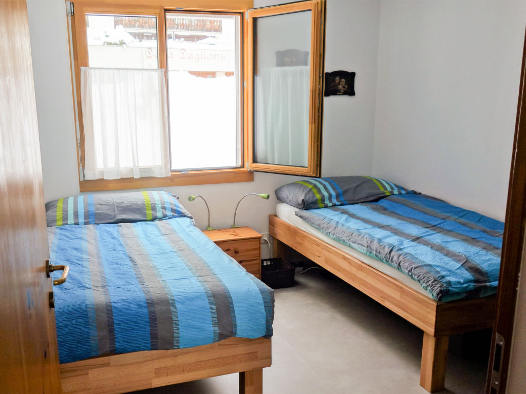 "Casa Girun Eder", 3-Zimmer-Wohnung 56 m2 im 1. Stock. Gemütlich eingerichtet: Wohn-/Esszimmer mit 1 Diwanbett und Kabel-TV (Flachbildschirm), Radio und Stereoanlage. Ausgang zum Balkon. 2 Zimmer, jedes Zimmer mit 2 Betten. Offene Küche (Backofen, 4 Glaskeramikherd Platten, elektrische Kaffeemaschine, Kapseln für die Kaffeemaschine (Nespresso) extra). Bad/WC. Balkon, Südlage. Balkonmöbel. Schöne Sicht auf die Berge, die Landschaft und die Ortschaft. Zur Verfügung: Haartrockner. Internet (Wireless LAN, gratis). Parkplatz Nr. 12. Bitte beachten: Nichtraucher-Unterkunft. 2 Haustiere/Hunde erlaubt.