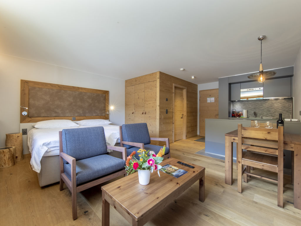 "SWISSPEAK Resorts Studio superior", 1-Zimmer-Studio 30 m2. Geschmackvoll und gemütlich eingerichtet: Studio mit 1 Doppelbett (2 x 90 cm, Länge 200 cm), Esstisch, Digital-TV, Internationale TV-Sender und Flachbildschirm. Offene Küche (2 Glaskeramikherd Platten, Mikrowelle, elektrische Kaffeemaschine, Kapseln für die Kaffeemaschine (Nespresso) extra, Fondue Set (Chinoise, Käse)). Dusche/WC. Fussbodenheizung. Parkettböden. Zur Verfügung: Haartrockner. Internet (Wireless LAN, gratis). Bitte beachten: Nichtraucher-Haus. 1 Haustier/Hund erlaubt. Rauchmelder. Beim Mietobjekt handelt es sich um ein Typenhaus bzw. Um eine Typenwohnung. Ein Fondue Set (Fleisch oder Käse) sowie ein Raclette Ofen kann an der Rezeption gegen ein Depot ausgeliehen werden.