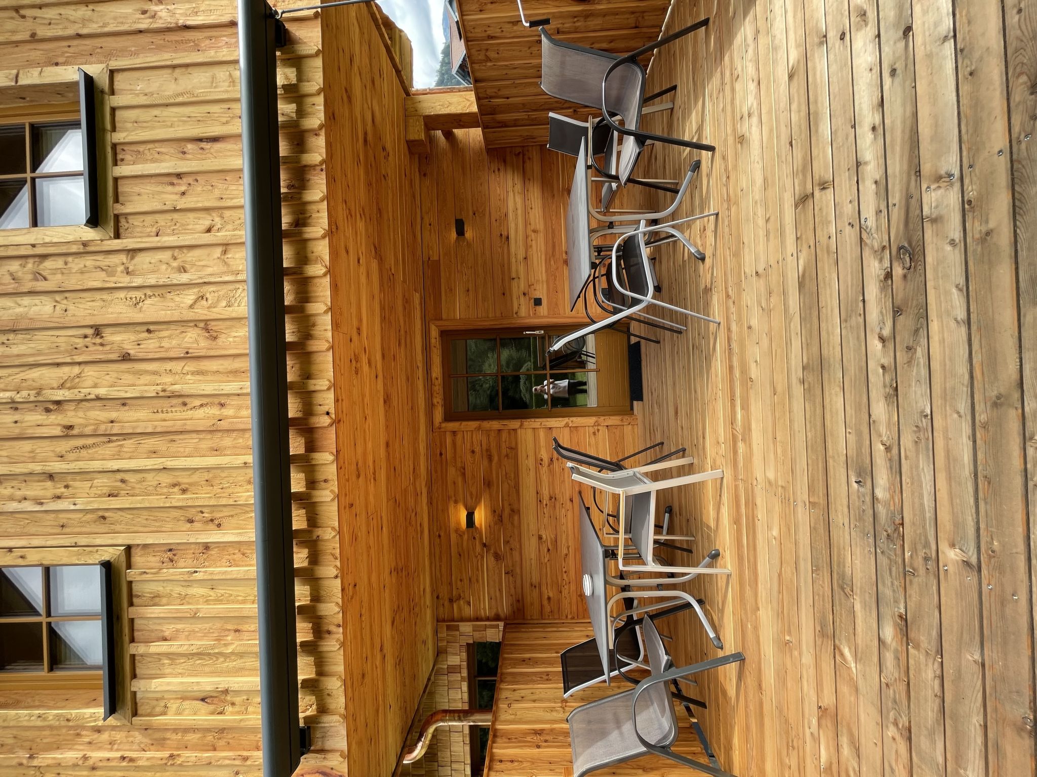 6-Zimmer-Chalet 150 m2 auf 3 Stockwerken. Geschmackvoll und gemütlich eingerichtet: Eingang. Wohnzimmer mit Kabel-TV (Flachbildschirm). Ausgang zur Terrasse. 1 Zimmer mit 1 Diwanbett, 1 Doppelbett und Dusche. Küche (4 Kochplatten, Backofen, Geschirrspüler, Mikrowelle) mit Esstisch. Sep. WC. Unteres Geschoss: Bad/WC. Obergeschoss: 1 abgeschrägtes Doppelzimmer mit Kabel-TV (Flachbildschirm). Ausgang zum Balkon. 1 abgeschrägtes kleines Doppelzimmer. 1 abgeschrägtes Zimmer mit 1 Diwanbett, 1 Doppelbett und Kabel-TV (Flachbildschirm). Ausgang zum Balkon. 2 Duschen/WC. 2 Balkone, grosse Terrasse. Terrassenmöbel, Gartengrill, Liegestühle, Abstellkammer. Sehr schöne Sicht auf die Berge und die Skipiste. Zur Verfügung: Waschmaschine, Sauna. Internet (Wireless LAN, gratis). Bitte beachten: Nichtraucher-Haus. 1 Haustier/Hund erlaubt. Kinderbett auf Anfrage nur innerhalb der maximalen Personenanzahl (10 Personen) möglich.