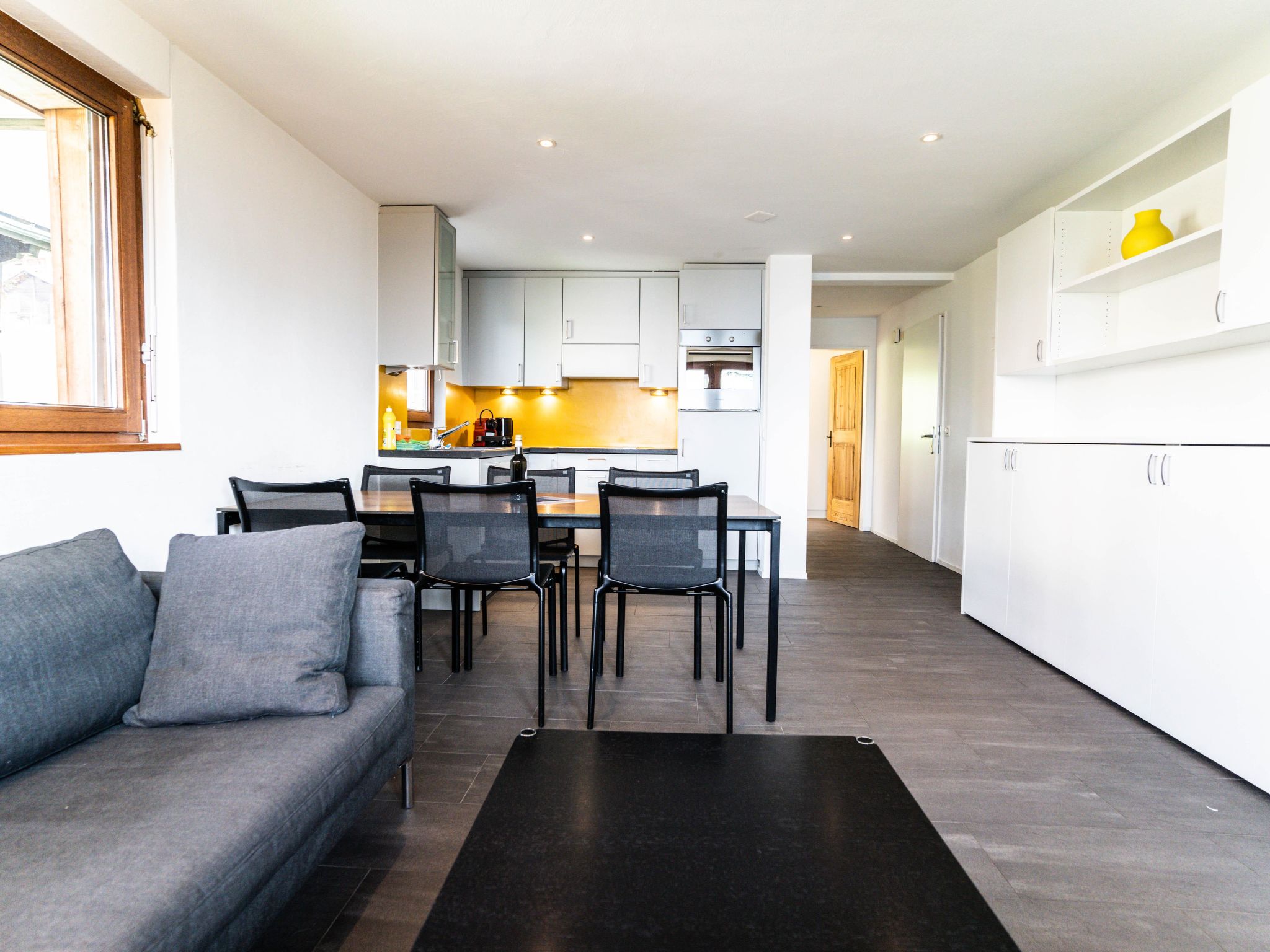 Eine 3 1/2 Zimmerwohnung im 1. OG.bis 5 Personen. Die Wohnung verfügt über 2 Schlafzimmer mit Doppelbetten, ein Zimmer davon mit separater Dusch/WC. Für eine 5. Person steht im Wohnraum ein komfortables Klappbett zur Verfügung. Badezimmer/WC, offenes Wohn- Esszimmer mit moderner Küche. Süd-West Balkon mit Tisch und Stühlen. Die Küche ist mit einem Geschirrspüler und einer Nespresso-Maschine ausgestattet. Gratis W-Lan und Satelliten TV. Waschküche im Keller. Der Ski Raum ist mit Schuhtrocknern ausgestattet. Die Nespresso-Kapseln und Wäschekarten können in unserem Geschäft im Parterre bezogen werden. Wir offerieren Ihnen in unseren Sportgeschäften Intersport bürcherAlpin 10 % auf die Mietartikel. Neu: Hauseigene Skischule bürcherAlpin mit ausgebildeten Skilehrern.