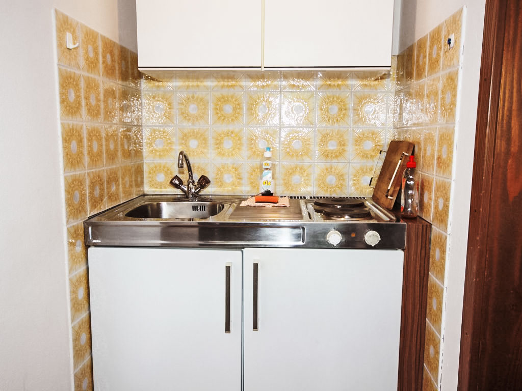 1-Zimmer-Studio 20 m2 im 1. Stock. Sehr einfach eingerichtet: Wohn-/Esszimmer mit 1 Doppelbett und Kabel-TV. Kochnische (2 Kochplatten). Dusche/WC. E-Heizung. Bitte beachten: Nichtraucher-Unterkunft. 50620-000072-2020