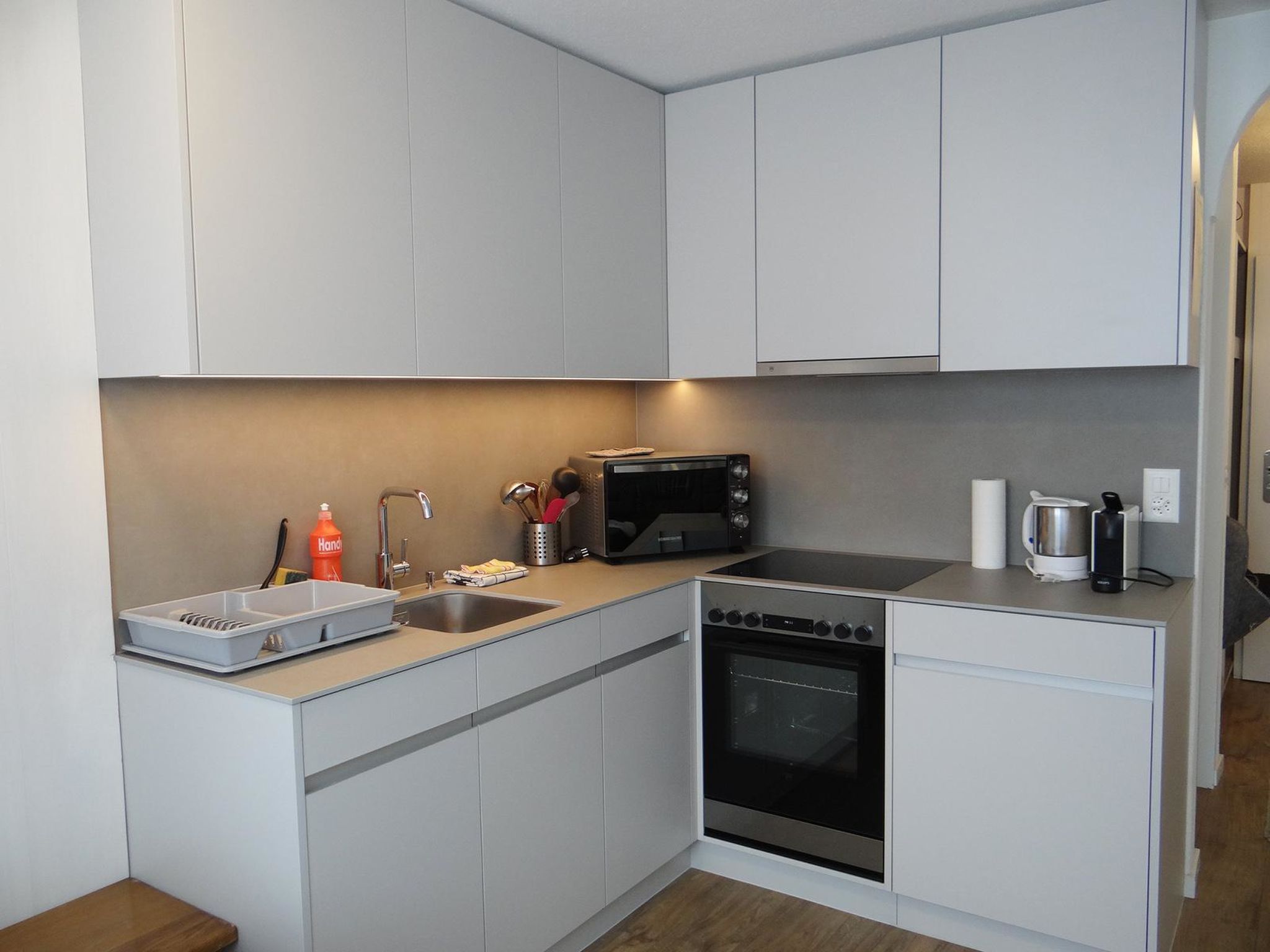 1-Zimmerwohnung, 5. Stock: Wohn-Schlafzimmer mit 2 Boxspringbetten, Wohnküche mit Nespressso-Maschine, 1 Einzelbett, Dusche-WC.