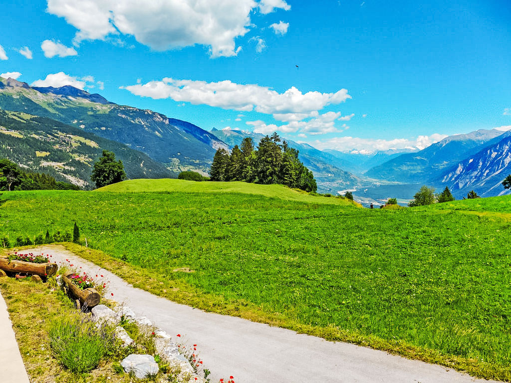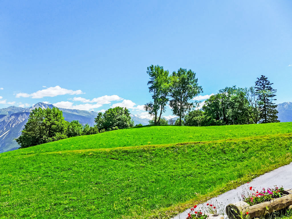 Chalet "Bredius", auf 3 Stockwerken, Baujahr 2009, umgeben von Wiesen. Unterhalb von Montana, im Ortsteil Miraval, ausserhalb des Ortes, 3 km vom Zentrum von Montana, ruhige, sonnige Lage. Rasen. Zur Alleinbenutzung: Tischtennis, Terrasse (65 m2), Gartenmöbel, Grill. Im Hause: Zentralheizung, Waschmaschine, Wäschetrockner. 100 m lange steile Zufahrt bis zum Haus. Im Winter bitte Schneeketten mitbringen, im Winter 4x4 empfohlen. Einzelgarage. Bushaltestelle "Pradouvan" 700 m. Skisportanlagen 2.4 km, Skipisten 2.4 km. Der Balkon im 1. Stockwerk ist in Südlage, jener im Erdgeschoss in Südostlage.