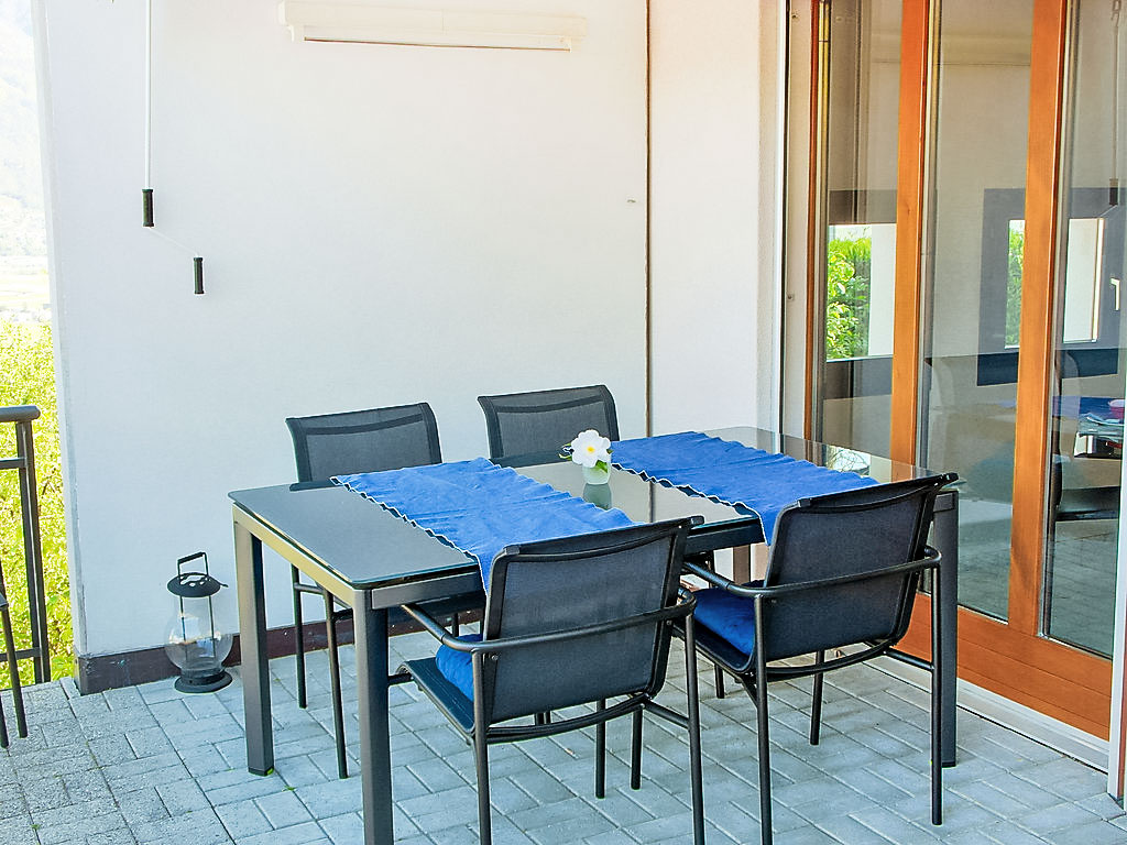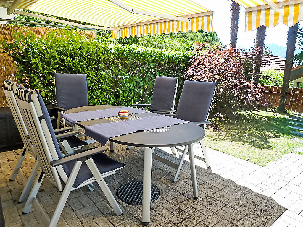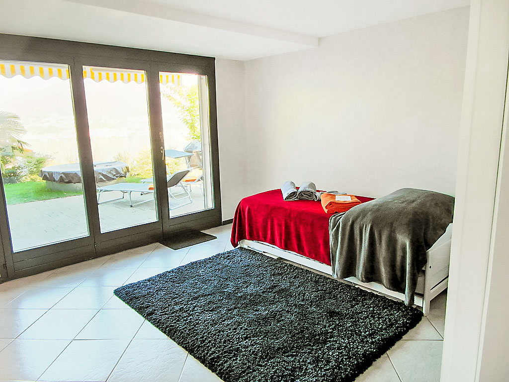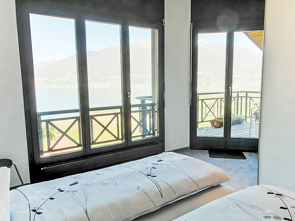 "Condominio Pianone (Eckhaus)", 4-Zimmer-Reihenhaus 146 m2 auf 3 Stockwerken, Südwestlage. Geräumig und hell, schön und modern eingerichtet: Wohn-/Esszimmer mit offenem Kamin, Kabel-TV und Flachbildschirm. Ausgang zum Balkon. Offene Küche (Backofen, Geschirrspüler, 4 Glaskeramikherd Platten, Mikrowelle, elektrische Kaffeemaschine, Kapseln für die Kaffeemaschine (Delizio i.d. Migros) extra, Racletteofen, Fondue Set (Chinoise, Käse)). Dusche/WC. Unteres Geschoss: Durchgangszimmer mit 1 Ausziehbett (2 Pers. 2 x 90 cm, Länge 200 cm). Ausgang zum Gartensitzplatz. Boiler. Obergeschoss: 1 Doppelzimmer mit 1 Doppelbett (2 x 90 cm, Länge 200 cm). Ausgang zum Balkon. 1 Kinderzimmer mit 2 Betten (90 cm, Länge 200 cm). Ausgang zum Balkon. Bad/WC. Natursteinböden. 2 Balkone, Gartensitzplatz. Balkonmöbel, Gartengrill (mobil), Liegestühle (4). Panoramasicht auf den See und die Berge. Zur Verfügung: Waschmaschine, Wäschetrockner, Bügeleisen, Haartrockner. Internet (Wireless LAN, gratis). Parkplatz Nr. 9 (überdacht). Bitte beachten: Nichtraucher-Haus.