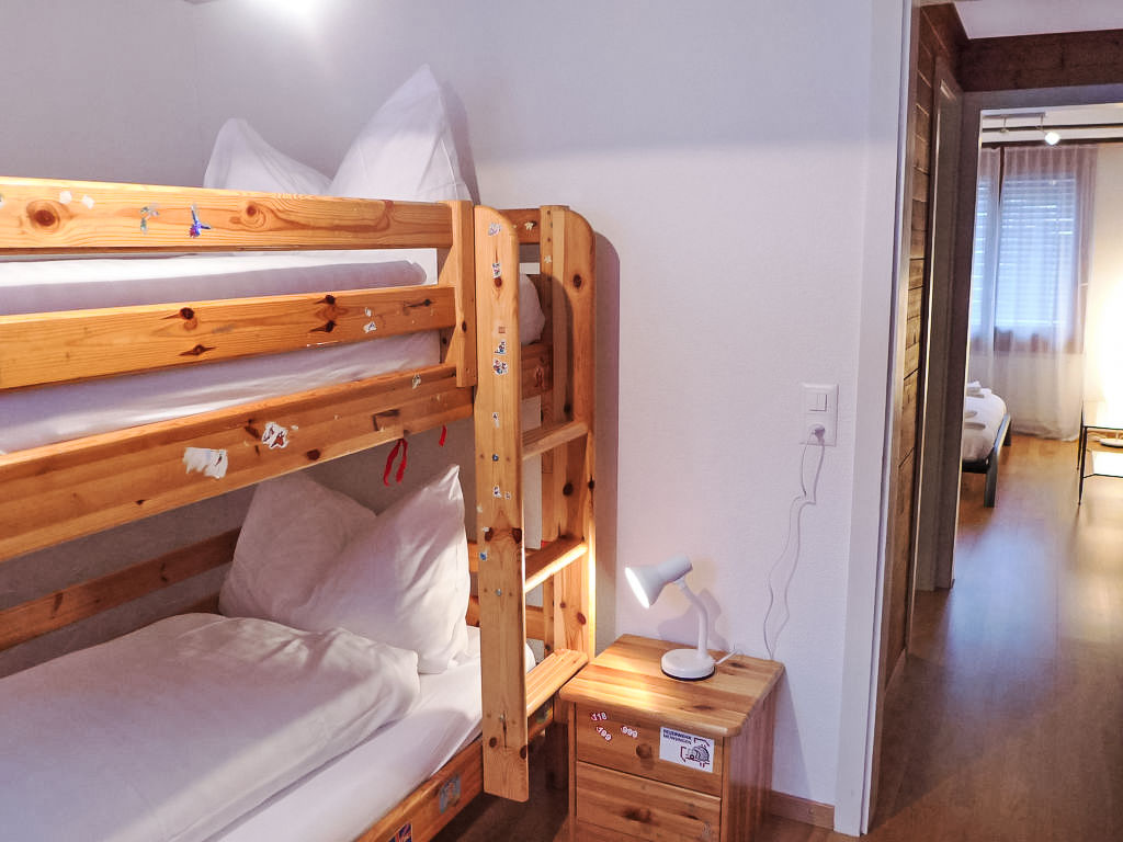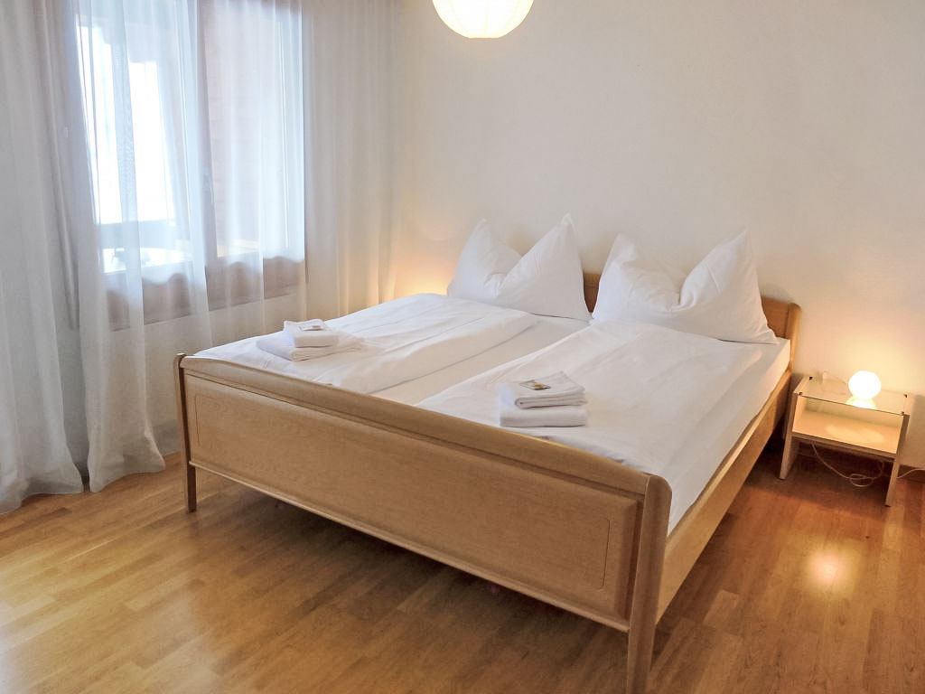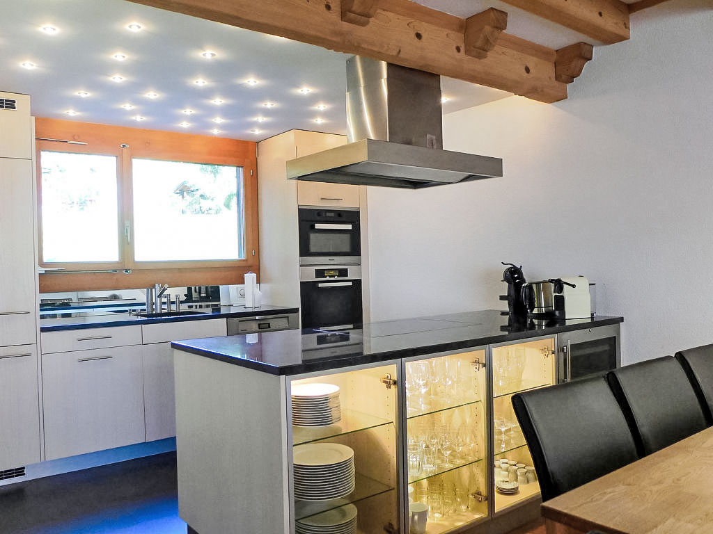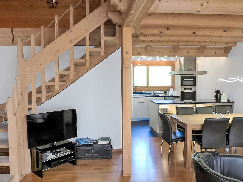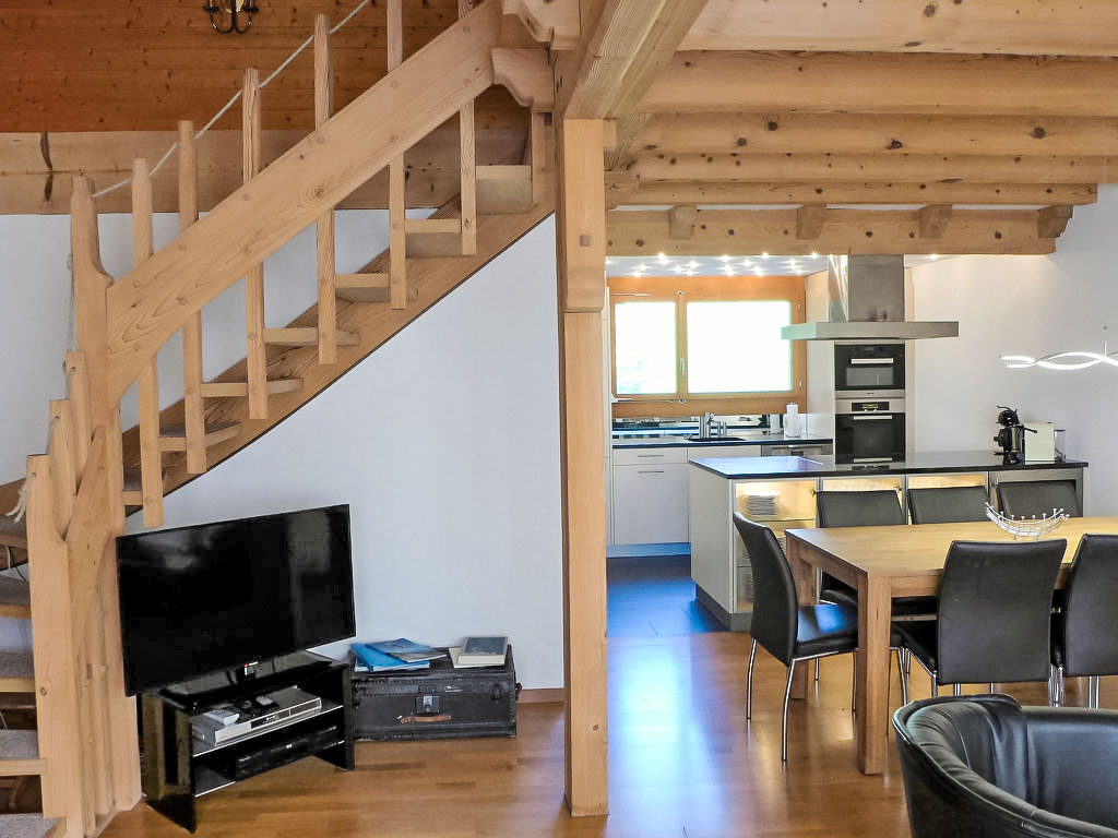 5-Zimmer-Wohnung 140 m2 im 3. Stock, Südlage. Modern und gemütlich eingerichtet: Wohn-/Esszimmer mit offenem Kamin und Kabel-TV (Flachbildschirm), Radio und CD. Ausgang zum Balkon, Richtung Süden und Richtung Westen. 1 Doppelzimmer (2 x 90 cm, Länge 200 cm). Ausgang zum Balkon. 1 Zimmer mit 2 Betten (90 cm, Länge 200 cm). Offene Küche (Backofen, Geschirrspüler, 4 Glaskeramikherd Platten, Toaster, Wasserkocher, elektrische Kaffeemaschine, Kapseln für die Kaffeemaschine (Nespresso) extra, Fondue Set (Käse)). Bad/WC. Obergeschoss: 1 Zimmer mit 1 x 2 Etagenbetten (90 cm, Länge 200 cm). 1 Zimmer mit 1 franz. Bett (160 cm, Länge 200 cm). Dusche/WC. Parkettböden, Natursteinböden. Südlage und Westlage. Balkonmöbel. Sehr schöne Sicht auf die Berge und Eigernordwand. Zur Verfügung: Waschmaschine, Haartrockner, Holz (extra). Internet (Wireless LAN, gratis). Garage Nr. nur 1 Auto!, Höhe 210 cm, Breite 220 cm. Bitte beachten: Nichtraucher-Unterkunft. Eigener Eingang, Feuerlöscher, kein Fahrstuhl.