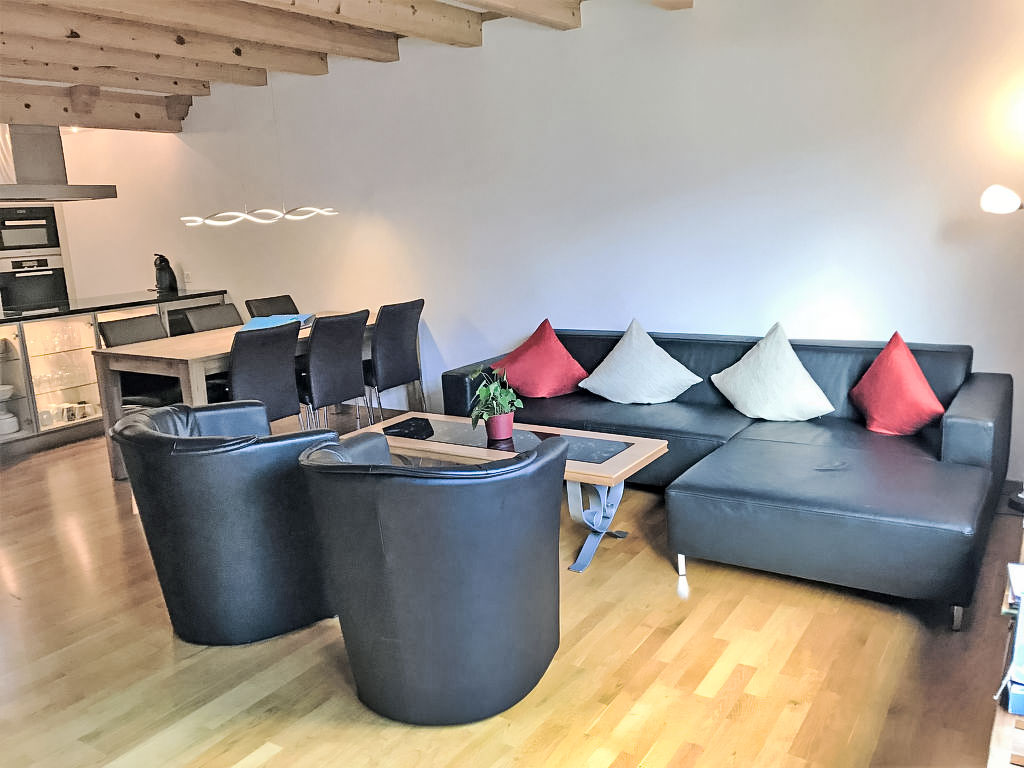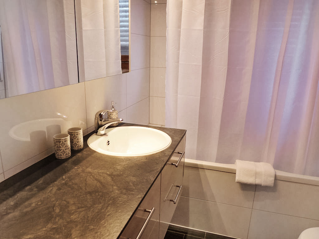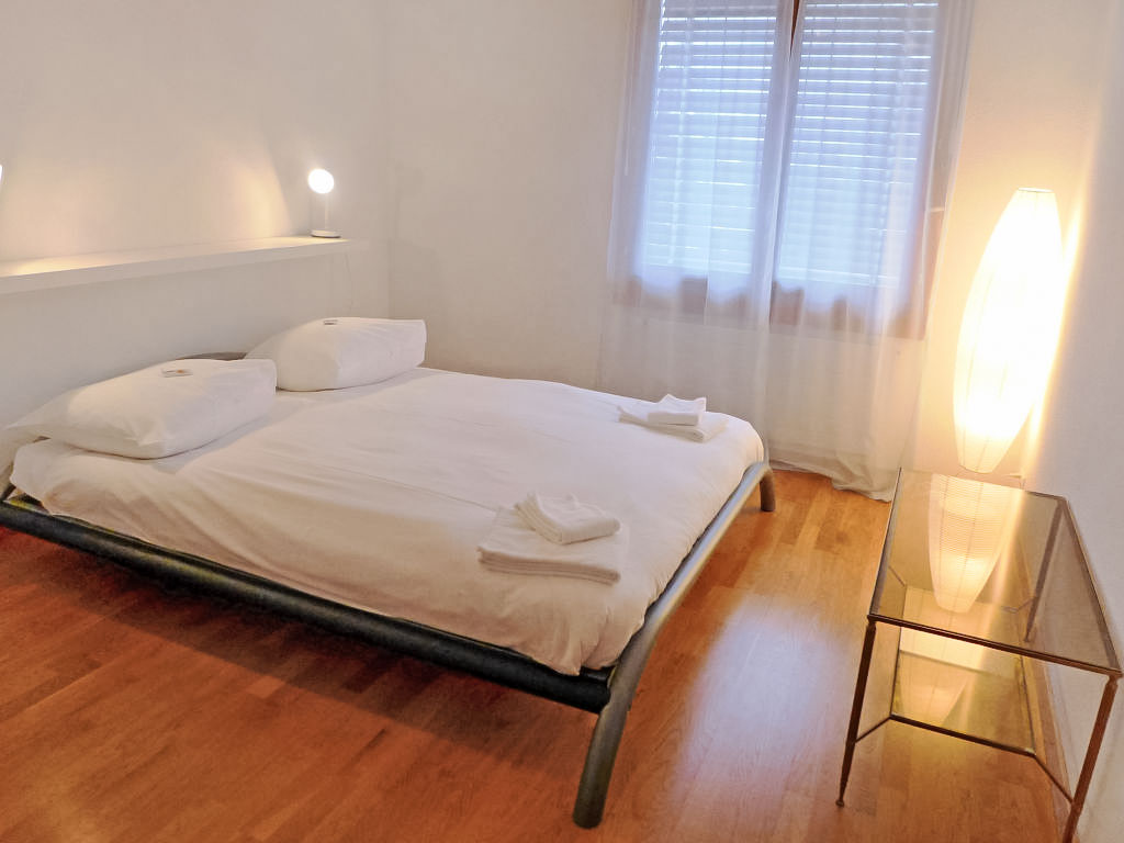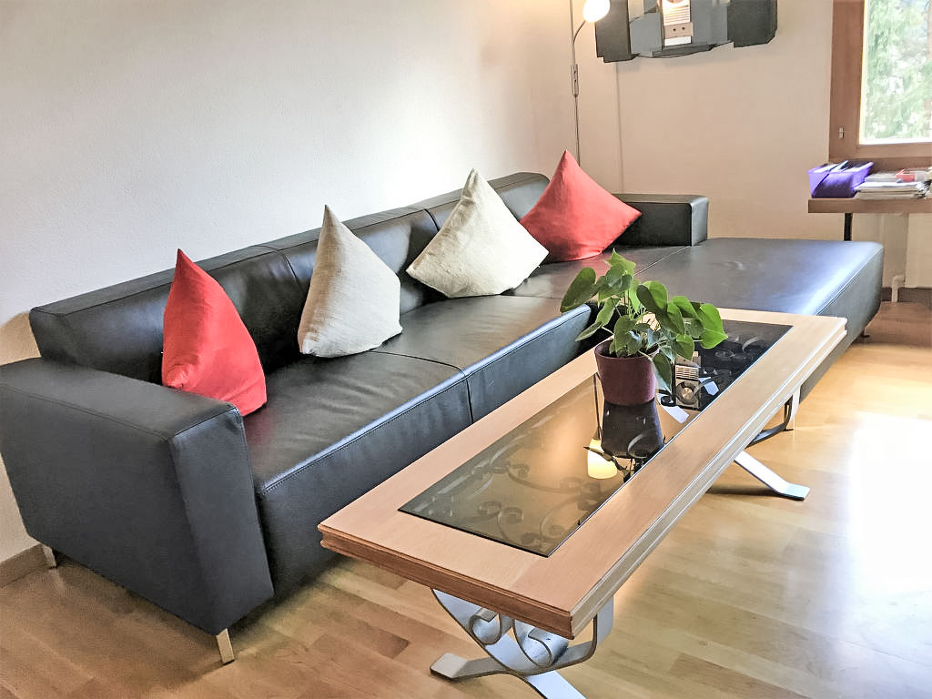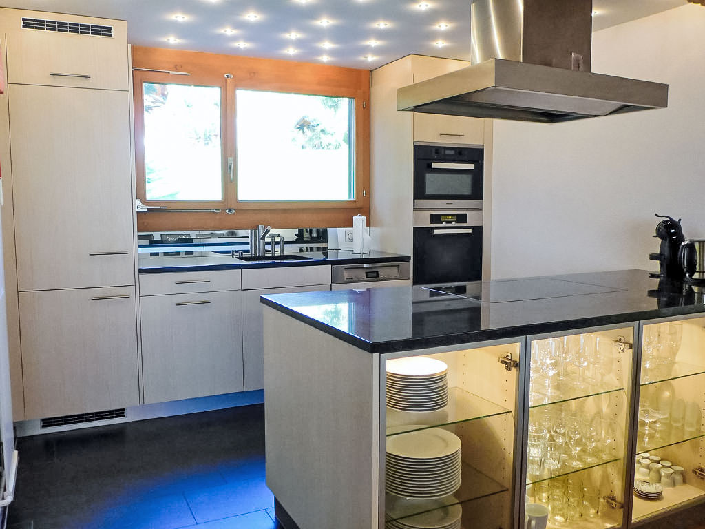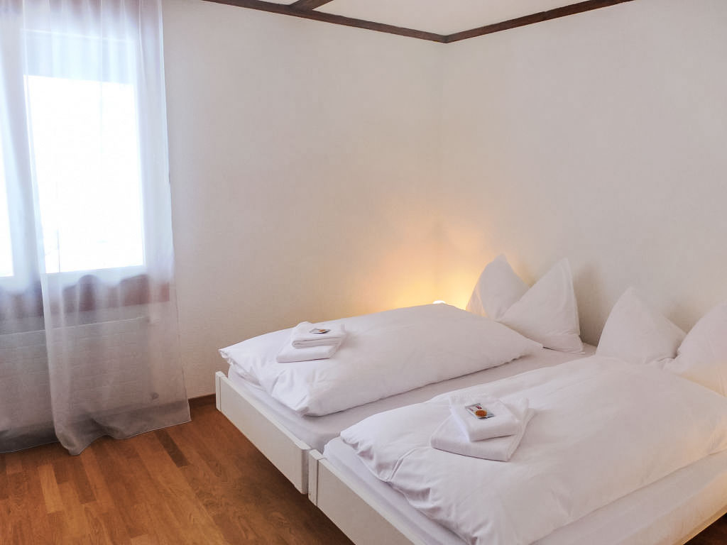 5-Zimmer-Wohnung 140 m2 im 3. Stock, Südlage. Modern und gemütlich eingerichtet: Wohn-/Esszimmer mit offenem Kamin und Kabel-TV (Flachbildschirm), Radio und CD. Ausgang zum Balkon, Richtung Süden und Richtung Westen. 1 Doppelzimmer (2 x 90 cm, Länge 200 cm). Ausgang zum Balkon. 1 Zimmer mit 2 Betten (90 cm, Länge 200 cm). Offene Küche (Backofen, Geschirrspüler, 4 Glaskeramikherd Platten, Toaster, Wasserkocher, elektrische Kaffeemaschine, Kapseln für die Kaffeemaschine (Nespresso) extra, Fondue Set (Käse)). Bad/WC. Obergeschoss: 1 Zimmer mit 1 x 2 Etagenbetten (90 cm, Länge 200 cm). 1 Zimmer mit 1 franz. Bett (160 cm, Länge 200 cm). Dusche/WC. Parkettböden, Natursteinböden. Südlage und Westlage. Balkonmöbel. Sehr schöne Sicht auf die Berge und Eigernordwand. Zur Verfügung: Waschmaschine, Haartrockner, Holz (extra). Internet (Wireless LAN, gratis). Garage Nr. nur 1 Auto!, Höhe 210 cm, Breite 220 cm. Bitte beachten: Nichtraucher-Unterkunft. Eigener Eingang, Feuerlöscher, kein Fahrstuhl.