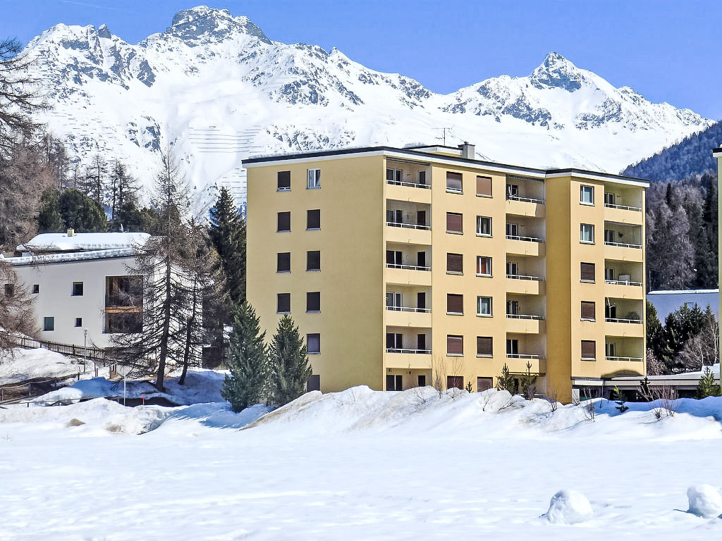 St. Moritz Bad: Mehrfamilienhaus "Chesa Daniela B", auf 6 Stockwerken, Baujahr 1971. Zentrale Lage in einem Wohnquartier, 50 m vom Waldrand, 50 m vom See, 1.2 km vom Skigebiet, in einer Sackgasse. Im Hause: Waschmaschine (zur Mitbenutzung, extra), Trockenraum. Einzelgarage. Einkaufsgeschäft 750 m, Supermarkt 1.1 km, Restaurant 350 m, Bäckerei 900 m, Café, Fahrradverleih 750 m, Bushaltestelle "St. Moritz Bad, Giand'Alva" 230 m, Bahnstation 2.4 km, Hallenbad 750 m, Thermalbad "Heilbadzentrum St. Moritz" 900 m, See St. Moritzer See 50 m. Golfplatz (18 Loch) 8 km, Surfschule 5.6 km, Tennis 1.3 km, Tennishalle 1.3 km, Minigolf 750 m, Reitstall 3.2 km, Wanderwege ab Haus, Radweg 50 m, Luftseilbahn 1.2 km, Skilift 1.2 km, Skipisten 1.2 km, Skiverleih 750 m, Skibushaltestelle 230 m, Skischule 2.4 km, Kinderskischule 2.4 km, Schlittelbahn 6 km, Langlaufloipe 200 m, Eisfeld 750 m, Kinderspielplatz 850 m. Nahe gelegene Sehenswürdigkeiten: Segantini Museum 2.6 km, Engadiner Museum 1.5 km, Mili Weber-Haus 3.2 km, Olympia Bob Run mit Museum 3 km, Nietzsche Museum in Sils-Maria 9.9 km. Bekannte Skigebiete sind gut erreichbar: Corviglia Piz Nair 1.2 km, Corvatsch - Furtschellas 6.8 km, Diavolezza - Lagalb 20.1 km. Bekannte Seen in der Umgebung sind gut erreichbar: St.Moritzer See 50 m, Silvaplaner See 5.6 km, Silser See 9.8 km. Wandergebiete: Stazerwald & Stazersee, Corviglia Piz Nair, Muottas Muragl. Die Schlüsselübergabe findet bei der Agentur Interhome in St. Moritz Bad statt.
