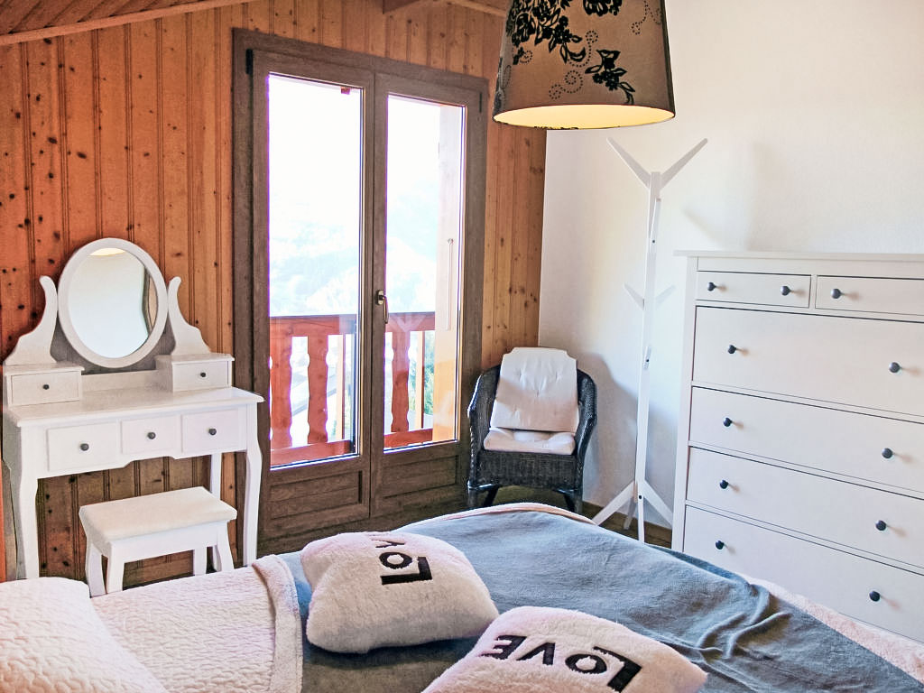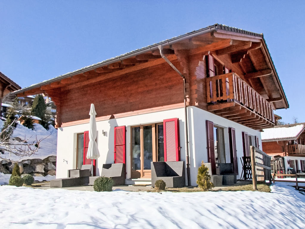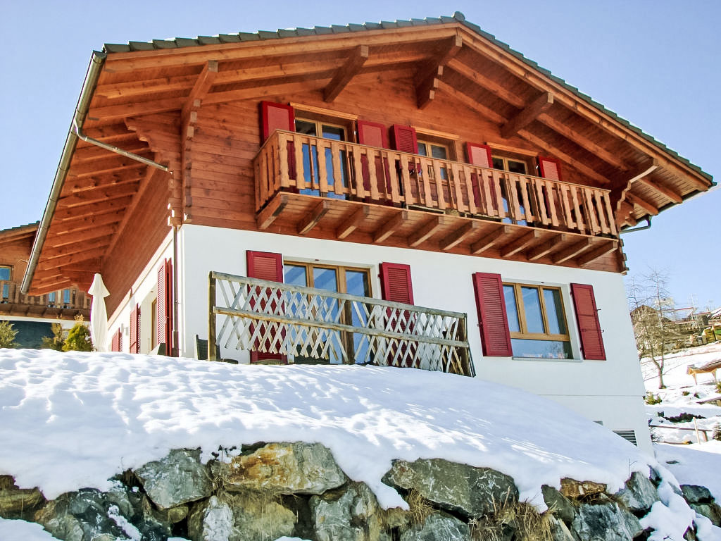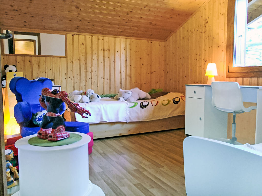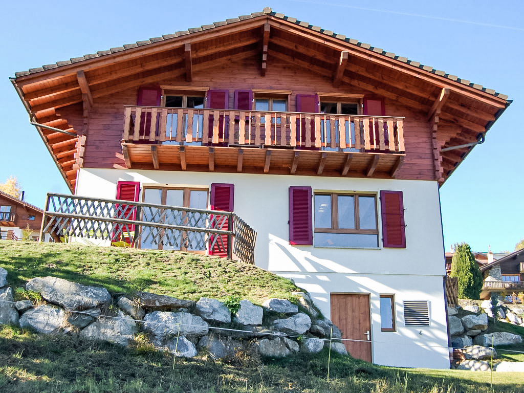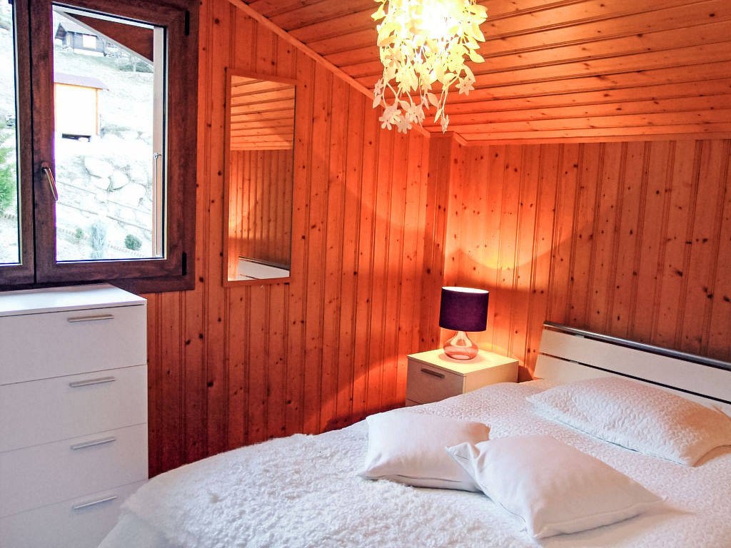 "Demi-Lune", 5-Zimmer-Chalet 150 m2. Geräumig und hell, komfortabel und geschmackvoll eingerichtet: Eingang. Wohn-/Esszimmer mit Kabel-TV. Ausgang zur Terrasse. Offene Küche (Backofen, Geschirrspüler, 4 Glaskeramikherd Platten, elektrische Kaffeemaschine, Kapseln für die Kaffeemaschine (nespresso) extra, Racletteofen, Fondue Set (Käse)) mit Bar. Dusche/WC. Fussbodenheizung. Unteres Geschoss: Spielzimmer mit Kabel-TV. Obergeschoss: 2 Zimmer, jedes Zimmer mit 1 franz. Bett (160 cm, Länge 200 cm). Ausgang zum Balkon, Richtung Osten. 1 Zimmer mit 1 franz. Bett (140 cm, Länge 200 cm). 1 Kinderzimmer mit 1 Bett (70 cm, Länge 170 cm), 1 Ausziehbett (2 x 90 cm, Länge 190 cm). Bad/Dusche/WC. Terrassenmöbel, Gartengrill, Liegestühle (2). Sehr schöne Sicht auf die Berge und das Tal. Zur Verfügung: Waschmaschine, Babybett. Internet (Wireless LAN, gratis). Parkplatz (2 Autos). Bitte beachten: Nichtraucher-Unterkunft.