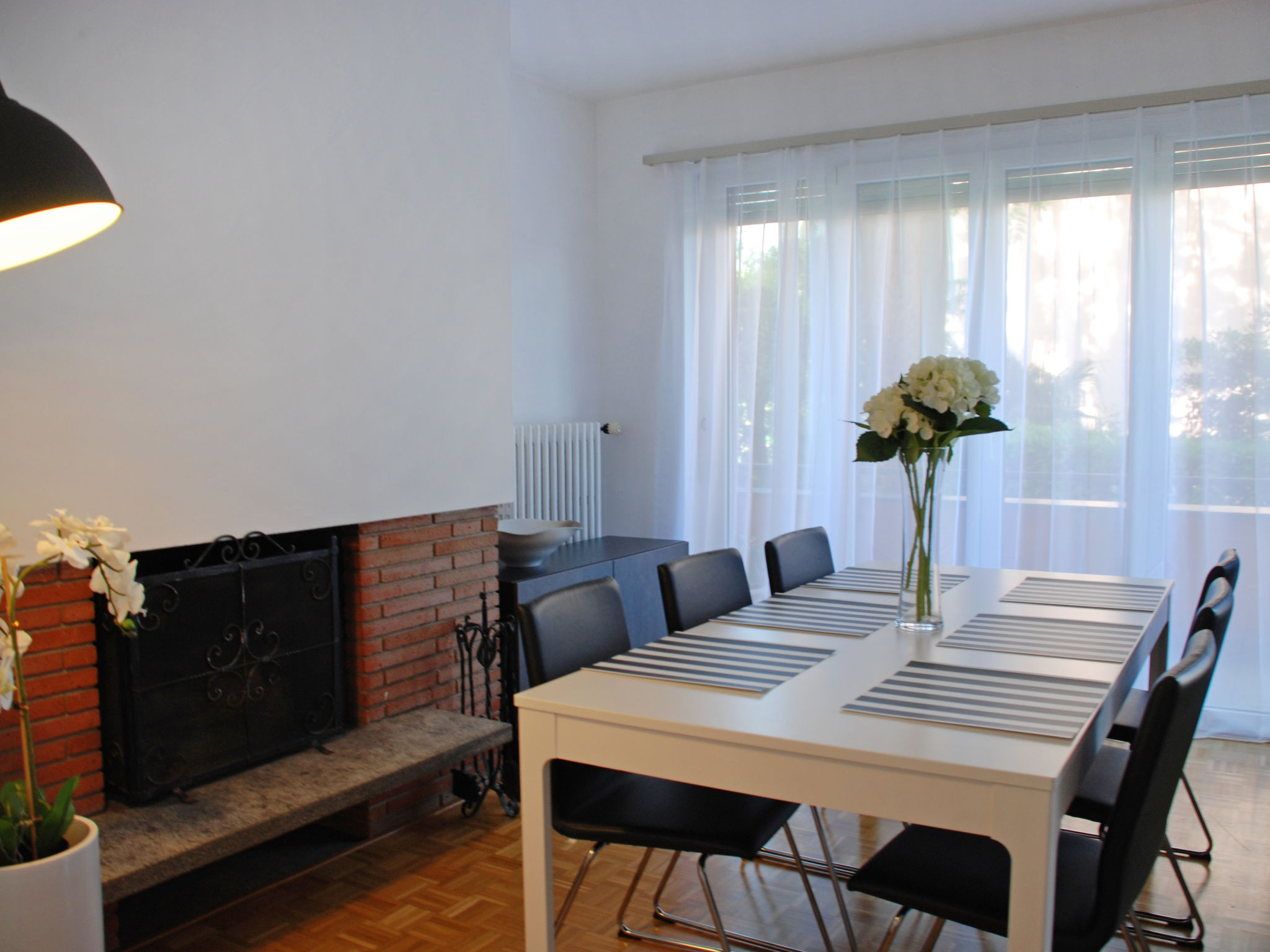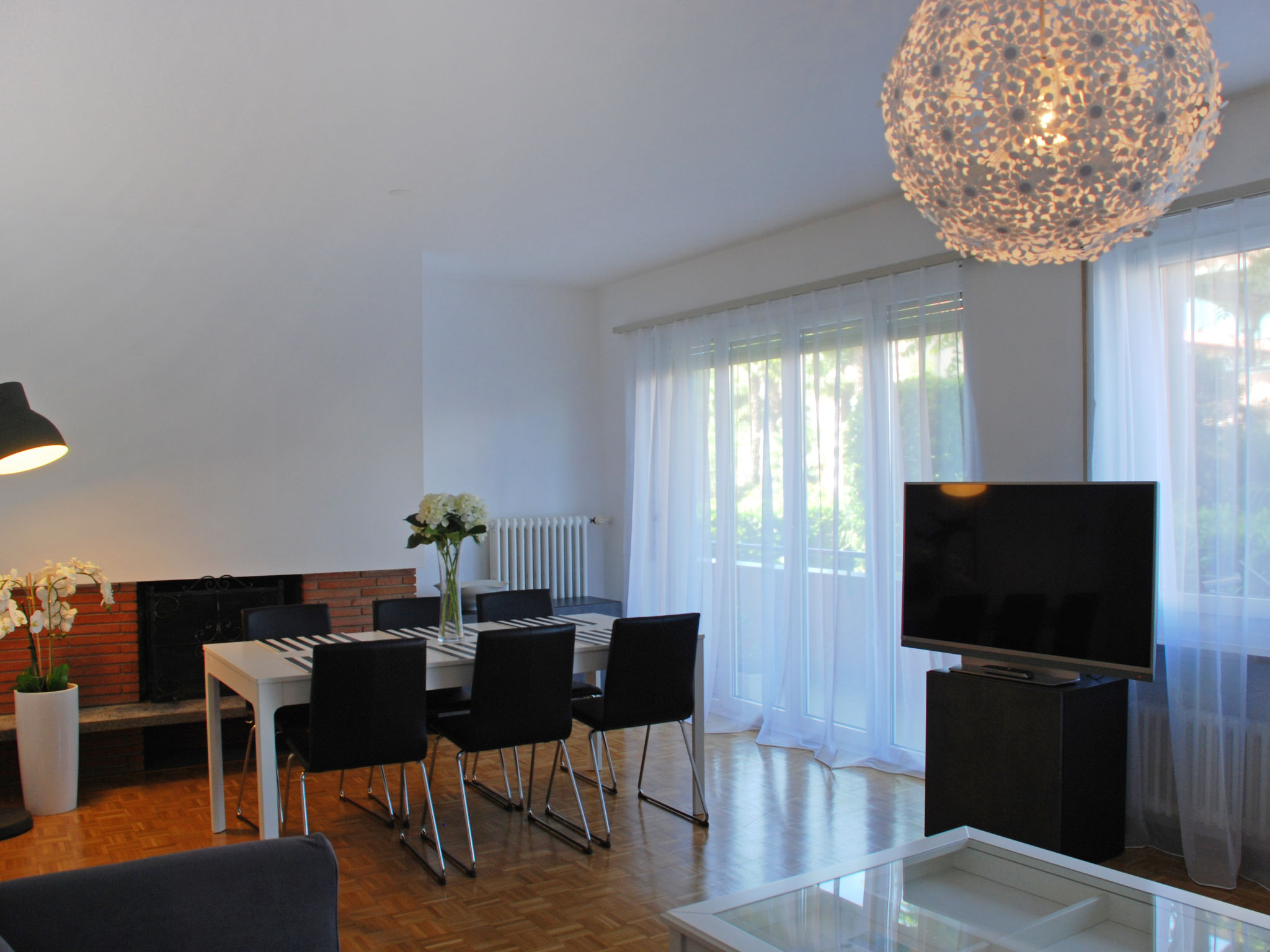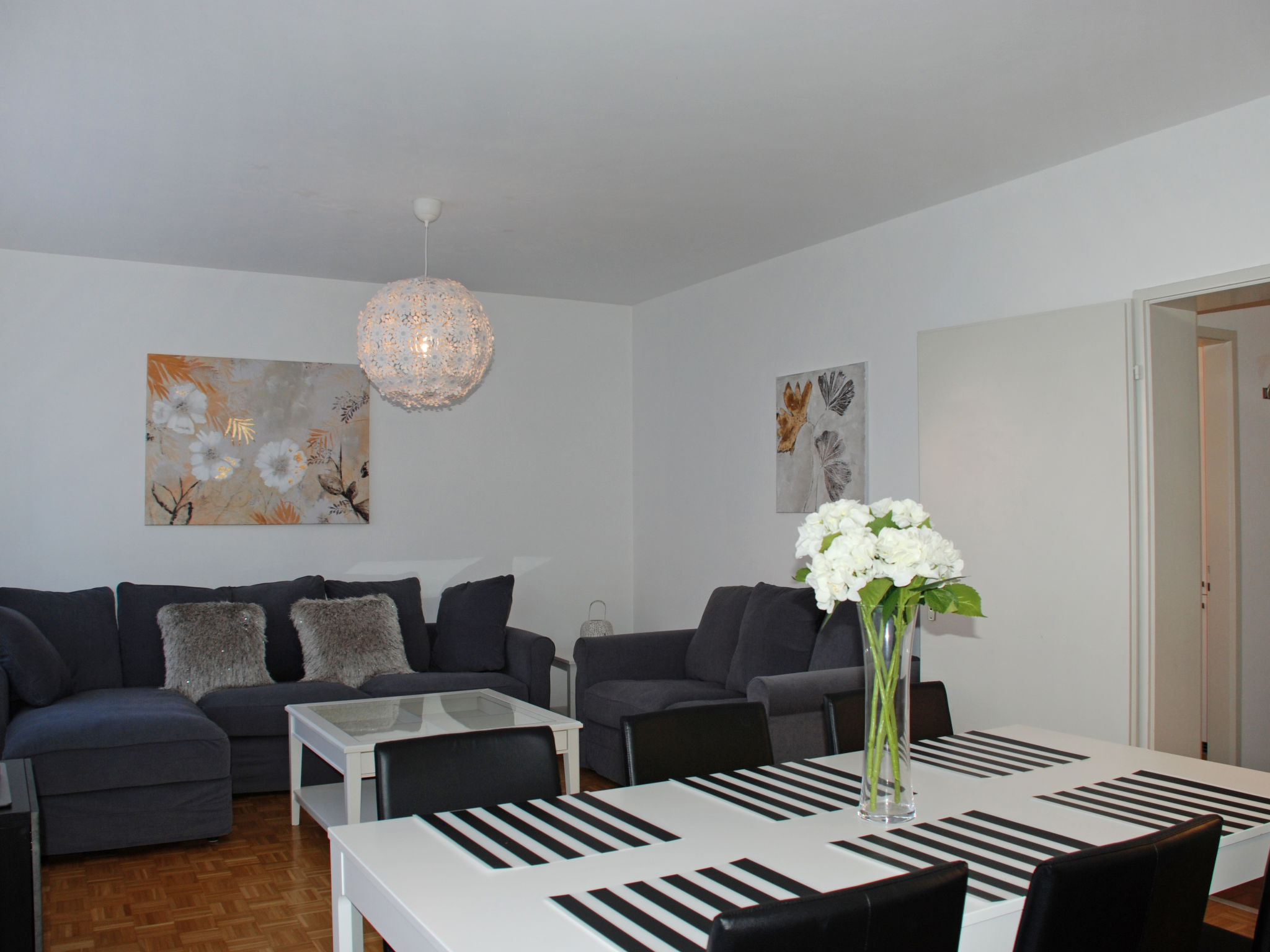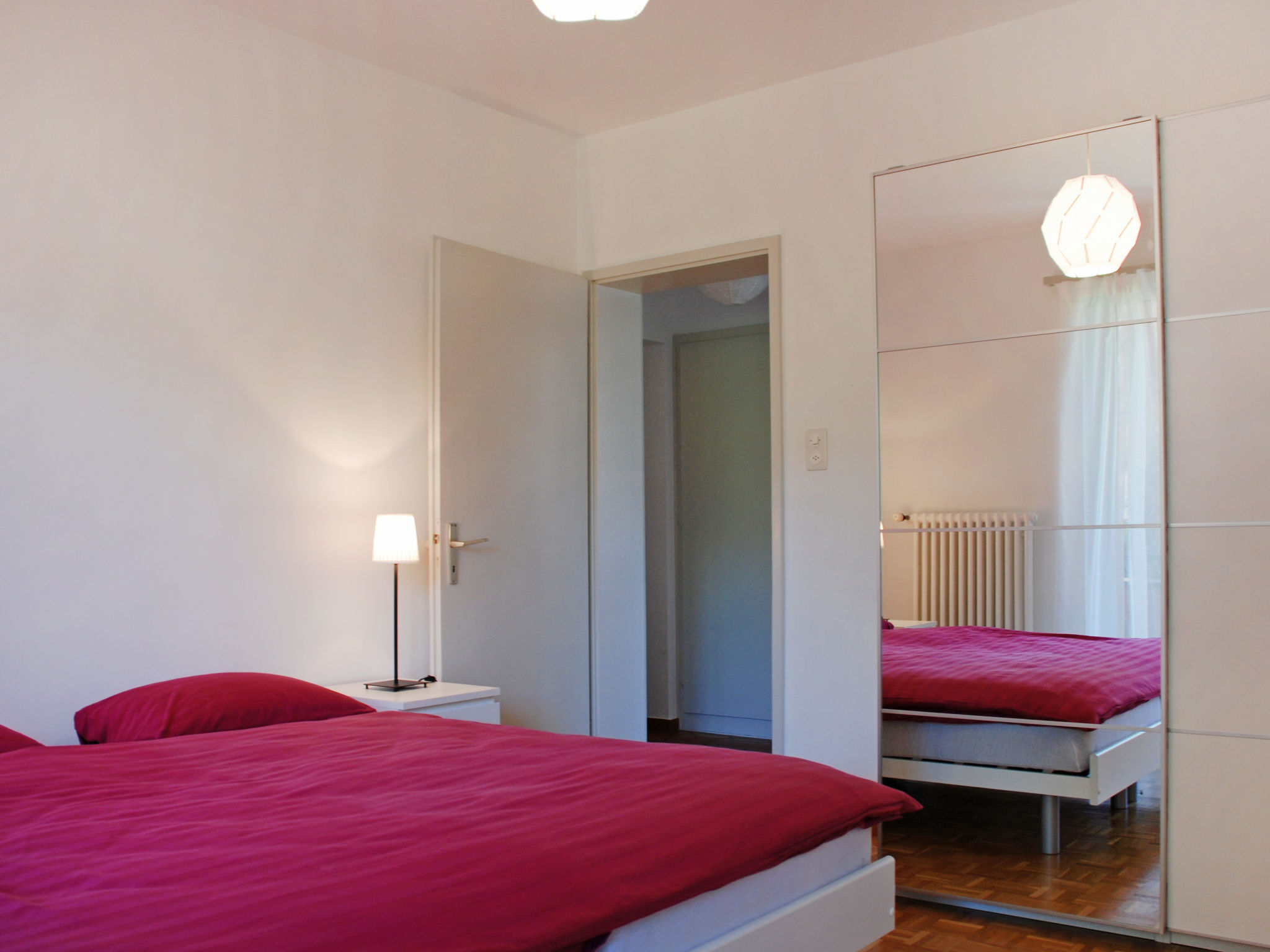 "Large Suite", 3-Zimmer-Wohnung 80 m2, im erhöhten Erdgeschoss, Westlage. Geräumig und hell, renoviert im Jahre 2019, komfortabel und gemütlich eingerichtet: Wohn-/Esszimmer mit 1 Diwanbett (140 cm, Länge 200 cm), offenem Kamin, Kabel-TV, Flachbildschirm und Radio. Ausgang zum Balkon, zum Gartensitzplatz. 1 Doppelzimmer mit 2 Betten und 1 Doppelbett (2 x 90 cm, Länge 200 cm). 1 Zimmer mit 2 Betten (90 cm, Länge 200 cm). Küche (Backofen, Geschirrspüler, 4 Glaskeramikherd Platten, Tiefkühler, elektrische Kaffeemaschine, Kapseln für die Kaffeemaschine (Nespresso) extra). Bad/WC, sep. WC. Heizung. Balkon, Westlage, kleiner Gartensitzplatz. Balkonmöbel. Zur Verfügung: Bügeleisen, Kinderhochstuhl, Babybett bis 2 Jahre (extra), Haartrockner. Internet (Wireless LAN, gratis). Bitte beachten: Nichtraucher-Unterkunft. Maximal 1 Haustier/Hund erlaubt.