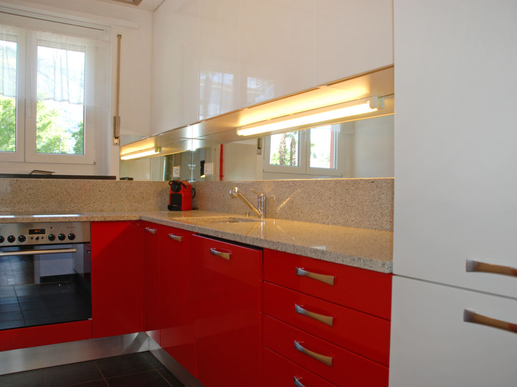 "Large Suite", 3-Zimmer-Wohnung 80 m2, im erhöhten Erdgeschoss, Westlage. Geräumig und hell, renoviert im Jahre 2019, komfortabel und gemütlich eingerichtet: Wohn-/Esszimmer mit 1 Diwanbett (140 cm, Länge 200 cm), offenem Kamin, Kabel-TV, Flachbildschirm und Radio. Ausgang zum Balkon, zum Gartensitzplatz. 1 Doppelzimmer mit 2 Betten und 1 Doppelbett (2 x 90 cm, Länge 200 cm). 1 Zimmer mit 2 Betten (90 cm, Länge 200 cm). Küche (Backofen, Geschirrspüler, 4 Glaskeramikherd Platten, Tiefkühler, elektrische Kaffeemaschine, Kapseln für die Kaffeemaschine (Nespresso) extra). Bad/WC, sep. WC. Heizung. Balkon, Westlage, kleiner Gartensitzplatz. Balkonmöbel. Zur Verfügung: Bügeleisen, Kinderhochstuhl, Babybett bis 2 Jahre (extra), Haartrockner. Internet (Wireless LAN, gratis). Bitte beachten: Nichtraucher-Unterkunft. Maximal 1 Haustier/Hund erlaubt.