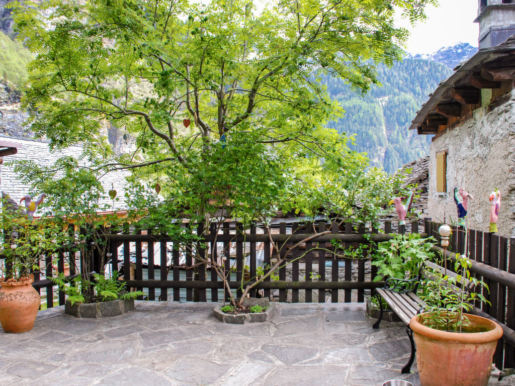 "Rustico Refugio Paradiso Montana", 4-Zimmer-Haus 65 m2 auf 2 Stockwerken, Südlage. Teilweise abgeschrägt, romantisch und mit viel Holz eingerichtet: offenes Wohn-/Esszimmer, Deckenhöhe 140 - 180 cm, niedrige Türrahmen, Höhe 175 cm mit offenem Kamin, Schwedenofen, Esstisch und Sat-TV (Flachbildschirm), Radio und Holzofen. Ausgang zur Terrasse, zum Gartensitzplatz. Kleine, offene Küche (4 Kochplatten). Dusche/WC. Obergeschoss: (Aussentreppe) 1 Doppelzimmer mit 1 Doppelbett (2 x 90 cm, Länge 200 cm). 1 Zimmer mit 2 Betten (90 cm, Länge 200 cm). 1 Zimmer mit 1 x 2 Etagenbetten (90 cm, Länge 200 cm). Gartensitzplatz teilweise überdacht. Terrassenmöbel, Liegestühle (2), Sitzplatz, Abstellkammer. Schöne Sicht auf die Berge, die Landschaft und die Ortschaft. Zur Verfügung: Babybett bis 2 Jahre (extra). Bitte beachten: Nichtraucher-Haus. Maximal 2 Haustiere/Hunde erlaubt. TV nur DE, CH. Feuerlöscher.