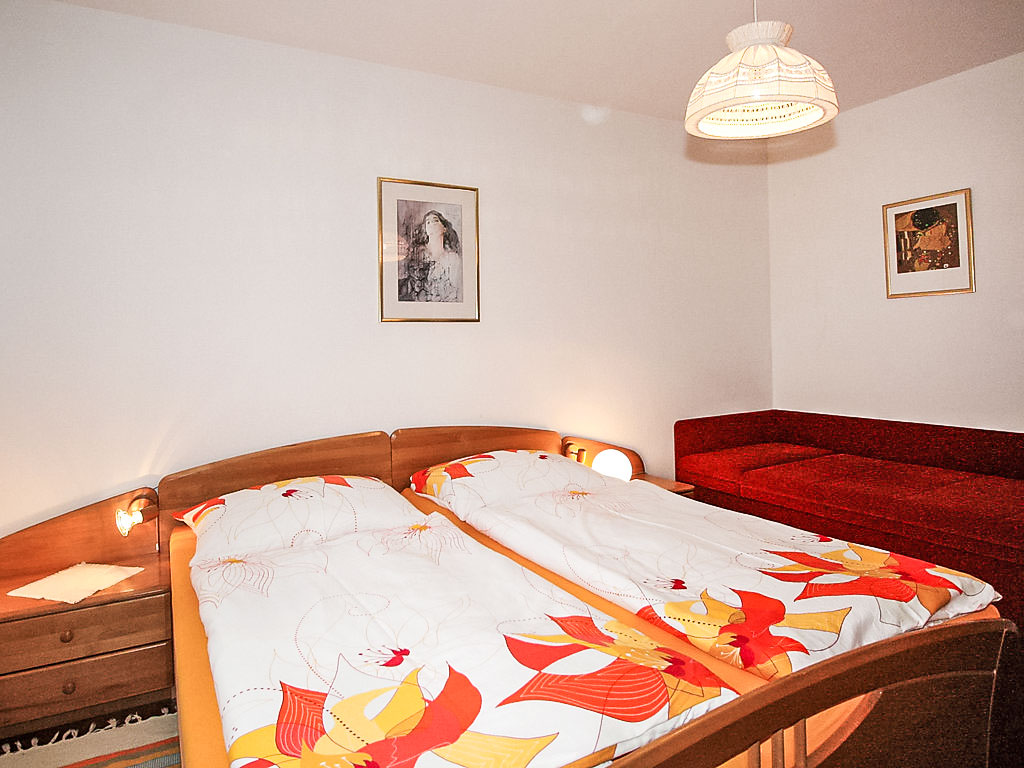2-Zimmer-Wohnung 52 m2. Objekt geeignet für 3 Erwachsene + 2 Kinder. Komfortabel und gemütlich eingerichtet: 1 Zimmer mit 1 Bett und 1 Doppelbett. Wohn-/Schlafzimmer mit 1 Doppeldiwanbett, Esstisch und Sat-TV. Offene Küche (4 Kochplatten, Backofen, Mikrowelle). Dusche/WC, sep. WC. Balkon, Südlage. Balkonmöbel. Schöne Sicht auf die Berge. Zur Verfügung: Telefon. Internet (Wireless LAN, gratis). 1 Haustier/Hund erlaubt.