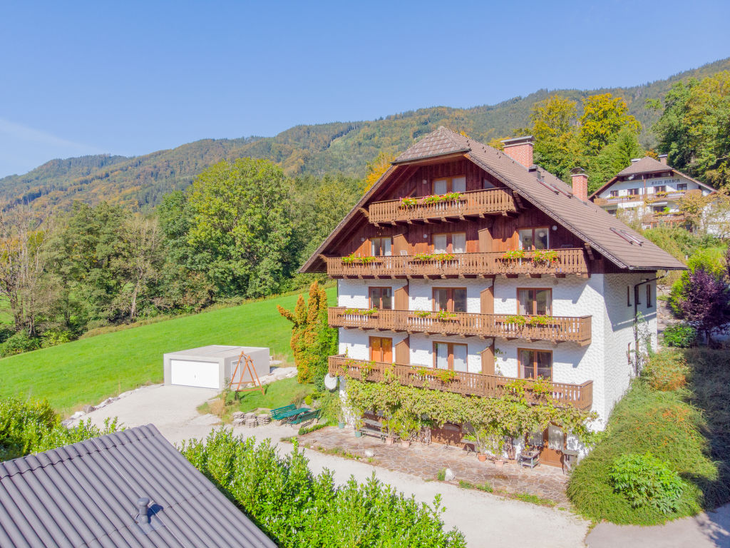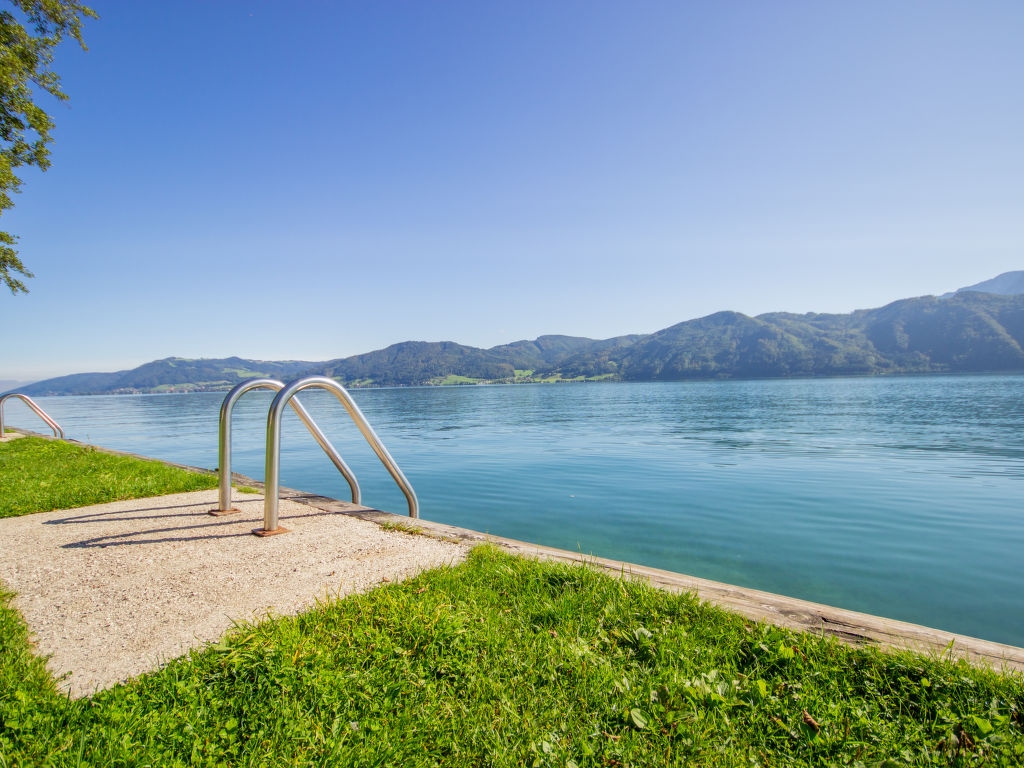 Eingerahmt von Mondsee- und Attersee liegt die kleine, gemütliche Ferienanlage "Sterngut". Ruhige Lage am Hang, 800 m vom See. Zur Mitbenutzung: grosser, gepflegter Terrassengarten, 2'000 m2 mit Liegewiese, Naturteich. Naturbadeteich, Tischtennis, Terrasse, Gartenmöbel, Grill, Kinderspielplatz. In der Anlage: Aufenthaltsraum, Internetzugang, Sauna (extra). Massage (extra). Solarium (extra). Einstellraum für Fahrräder, Skiraum, Waschmaschine (zur Mitbenutzung, extra). Brötchenservice und Getränkeservice. Steile Zufahrt. Parkplatz beim Haus. Supermarkt 1.2 km, Restaurant 180 m, Bäckerei 1.2 km, Fahrradverleih 3 km, Zentrum zu Fuss in 15 Minuten erreichbar, Tauchzentrum 6 km, Freibad 1 km, Strandbad 1.2 km. Tennis 900 m, Wanderwege ab Haus 100 m, Radweg 200 m. Nahe gelegene Sehenswürdigkeiten: Gustav Klimt Zentrum Schörfling 24 km, Stadt Salzburg 42 km, Hallstatt 45 km. Bekannte Seen in der Umgebung sind gut erreichbar: Attersee 1.2 km, Mondsee 2 km. Wandergebiete: Burggrabenklamm 3 km, Eisenaualm 6 km, Irrsee 21 km. Bitte beachten: In diesem Haus sind weitere Ferienwohnungen mietbar. Alle Häuser/Wohnungen sind individuell eingerichtet.