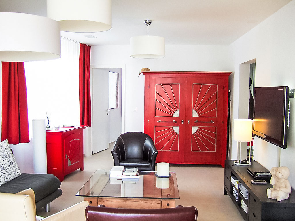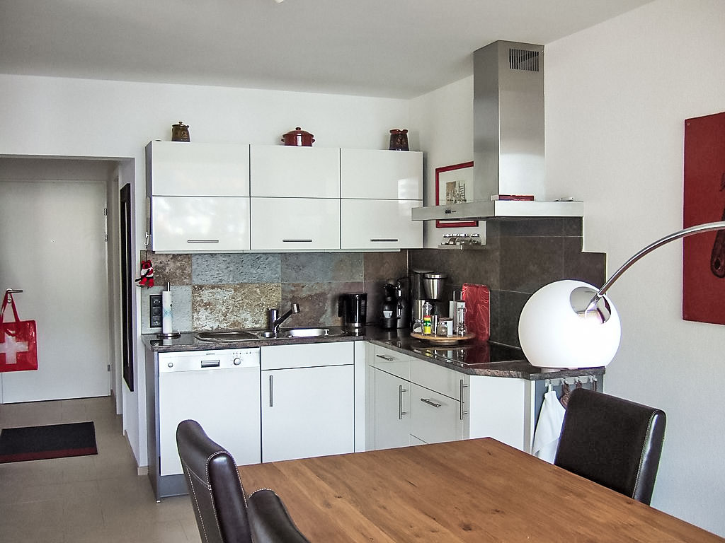 "Wohnung 21", 2-Zimmer-Wohnung 75 m2 im 2. Stock, Südwestlage. Geräumig und hell, sehr schön und luxuriös eingerichtet: Wohn-/Esszimmer mit 1 Diwanbett und Kabel-TV (Flachbildschirm), Radio, CD, DVD und Ventilator. Ausgang zum Balkon. 1 Zimmer mit 1 Doppelbett (2 x 90 cm). Offene Küche (Backofen, Geschirrspüler, 4 Glaskeramikherd Platten, Mikrowelle, Tiefkühler, elektrische Kaffeemaschine, Kapseln für die Kaffeemaschine (Nespresso) extra). Dusche/WC, Doppelwaschbecken. Heizung. Natursteinböden. Balkon 15 m2, Südlage und Westlage. Balkonmöbel. Sicht auf die Berge und die Ortschaft. Zur Verfügung: Internet (Wireless LAN, gratis). Garage Nr. 14. Bitte beachten: Wohnung auf Strassenseite. Nichtraucher-Unterkunft.
