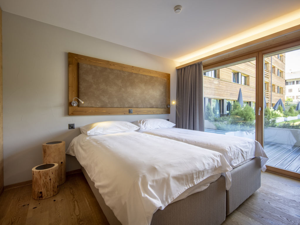 "SWISSPEAK Resorts 3 pièces terrace", 3-Zimmer-Wohnung 49 m2. Geschmackvoll und gemütlich eingerichtet: Wohn-/Esszimmer mit 1 Doppeldiwanbett (160 cm, Länge 200 cm), Esstisch, Digital-TV, Internationale TV-Sender und Flachbildschirm. Ausgang zur Terrasse. 1 Zimmer mit 1 Doppelbett (2 x 90 cm, Länge 200 cm). 1 Zimmer mit 1 x 2 Etagenbetten (90 cm, Länge 200 cm). Offene Küche (Backofen, Geschirrspüler, 4 Glaskeramikherd Platten, elektrische Kaffeemaschine, Kapseln für die Kaffeemaschine (Nespresso) extra, Fondue Set (Chinoise, Käse)). Dusche/WC, sep. WC. Fussbodenheizung. Parkettböden. Terrasse 18 m2. Terrassenmöbel. Zur Verfügung: Haartrockner. Internet (Wireless LAN, gratis). Bitte beachten: Nichtraucher-Haus. 1 Haustier/Hund erlaubt. Rauchmelder. Beim Mietobjekt handelt es sich um ein Typenhaus bzw. Um eine Typenwohnung. Ein Fondue Set (Fleisch oder Käse) sowie ein Raclette Ofen kann an der Rezeption gegen ein Depot ausgeliehen werden.