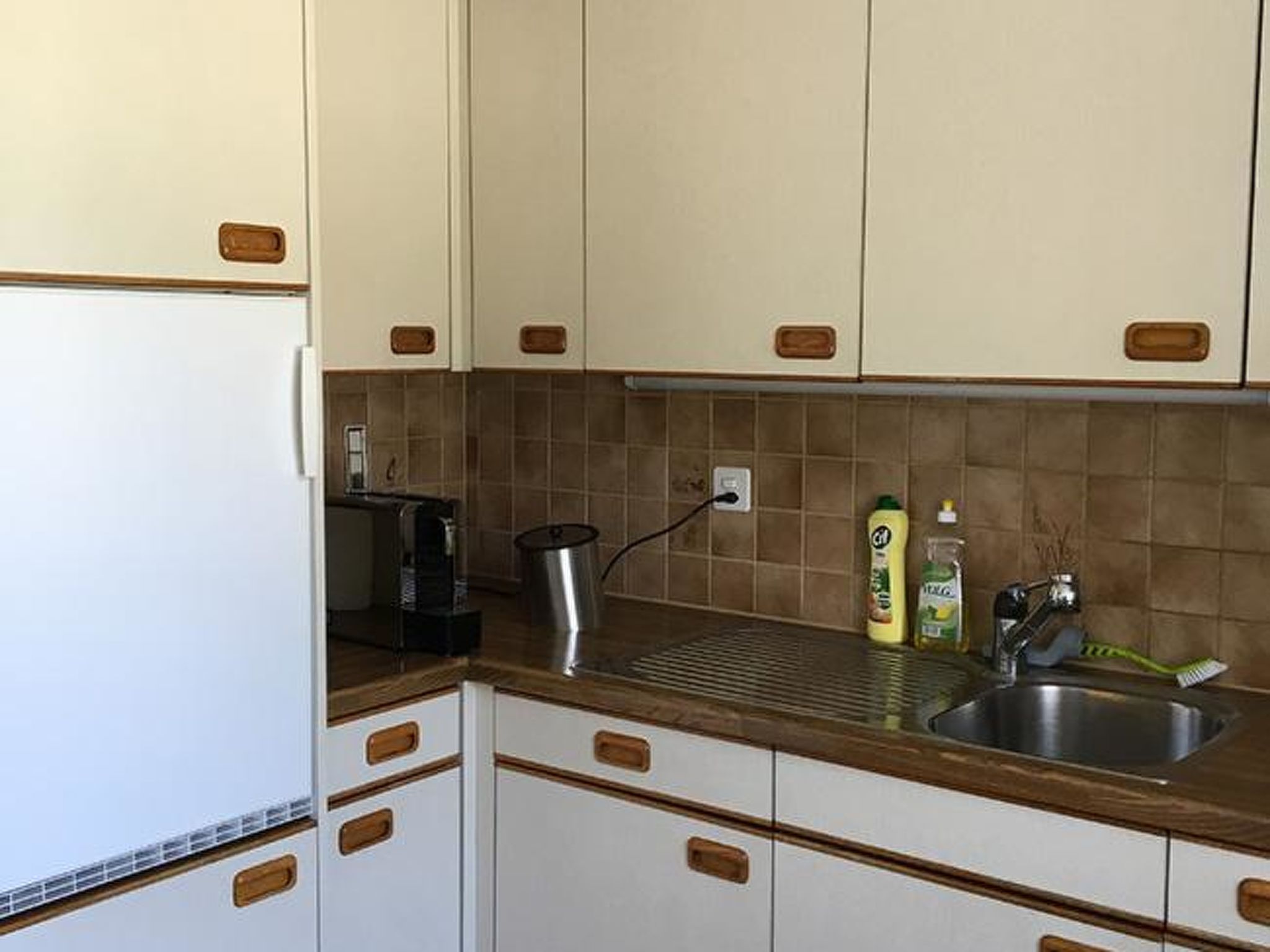 3-Zimmerwohnung Hochparterre: 1x 2-Bett-Zimmer, Wohnküche, Mini-Lounge, Dusche-WC.