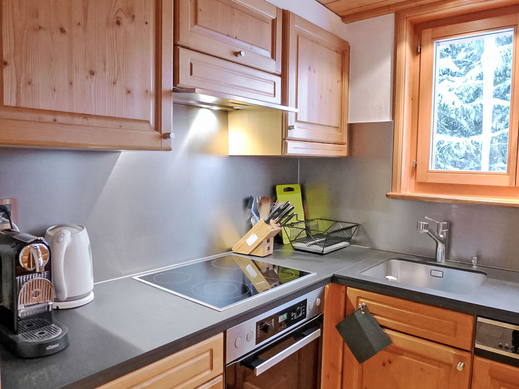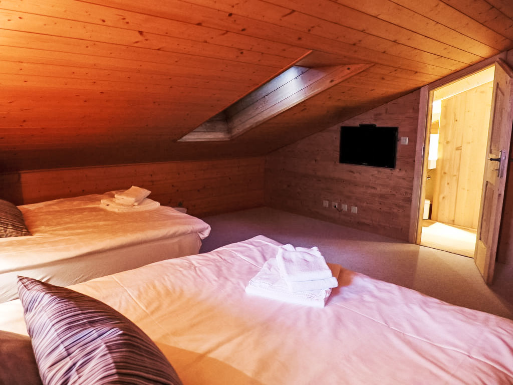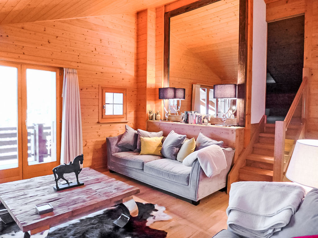 "Le Faucon 8", 4-Zimmer-Attikawohnung 130 m2 auf 3 Stockwerken im 3. Stock. Geräumig, teilweise renoviert im Jahre 2017, komfortabel und schön eingerichtet: Wohn-/Esszimmer mit offenem Kamin, Esstisch und TV (Flachbildschirm). Ausgang zum Balkon. 1 Zimmer mit 2 Betten und Dusche/WC. Offene Küche (Backofen, Geschirrspüler, 4 Glaskeramikherd Platten, Mikrowelle, elektrische Kaffeemaschine, Kapseln für die Kaffeemaschine (Nespresso) extra, Fondue Set (Käse)) mit Bar. Unteres Geschoss: 1 Doppelzimmer mit 1 franz. Bett (2 x 90 cm), Bad/Dusche/WC, Doppelwaschbecken und TV (Flachbildschirm). Ausgang zum Balkon. Obergeschoss: 1 abgeschrägtes Zimmer 20 m2 mit 2 Betten (140 cm, Länge 200 cm), Dusche/WC und TV (Flachbildschirm). 2 Balkone, Westlage. Terrassenmöbel. Panoramasicht auf die Berge und die Landschaft. Zur Verfügung: Internet (Wireless LAN, gratis). Parkplatz (überdacht), Garage Nr. 2/8, Höhe 220 cm, Breite 400 cm.