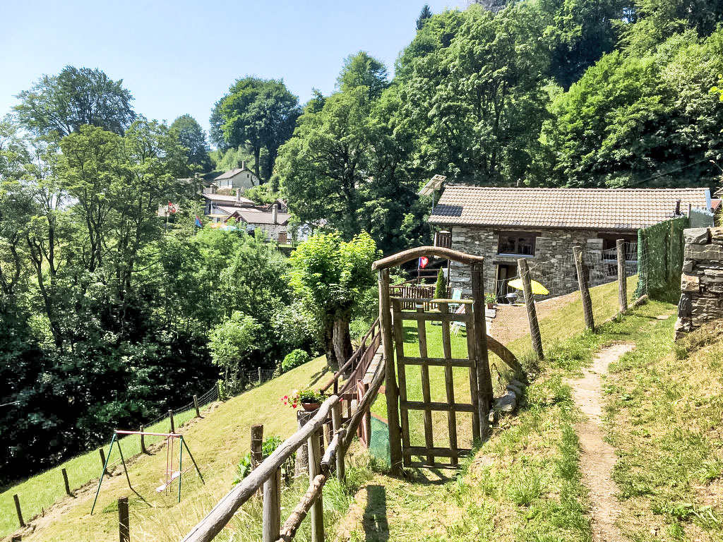 Purèra(Monti di Ronco) 8 km von Ronco sopra Ascona: Kleines, gemütliches Rustico "Al Tecion del Nino", 1'040 m.ü.M., renoviert im Jahre 2015, umgeben von Bäumen, Wiesen und Feldern. Im Weiler Purèra mit 6 Häusern, ruhige, sonnige, erhöhte Lage auf einem Hügel, 50 m vom Waldrand, im Grünen, Richtung Nordosten. Zur Alleinbenutzung: naturbelassenes Grundstück, Wiese. Zufahrt bis 400 m zum Haus (Bergstrasse). 400 m Fussweg bis zum Haus. Parkplatz, öffentliche Parkplätze 400 m auf der Strasse. Einkaufsgeschäft 10 km, Lebensmittelgeschäft 7.5 km, Supermarkt 10 km, Einkaufszentrum 10 km, Restaurant 1.5 km, Bahnstation "Locarno SBB-CFF-FFS" 12.5 km. Golfplatz (18 Loch) 11.6 km, Minigolf 12 km, Wanderwege ab Haus 10 m. Nahe gelegene Sehenswürdigkeiten: Cardada, Monte Verita, Ronco sopra Ascona, Isole di Brissago, Locarno, Ascona, Mercato: Cannobio, Intra, Luino IT, Castelli di Bellinzona (UNESCO). Bekannte Skigebiete sind gut erreichbar: Airolo, Bosco Gurin, Cari, Campora, Campo Blenio. Bekannte Seen in der Umgebung sind gut erreichbar: Lago Maggiore, Lago di Lugano, Lago di Como. Wandergebiete: Monte Bré, Cardada-Cimetta Centovalli, Valle Verzasca, Valle Onsernone, Valle di Blenio, Leventina. Bitte beachten: Fahrzeug empfohlen. Geeignet für Familien. Objekt geeignet für 2 Erwachsene + 2 Kinder. Tiere in der Umgebung. , Hinweis: Die Stromversorgung erfolgt über ein Solarpanel. Herd und Kühlschrank werden mit Gas betrieben. Elektrogeräte über 250W können nicht betrieben werden. Wichtiger Hinweis: Ideales Ferienhaus für Naturliebhaber, ruhesuchende und TOP für Familien mit Kinder.