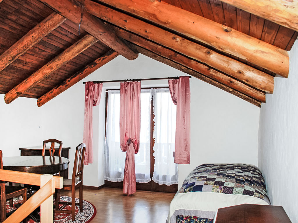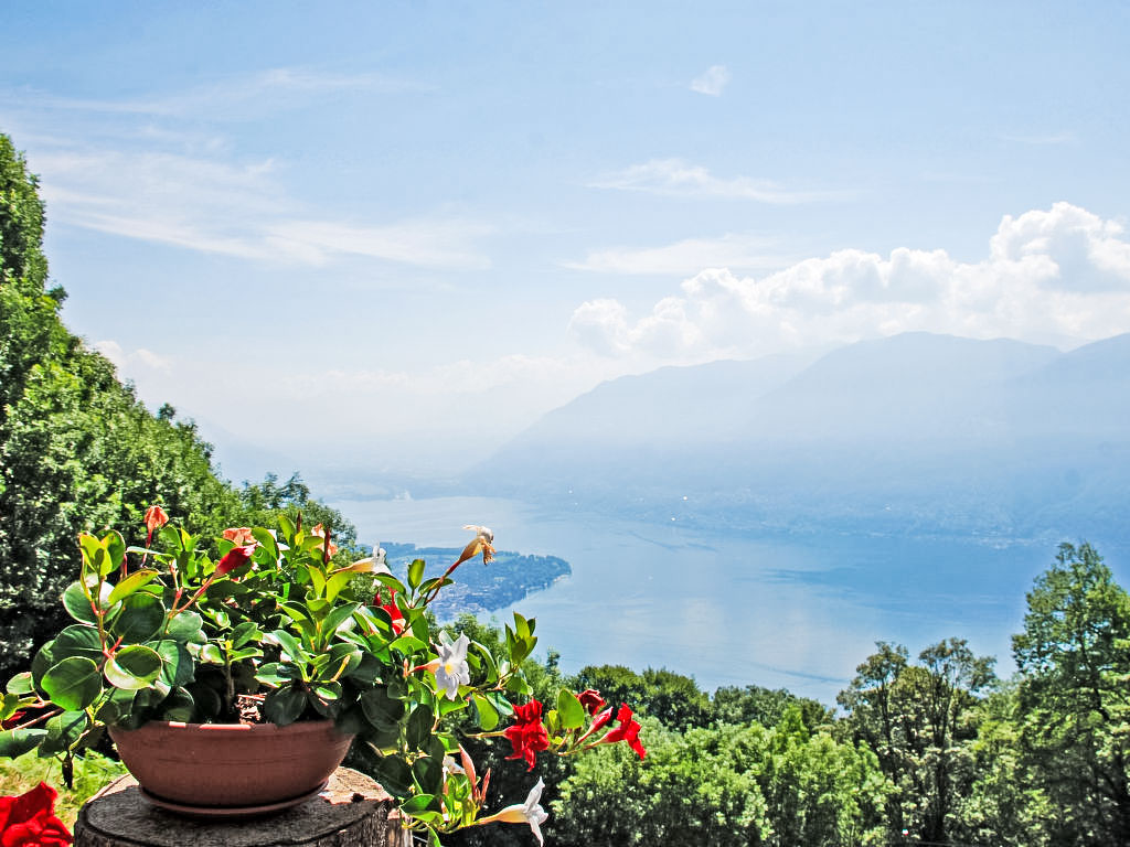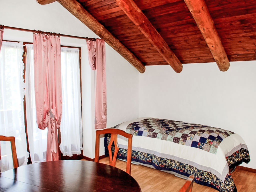 3-Zimmer-Chalet auf 2 Stockwerken, Nordostlage. Objekt geeignet für 2 Erwachsene + 2 Kinder. Teilweise abgeschrägt, teilweise renoviert im Jahre 2015, komfortabel und gemütlich eingerichtet: Wohnküche (4 Kochplatten, Backofen) mit Essecke. Obergeschoss: offenes Wohn-/Schlafzimmer mit 2 Ausziehbetten (2 Pers. 2 x 90 cm, Länge 200 cm), Esstisch. 1 Doppelzimmer mit 1 franz. Bett (1 x 180 cm, Länge 200 cm). Dusche/WC. G-Heizung. Grosser Gartensitzplatz. Terrassenmöbel, Gartengrill, Liegestühle (2). Herrliche Panoramasicht auf den See, die Landschaft und Magadino-Ebene. Bitte beachten: Nichtraucher-Haus.