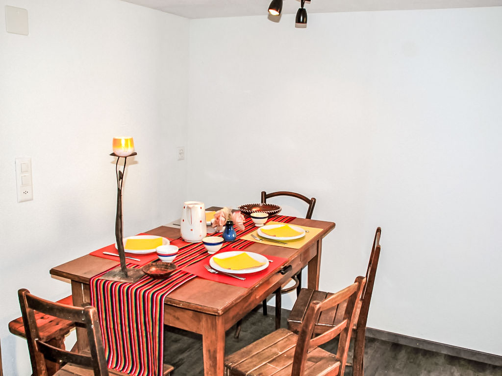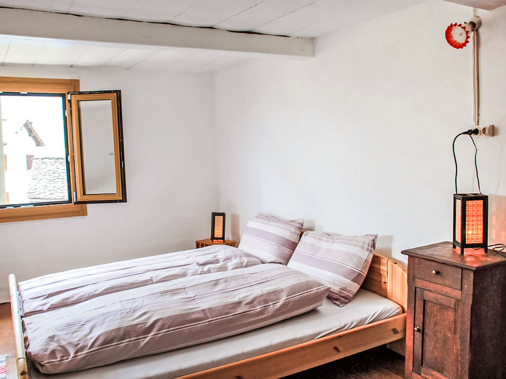 "Peppa", 3-Zimmer-Wohnung im 1. Stock. Geräumig, teilweise renoviert im Jahre 2012, komfortabel und gemütlich eingerichtet: offenes grosses Wohnzimmer, Deckenhöhe 190 cm mit TV, Flachbildschirm, Radio, CD und E-Heizung. Offene Küche (Backofen, Geschirrspüler, 3 Induktionskochplatten, Racletteofen, Fondue Set (Chinoise)). Obergeschoss: (geländerlose Treppe) 1 Doppelzimmer mit 1 franz. Bett (1 x 160 cm, Länge 200 cm). Ausgang zum Balkon. 1 Doppelzimmer mit 1 Doppelbett (2 x 90 cm, Länge 200 cm). Dusche/WC. E-Heizung. Holzböden. Kleiner Balkon. Balkonmöbel. Zur Verfügung: Kinderhochstuhl, Babybett bis 2 Jahre (extra). Internet (Wireless LAN, gratis). Bitte beachten: geeignet für Familien. Nichtraucher-Haus. 1 Haustier/Hund erlaubt.