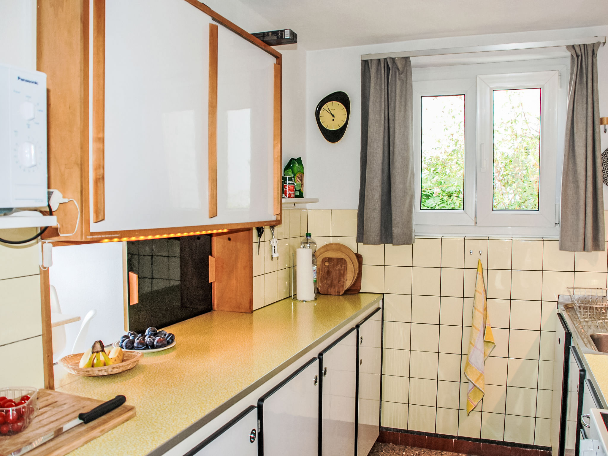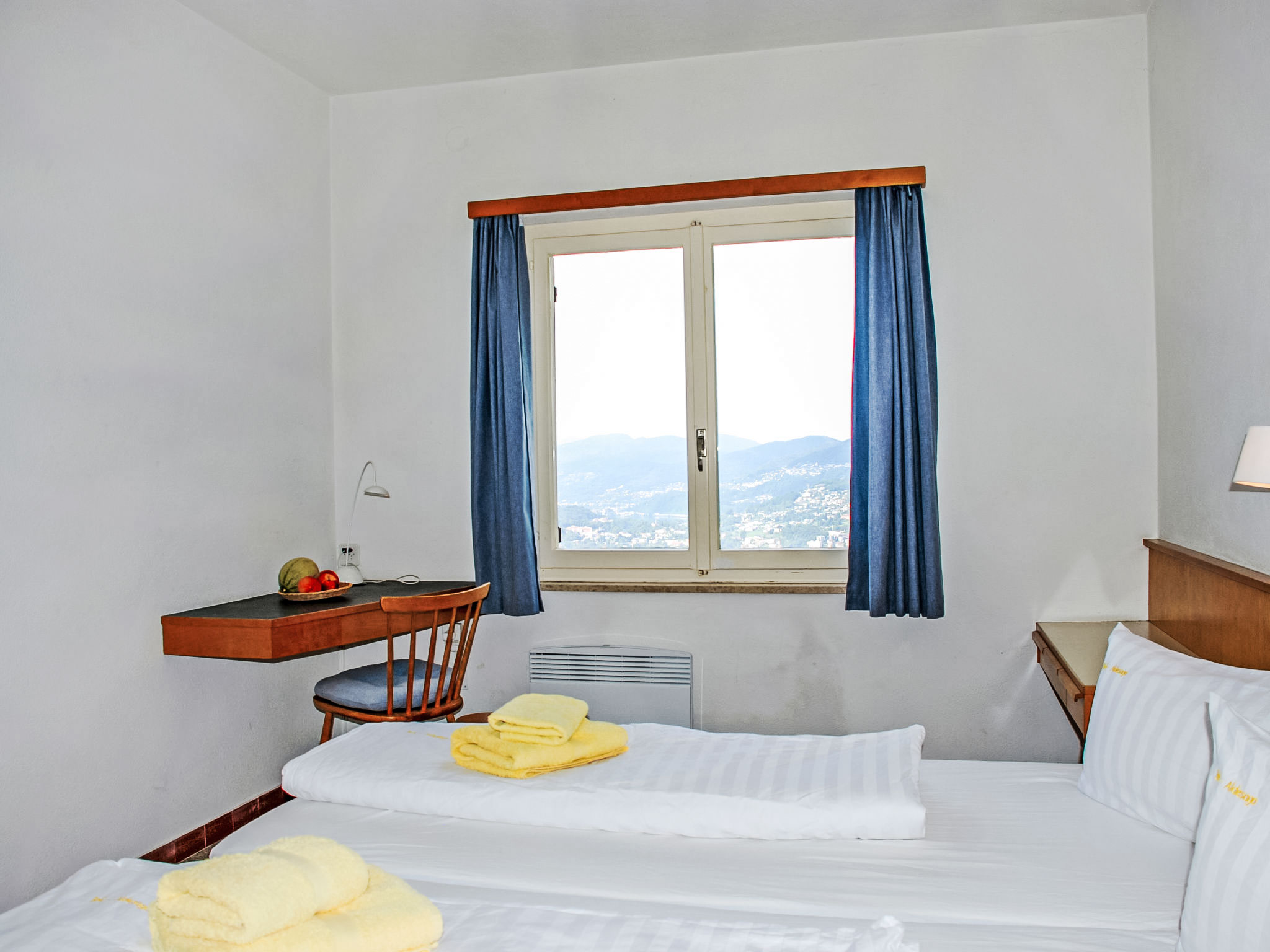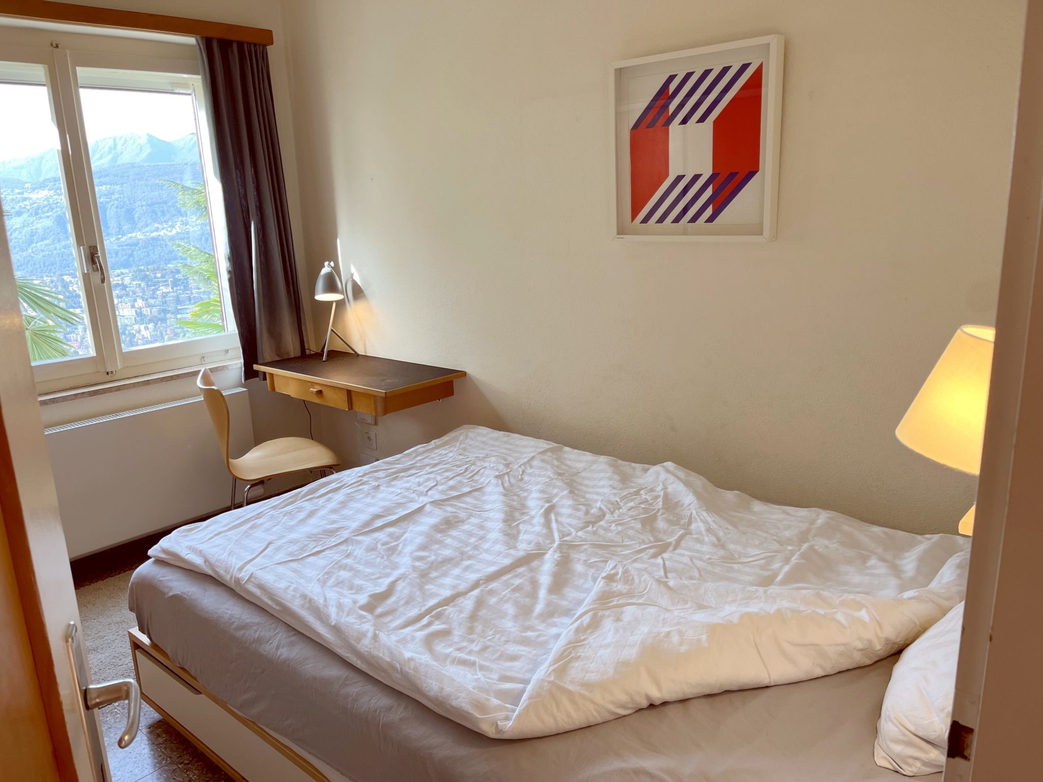 "Nido di Rondine", 4-Zimmer-Haus 85 m2 auf 3 Stockwerken. Geräumig und hell, komfortabel und gemütlich eingerichtet: Wohn-/Esszimmer mit Panoramafenster mit Esstisch und Sat-TV (Flachbildschirm), Radio und E-Heizung. Kleine Küche (Backofen, Geschirrspüler, 4 Glaskeramikherd Platten, Mikrowelle, Tiefkühler, elektrische Kaffeemaschine, Kapseln für die Kaffeemaschine (Nespresso) extra) mit Durchreiche. Dusche/WC. Fussbodenheizung. Unteres Geschoss: 1 Doppelzimmer mit 1 Doppelbett (2 x 90 cm, Länge 200 cm). 1 Zimmer mit 1 franz. Bett (140 cm, Länge 200 cm). Obergeschoss: 1 kleines Kinderzimmer mit 1 x 2 Etagenbetten (90 cm, Länge 190 cm). Grosse Terrasse teilweise überdacht, Südlage und Westlage. Terrassenmöbel, Gartengrill (mobil), Liegestühle (5). Herrliche Panoramasicht auf den See, die Berge, die Landschaft und die Stadt. Zur Verfügung: Waschmaschine, Bügeleisen, Kinderhochstuhl, Babybett bis 2 Jahre (extra). Internet (Wireless LAN, gratis). Parkplatz beim Haus. Bitte beachten: Nichtraucher-Haus. Maximal 1 kleines Haustier/Hund erlaubt. Rauchmelder, Feuerlöscher.