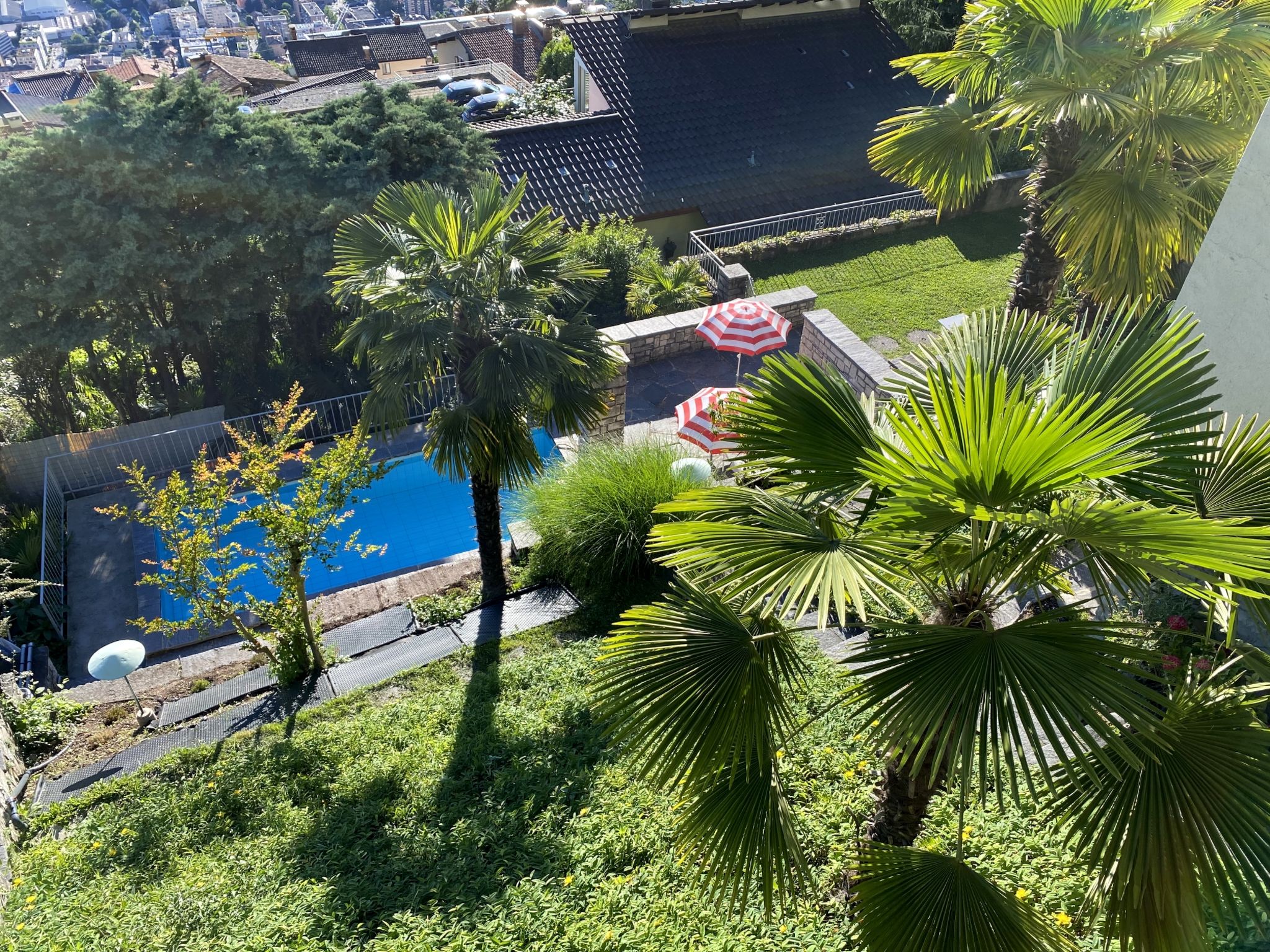 Aldesago 6 km von Lugano Centro: Gemütliches Einfamilienhaus "Nido di Rondine", 650 m.ü.M., auf 3 Stockwerken, Baujahr 1960, umgeben von Bäumen. Oberhalb von Lugano, ruhige, sonnige, erhöhte Lage am Hang, Richtung Südwesten. Zur Alleinbenutzung: schöner Garten (eingezäunt) Pflanzen und Bäumen, Schwimmbad eckig (6 x 2 m, 120 cm tief, 15.05.-16.10.) mit Innentreppe. Aussendusche. Im Hause: Waschmaschine. Zufahrt bis zum Haus (Bergstrasse). Treppenweg (25 Stufen) bis zum Haus. Parkplatz beim Haus. Einkaufsgeschäft 5 km, Bushaltestelle "Linie 12" 5 m. Nahe gelegene Sehenswürdigkeiten: Gandria-Porlezza-Como, Swissminiatur, Melide, Mercato Como, Ponte Tresa, Luino IT, Outlet Foxtown, Mendrisio. Bekannte Seen in der Umgebung sind gut erreichbar: Lago di Lugano, Lago di Como, Lago Maggiore. Wandergebiete: Monte Bré,Monte Tamaro und Splash+Spa, San Salvatore-Alpe Vicania - Morcote, Sentiero dell'olivo. Bitte beachten: Fahrzeug empfohlen. Geeignet für Familien, Babyausstattung auf Anfrage (extra). ,Achtung - kleine Kinder sollten wegen Gartentreppen und Pool nicht unbeaufsichtigt bleiben!