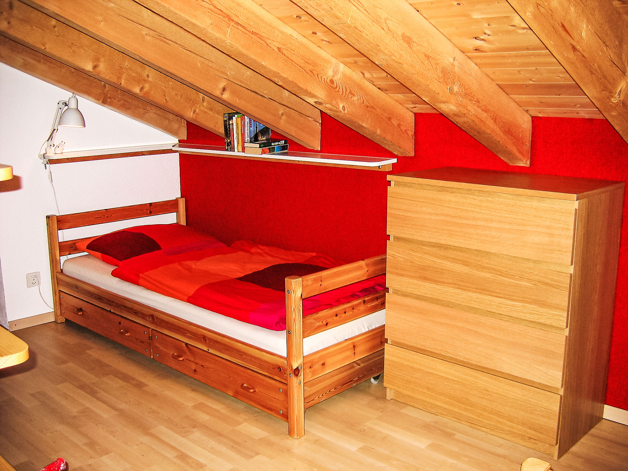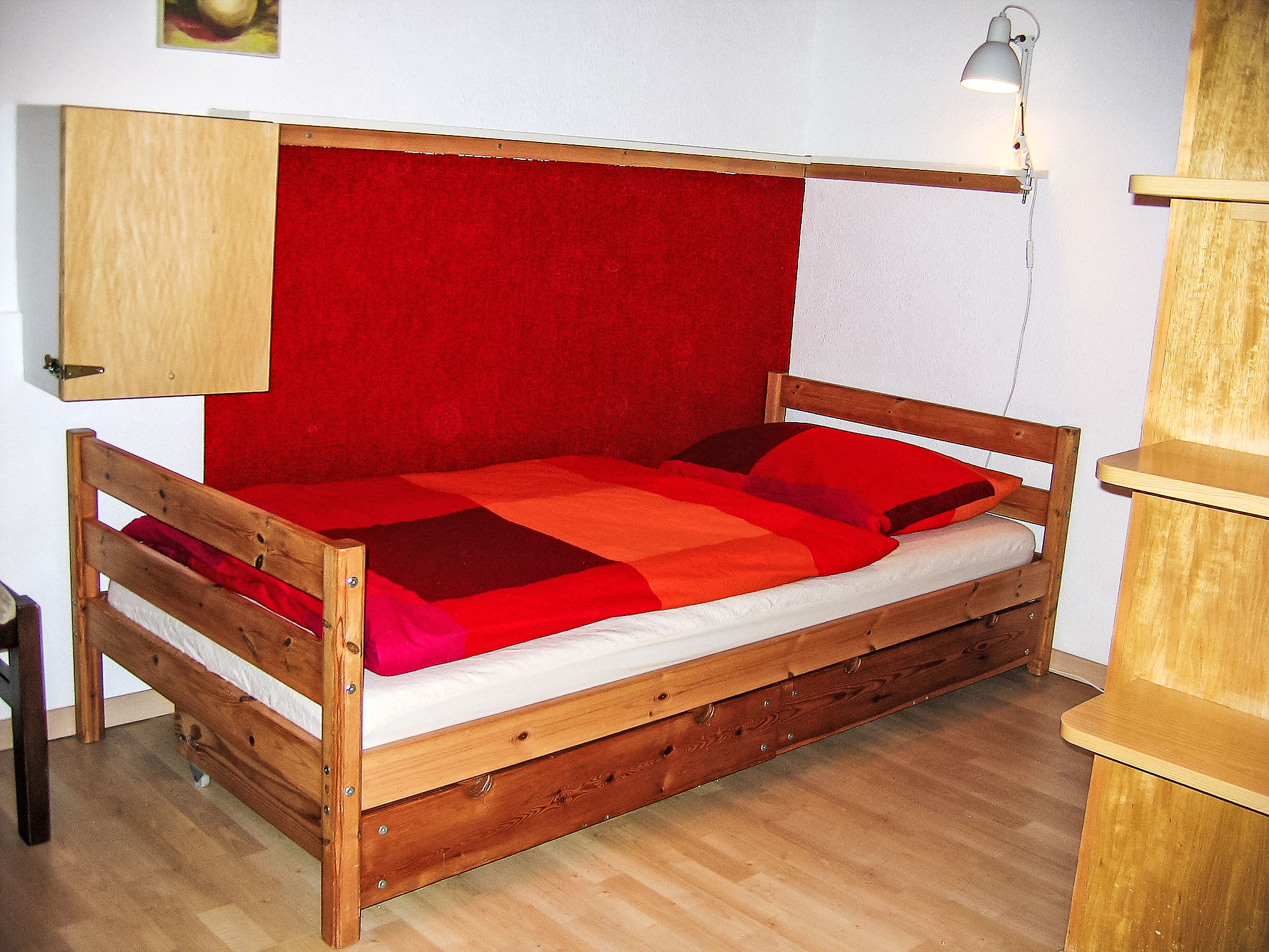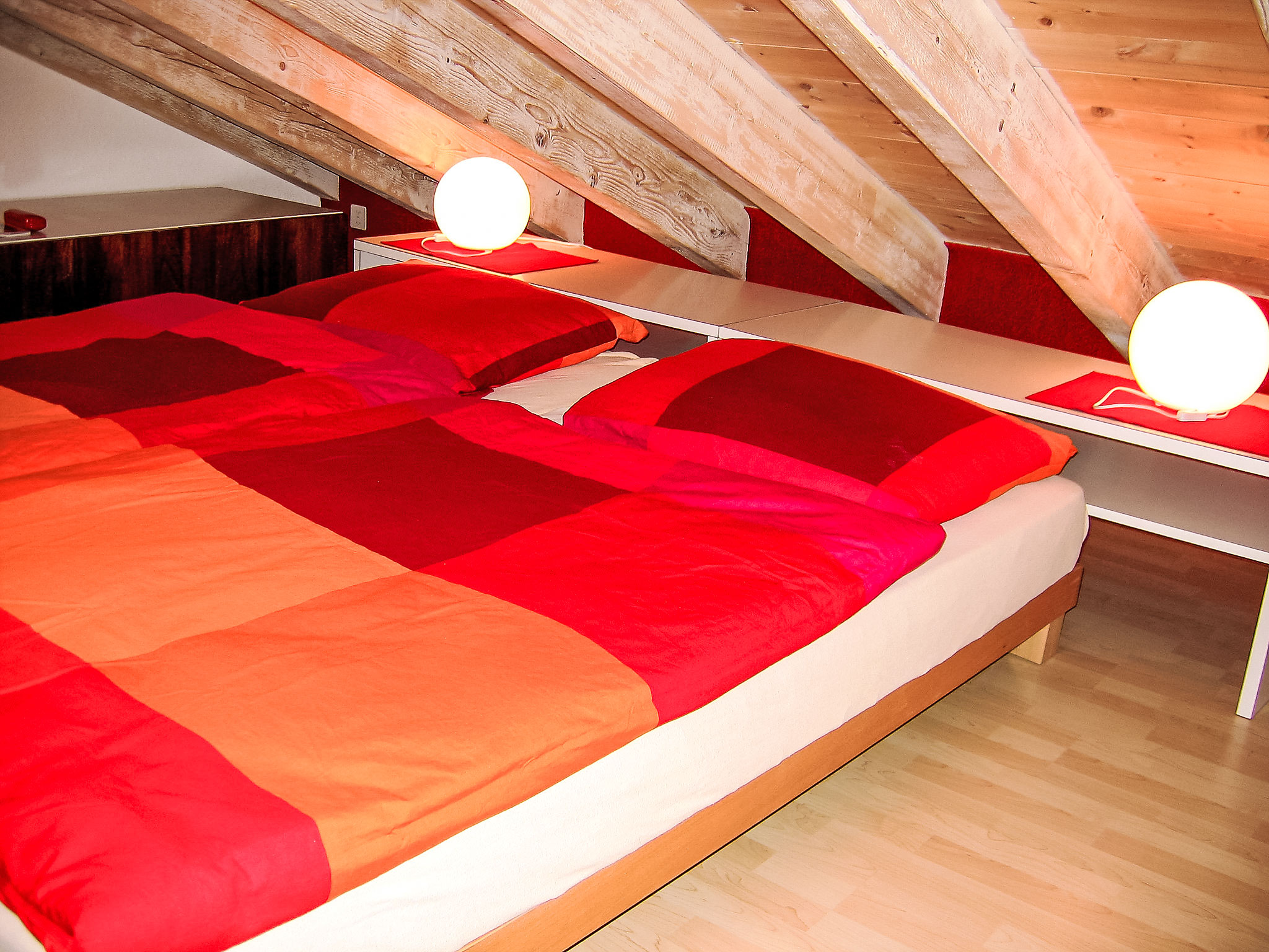 3-Zimmer-Wohnung 62 m2 im 4. Stock. Komfortabel und gemütlich eingerichtet: Wohn-/Esszimmer mit 1 Wandschrankbett und Sat-TV (Flachbildschirm), Radio und DVD. Ausgang zum Balkon. 1 abgeschrägtes Zimmer mit 2 Betten (90 cm, Länge 190 cm). 1 abgeschrägtes Doppelzimmer (90 cm, Länge 200 cm). Offene Küche (Backofen, Geschirrspüler, 4 Glaskeramikherd Platten). Bad/WC. Balkon. Balkonmöbel. Schöne Sicht auf die Berge, die Landschaft und die Ortschaft. Zur Verfügung: Internet (Wireless LAN, gratis). Parkplatz (extra) beim Haus. Bitte beachten: Nichtraucher-Unterkunft. Bitte beachten: Das Doppelzimmer ist nur durch das 1. Schlafzimmer erreichbar. Als Familienwohnung geeignet. Niedrige Türrahmen (ca. 1.60m) zu den Schlafzimmern.