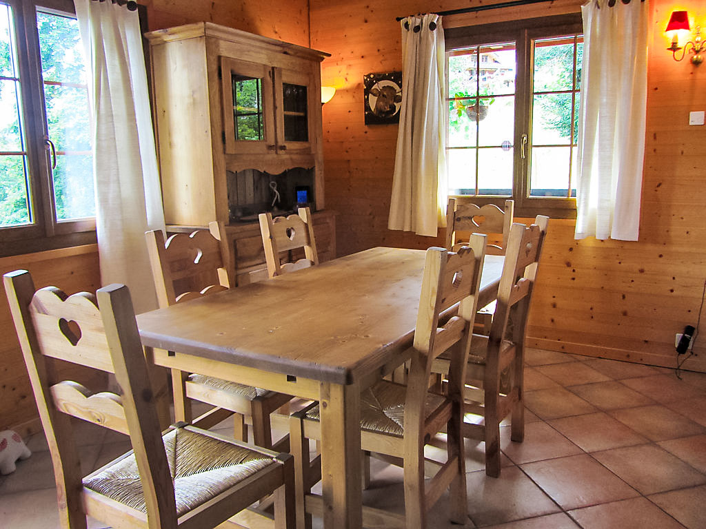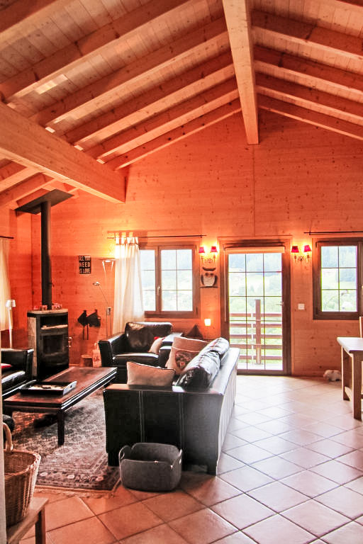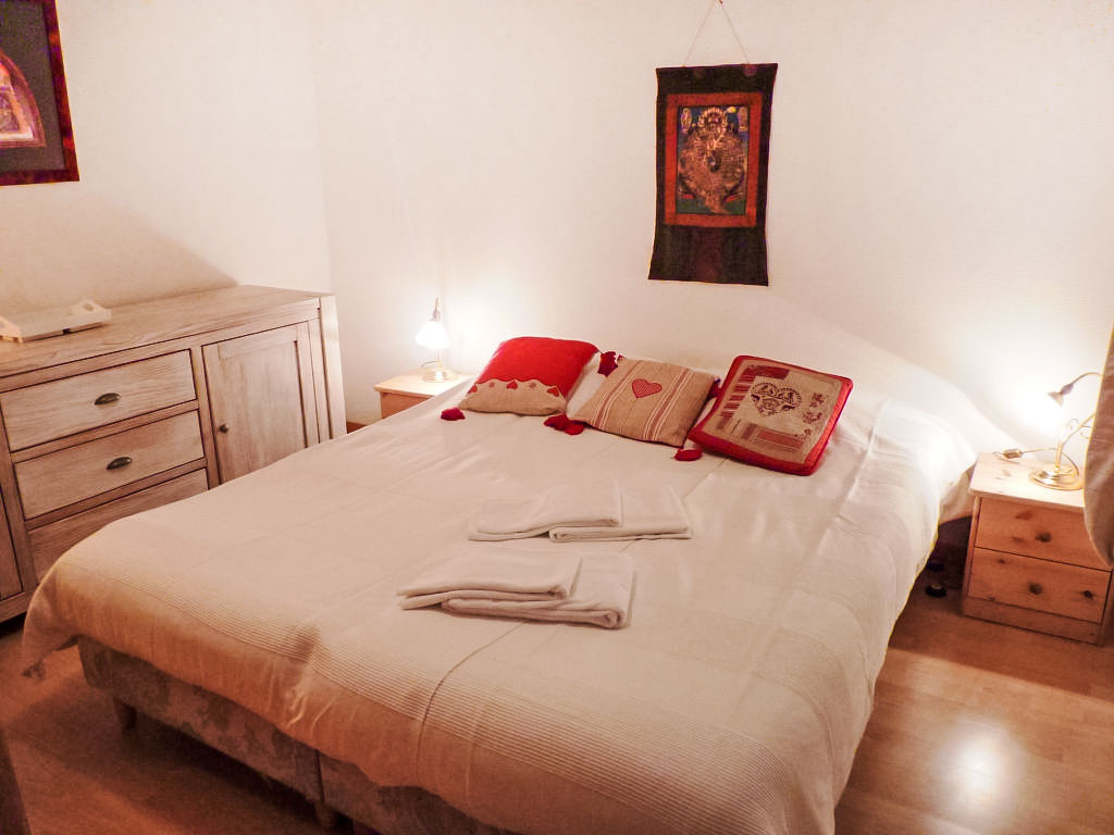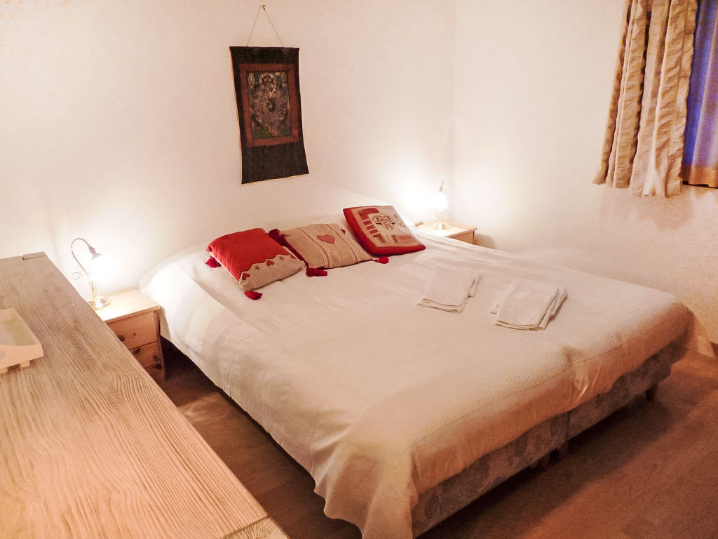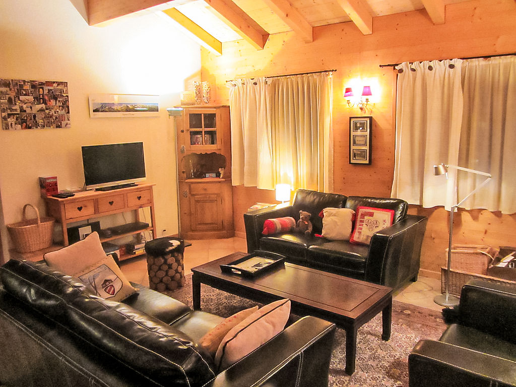 "Mamakylé", 3-Zimmer-Chalet 120 m2, Südlage. Geräumig, schön und modern eingerichtet: Eingang. Grosses Wohn-/Esszimmer mit Sat-TV, Flachbildschirm, Radio, Stereoanlage, DVD und Holzofen. Ausgang zum Balkon, zur Terrasse. 1 Zimmer mit 1 franz. Bett (1 x 160 cm, Länge 200 cm). Offene Küche (Backofen, Geschirrspüler, 4 Glaskeramikherd Platten, elektrische Kaffeemaschine, Racletteofen, Fondue Set (Chinoise, Käse)). Bad/WC. Unteres Geschoss: Eingang. 1 Zimmer mit 2 Betten (80 cm, Länge 200 cm). Dusche/WC. Ölheizung, Bodenheizung. Balkon 8 m2, grosse Terrasse 36 m2. Terrassenmöbel, Gartengrill, Liegestühle. Sehr schöne Panoramasicht auf die Berge und das Tal. Zur Verfügung: Waschmaschine, Wäschetrockner, Bügeleisen, Babybett bis 3 Jahre, Haartrockner. Internet (Wireless LAN, gratis). IPod docking station. Bitte beachten: Nichtraucher-Unterkunft.