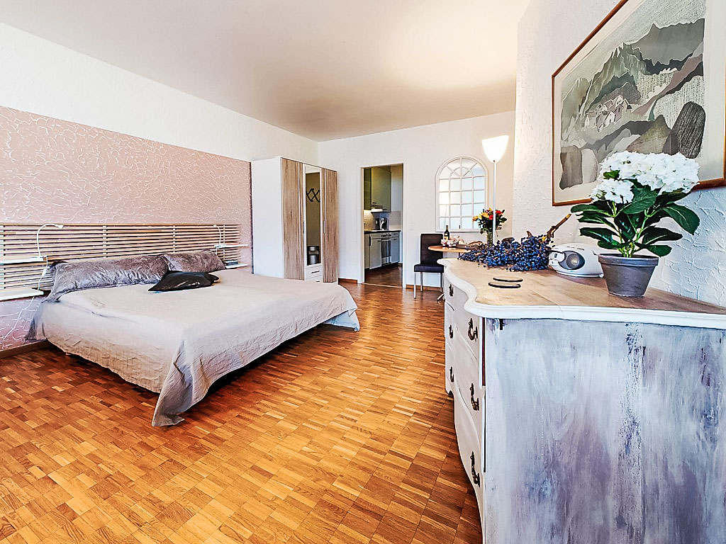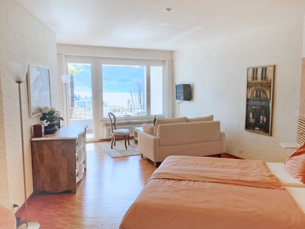 "Double Room Classic", 1-Zimmer-Wohnung 35 m2 im 1. Stock, Südlage. Wohn-/Esszimmer mit 1 Doppelbett, Sat-TV und Radio. Kochnische (Backofen, elektrische Kaffeemaschine, Kapseln für die Kaffeemaschine (Nespresso) extra). Bad/WC. Balkon, Südlage. Schöne Sicht auf den See und die Berge. Zur Verfügung: Internet (Wireless LAN, gratis). Bitte beachten: Nichtraucher-Unterkunft, Nichtraucher-Haus. Maximal 1 Haustier/Hund erlaubt.