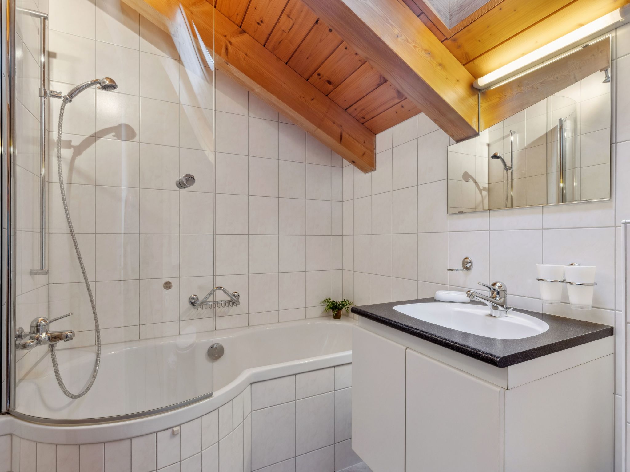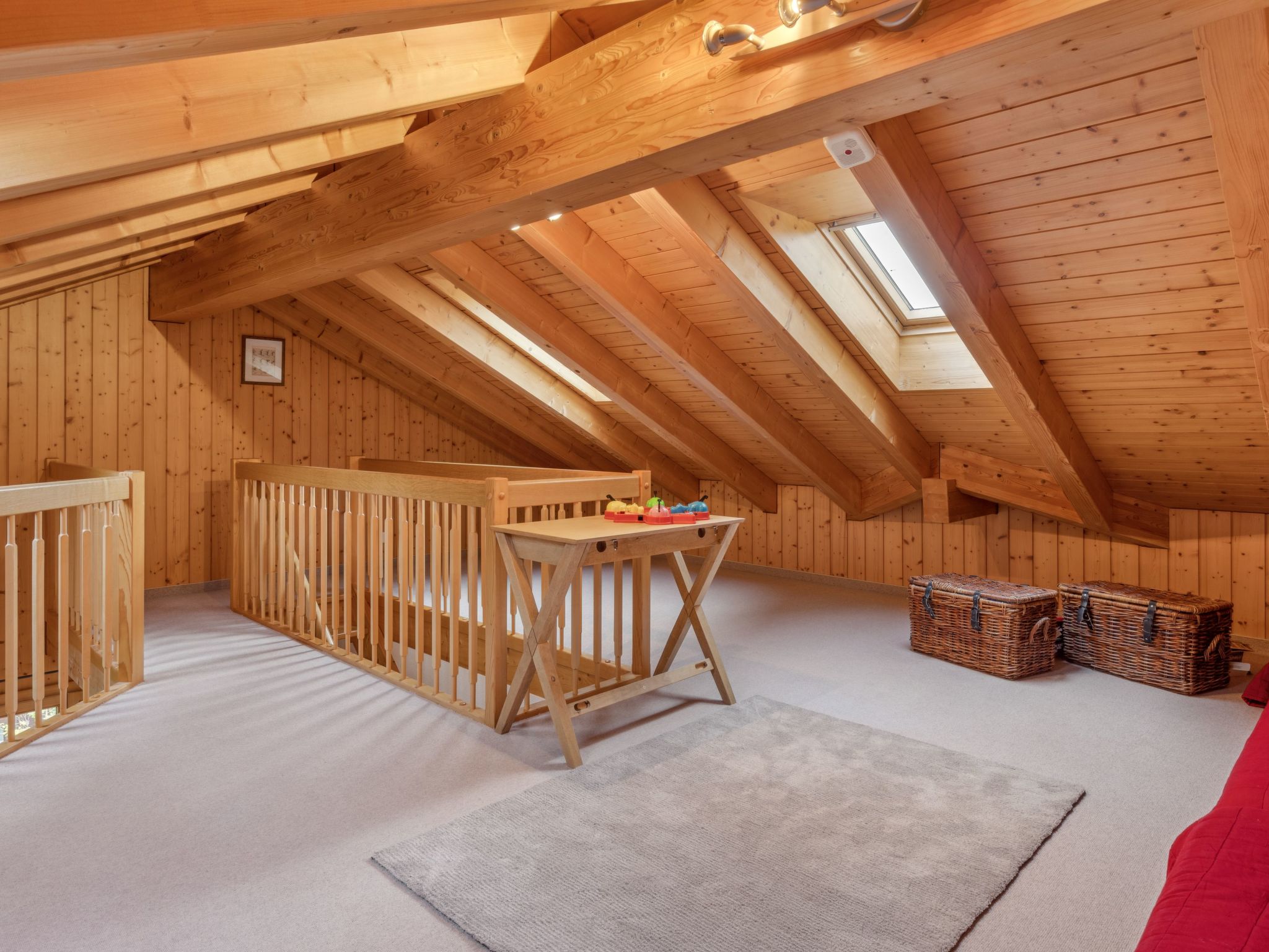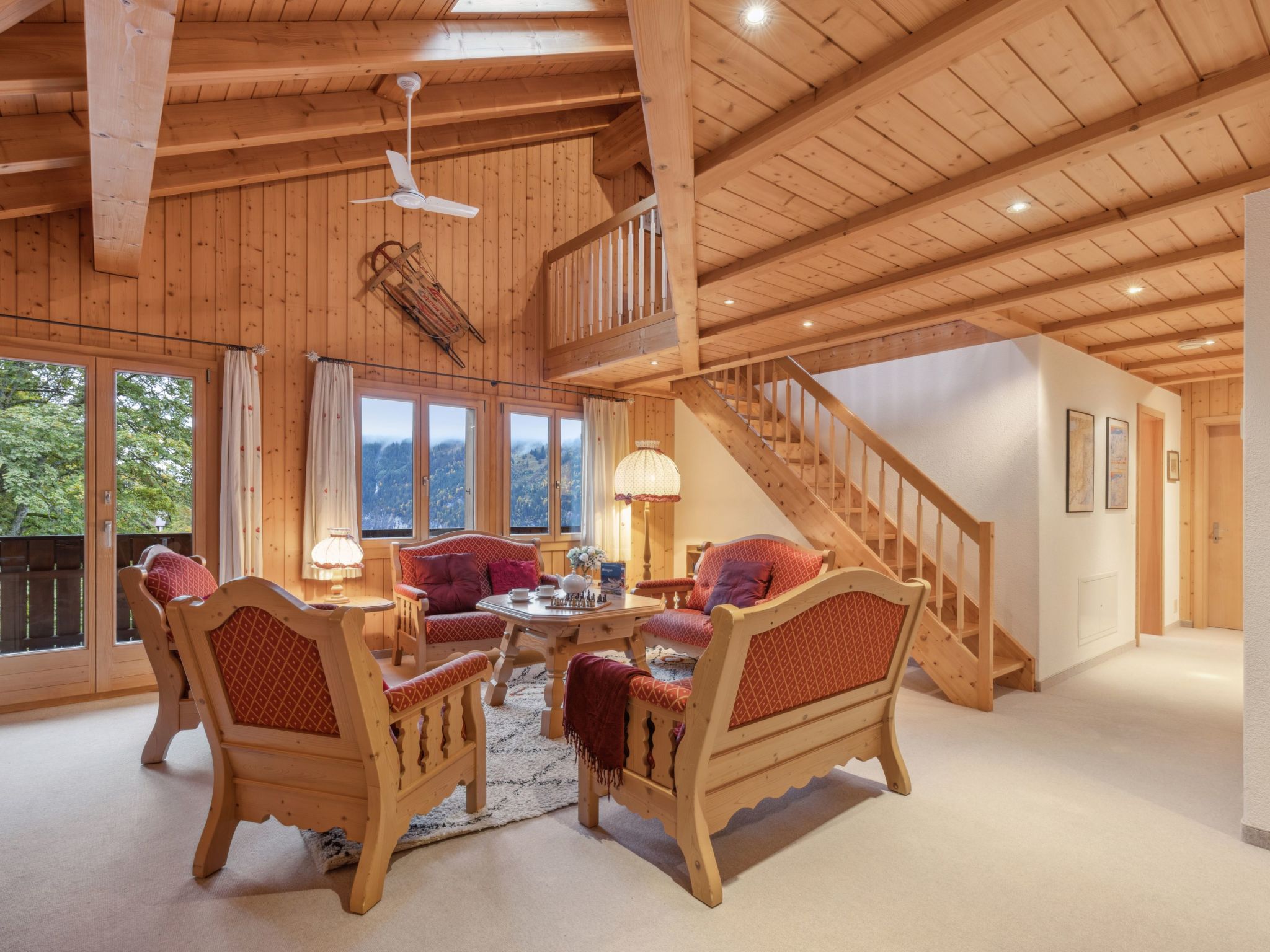 4-Zimmer-Wohnung 120 m2, im Dachgeschoss. Geräumig, rustikal und stilvoll eingerichtet: Wohn-/Esszimmer mit offenem Kamin, Kabel-TV, Radio, CD und DVD. 2 Zimmer, jedes Zimmer mit 1 Doppelbett (2 x 90 cm, Länge 200 cm). 1 Zimmer mit 2 Betten (90 cm, Länge 200 cm). Offene Küche (Backofen, Geschirrspüler, 4 Glaskeramikherd Platten, Toaster, Wasserkocher, elektrische Kaffeemaschine, Kapseln für die Kaffeemaschine (Nespresso) extra, Racletteofen, Fondue Set (Käse)). Dusche/WC, 2 Bäder/Duschen/WC. Grosser Balkon. Balkonmöbel. Sehr schöne Panoramasicht auf die Berge. Zur Verfügung: Bügeleisen, Haartrockner, Holz (extra). Internet (Wireless LAN, gratis). Bitte beachten: Nichtraucher-Unterkunft.