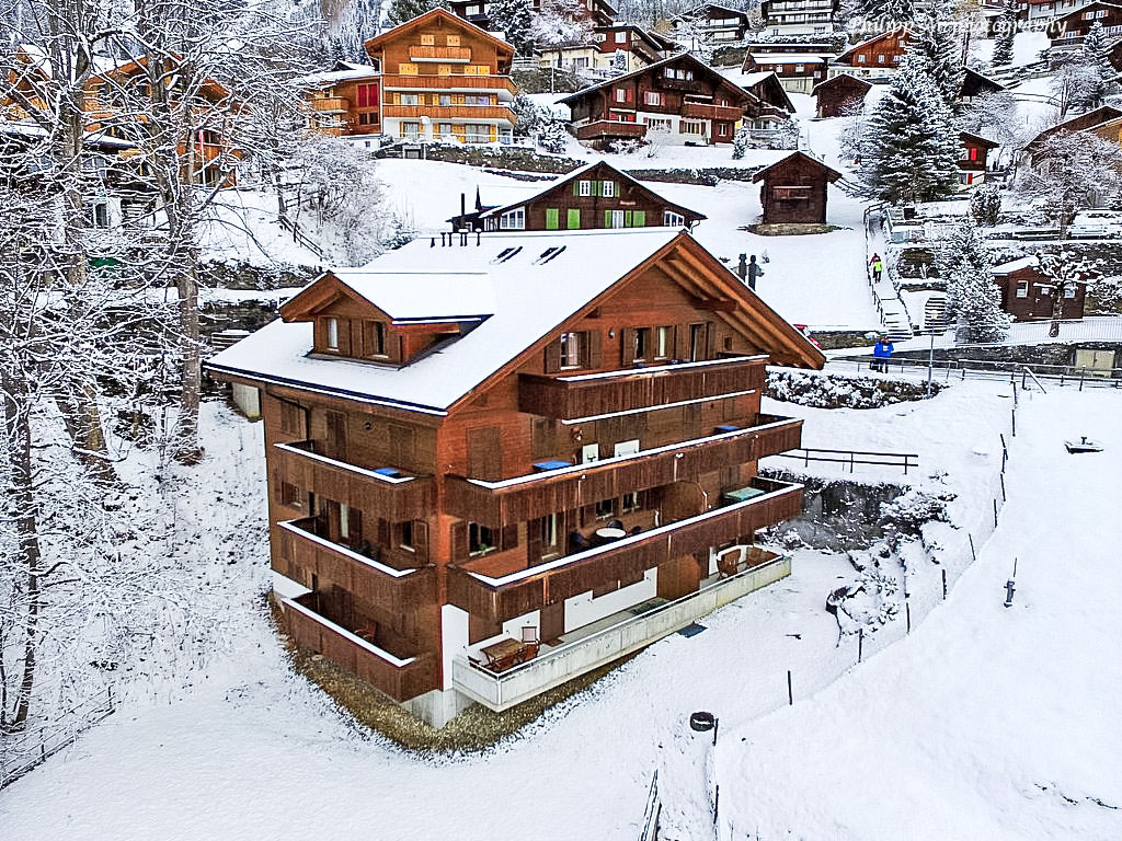 Appartementhaus "Roossihuus", Baujahr 2003. 400 m vom Zentrum von Wengen, exzellente Lage: Absolut zentral und dennoch ruhig. Im Hause: Zentralheizung. Einkaufsservice vor Anreise möglich. Einkaufsgeschäft, Supermarkt 400 m, Restaurant 100 m, Bar, Bäckerei 400 m, Zentrum zu Fuss in 5 Minuten erreichbar, Bahnstation "Wengen" 400 m, Freibad 700 m. Luftseilbahn, Skisportanlagen 400 m, Kinderspielplatz 150 m. Bitte beachten: autofreie Ferienanlage. Die Anreise erfolgt mit der Bergbahn. Anreise ist nur mit dem Zug ab Lauterbrunnen möglich – 14 Min. Fahrzeit.