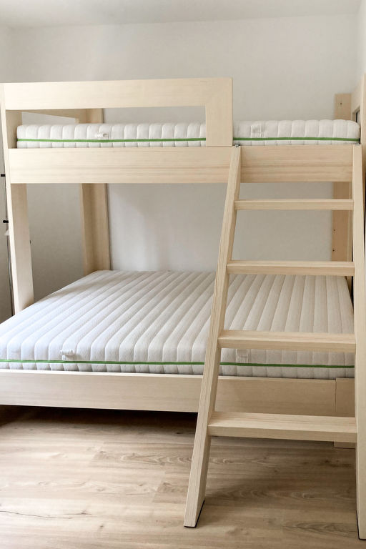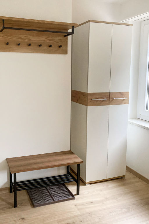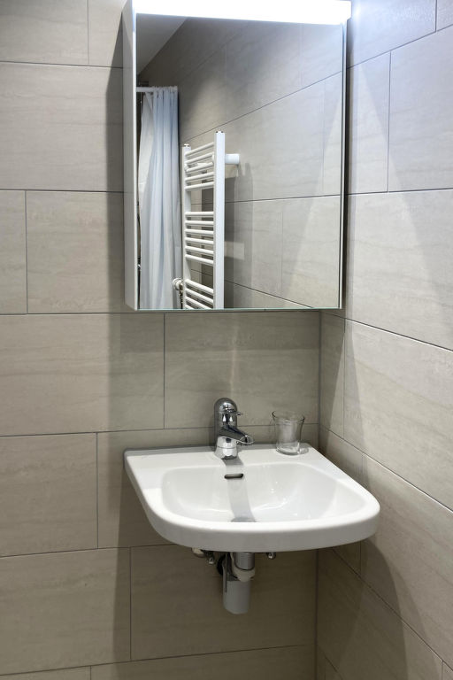 1-Zimmer-Wohnung 16 m2 im 2. Stock. Einfach eingerichtet: 1 Zimmer mit 1 x 1 Etagenbetten, TV-Anschluss und Radio. Dusche/WC. Zur Verfügung: Internet (Wireless LAN, gratis). Bitte beachten: Nichtraucher-Unterkunft. Rückwertige Lage. ohne Kochgelegenheit.