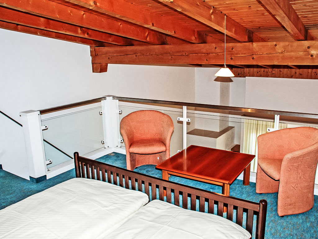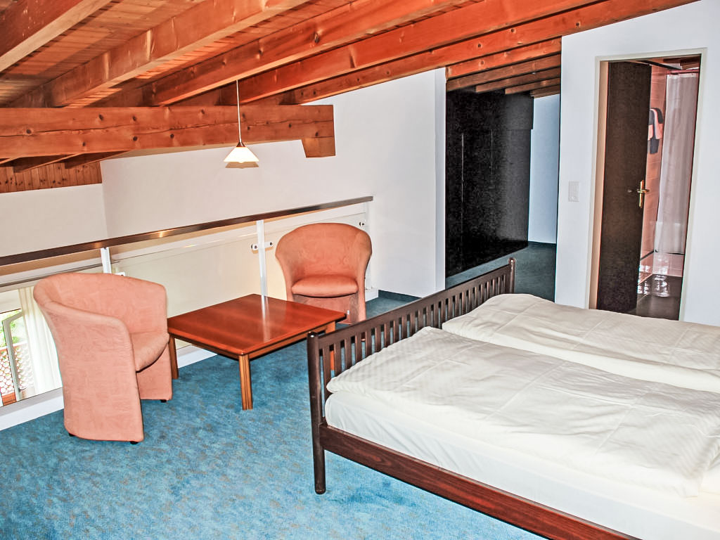 3-Zimmer-Attikawohnung 113 m2 auf 2 Stockwerken im 2. Stock. Geräumig und hell, teilweise abgeschrägt, schön und geschmackvoll eingerichtet: offenes Wohn-/Esszimmer mit 1 Doppeldiwanbett (140 cm, Länge 200 cm), Kabel-TV (Flachbildschirm), Radio. Ausgang zur Terrasse. 1 Doppelzimmer mit 2 Betten (80 cm, Länge 200 cm). Offene Küche (Backofen, Geschirrspüler, 4 Glaskeramikherd Platten, elektrische Kaffeemaschine, Kapseln für die Kaffeemaschine (Nespresso) extra). Bad/WC, Doppelwaschbecken. Obergeschoss: offene Galerie mit 1 Doppelbett (2 x 85 cm, Länge 200 cm), Bad/WC. Ausgang zum Balkon. Grosse Terrasse teilweise überdacht. Terrassenmöbel, Liegestühle (4). Herrliche Sicht auf den See, die Berge und die Landschaft. Zur Verfügung: Kinderhochstuhl, Babybett bis 2 Jahre (extra), Haartrockner. Internet (Wireless LAN, gratis). Bitte beachten: geeignet für Familien. Nichtraucher-Unterkunft. Sonnenstoren. Speziell in dieser Wohnung: gratis Benützung Tennisplatz.