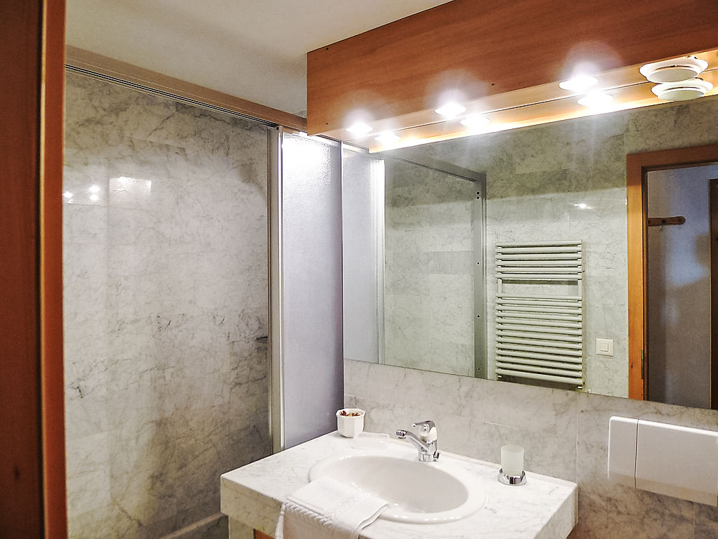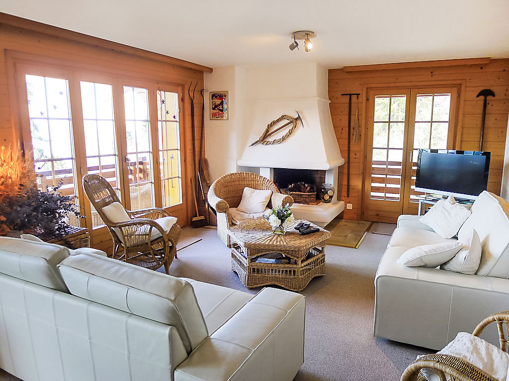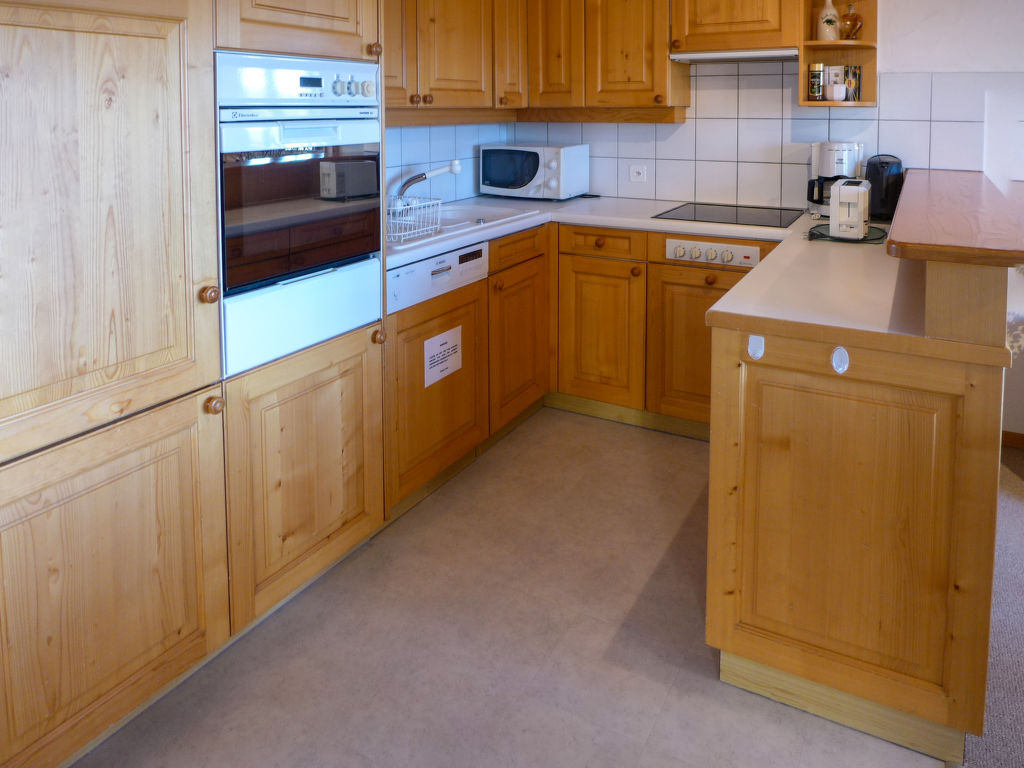 "Grand Roc 10", 4-Zimmer-Wohnung 122 m2 im 3. Stock, Südlage. Komfortabel und schön eingerichtet: Wohn-/Esszimmer mit TV (Flachbildschirm), DVD. Ausgang zum Balkon. 1 Zimmer mit Schiebetür mit 2 Betten. Ausgang zum Balkon. 1 Zimmer mit 1 franz. Bett und Bad/WC. 1 Zimmer mit 1 franz. Bett. Offene Küche (4 Kochplatten, Backofen, Geschirrspüler, Mikrowelle, Tiefkühler). Dusche/WC. Grosser Balkon, Südlage und Westlage. Terrassenmöbel. Sehr schöne Panoramasicht auf die Berge und das Tal. Zur Verfügung: Internet (Wireless LAN, gratis). IPod docking station. Garage Nr. B4, Höhe 200 cm, Breite 300 cm. Bitte beachten: Nichtraucher-Unterkunft. Der Kamin dient als Dekoration und darf nicht benutzt werden.