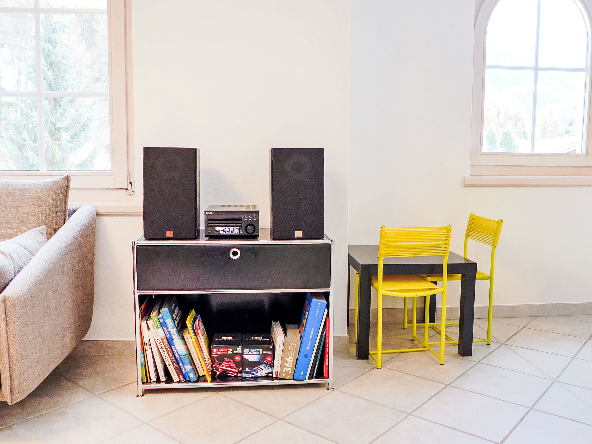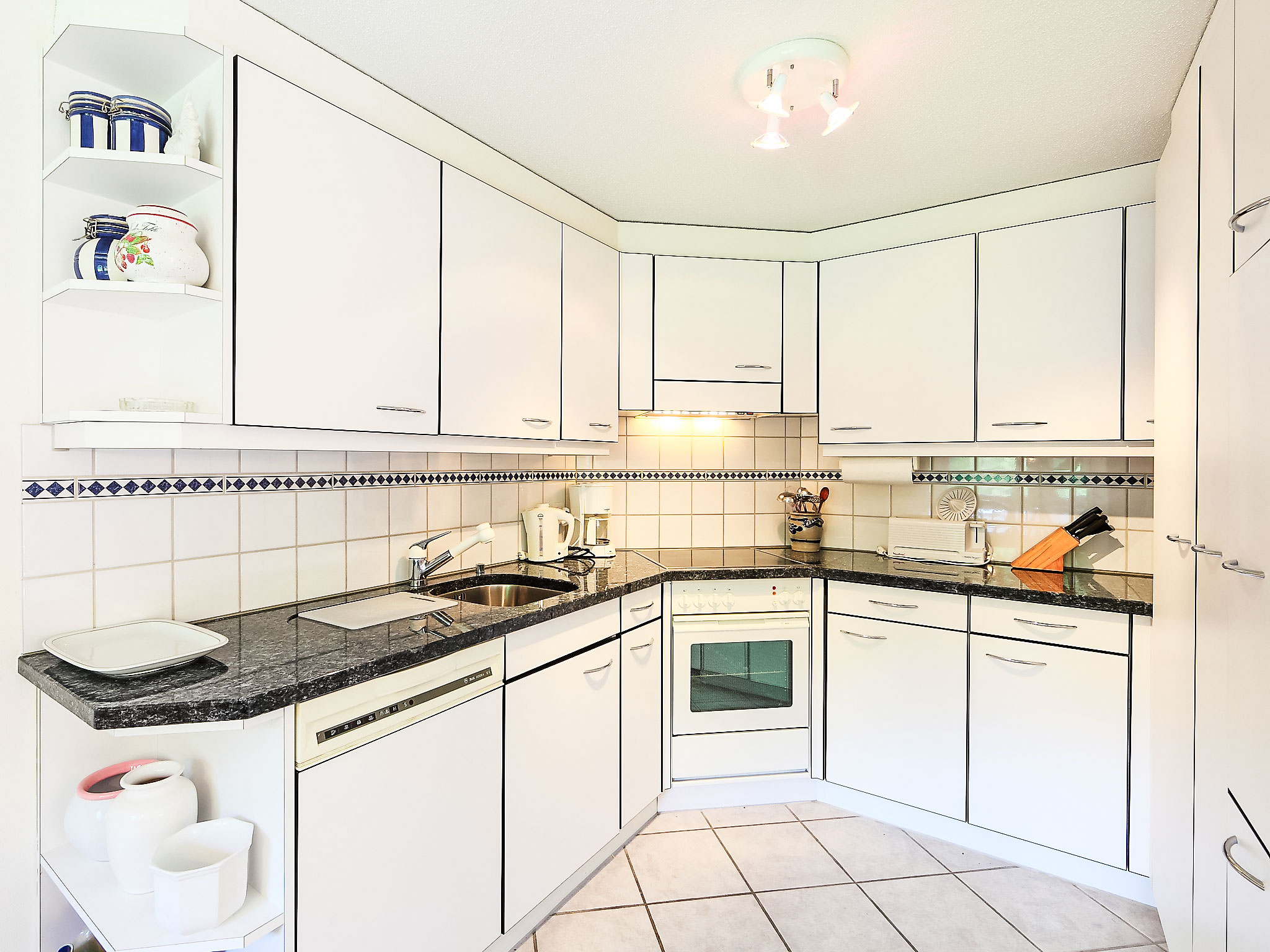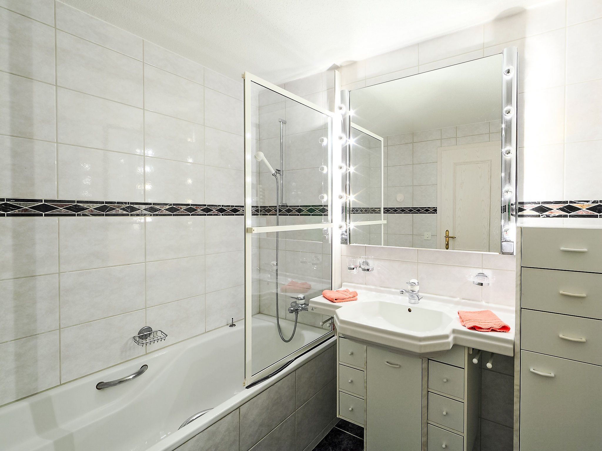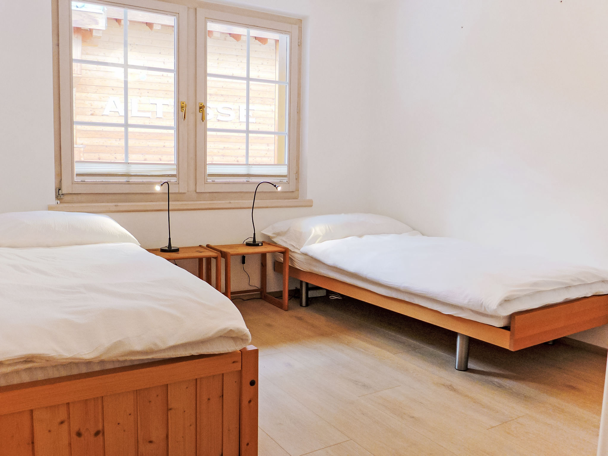 3-Zimmer-Wohnung 88 m2 im 3. Stock, Südlage. Sehr komfortabel und stilvoll eingerichtet: Wohn-/Esszimmer mit Esstisch und Kabel-TV. Ausgang zum Balkon. 1 Doppelzimmer mit 1 Doppelbett und Bad/WC. 1 Doppelzimmer mit 2 Betten. Offene Küche (4 Kochplatten, Backofen, Geschirrspüler, Toaster, Wasserkocher, Mikrowelle, Tiefkühler, elektrische Kaffeemaschine, Racletteofen, Fondue Set (Käse)). Dusche/WC. Balkon, Südlage. Balkonmöbel. Sehr schöne Panoramasicht auf die Berge. Zur Verfügung: Haartrockner. Internet (Wireless LAN, gratis). Bitte beachten: Nichtraucher-Unterkunft.