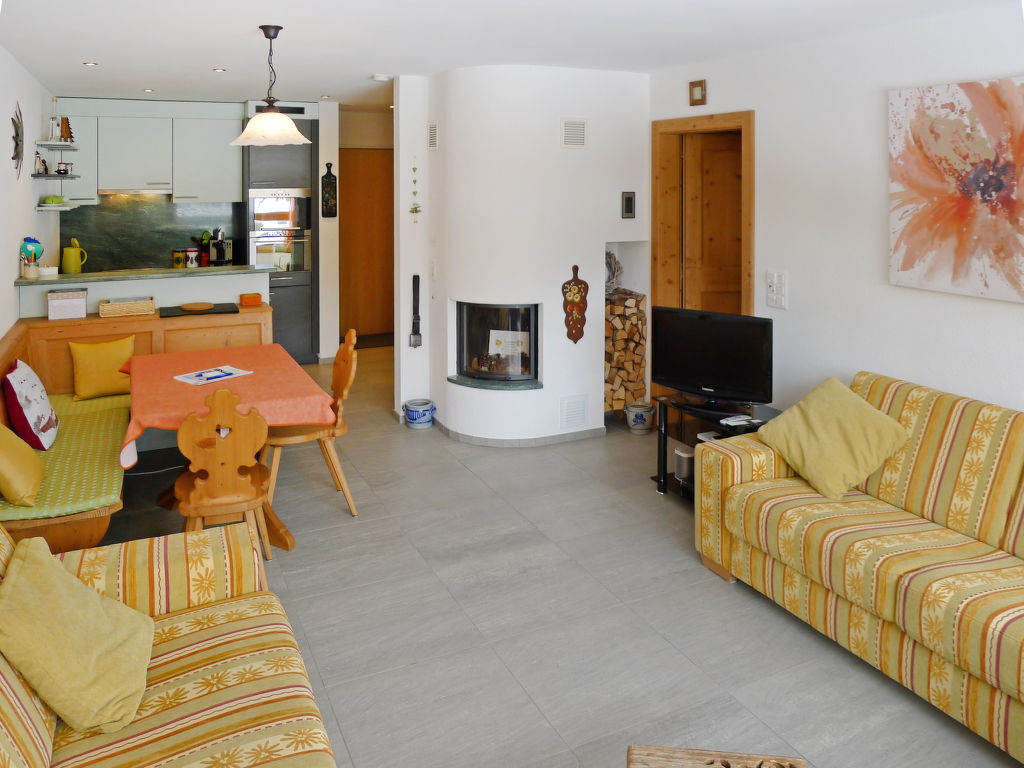 2-Zimmer-Wohnung 61 m2 im 2. Stock. Komfortabel und gemütlich eingerichtet: Wohn-/Esszimmer mit 1 Doppeldiwanbett und Sat-TV (Flachbildschirm), DVD. Ausgang zum Balkon. 1 Doppelzimmer mit Dusche/WC. Ausgang zum Balkon. Offene Küche (Backofen, Geschirrspüler, 4 Glaskeramikherd Platten, Mikrowelle, elektrische Kaffeemaschine, Racletteofen, Fondue Set (Käse)). Sep. WC. Bodenheizung. Balkon. Terrassenmöbel. Schöne Sicht auf die Berge und die Landschaft. Zur Verfügung: Internet (Wireless LAN, gratis). Garage beim Haus. Bitte beachten: Nichtraucher-Unterkunft. Sonos Music System, keine Haustiere erlaubt.